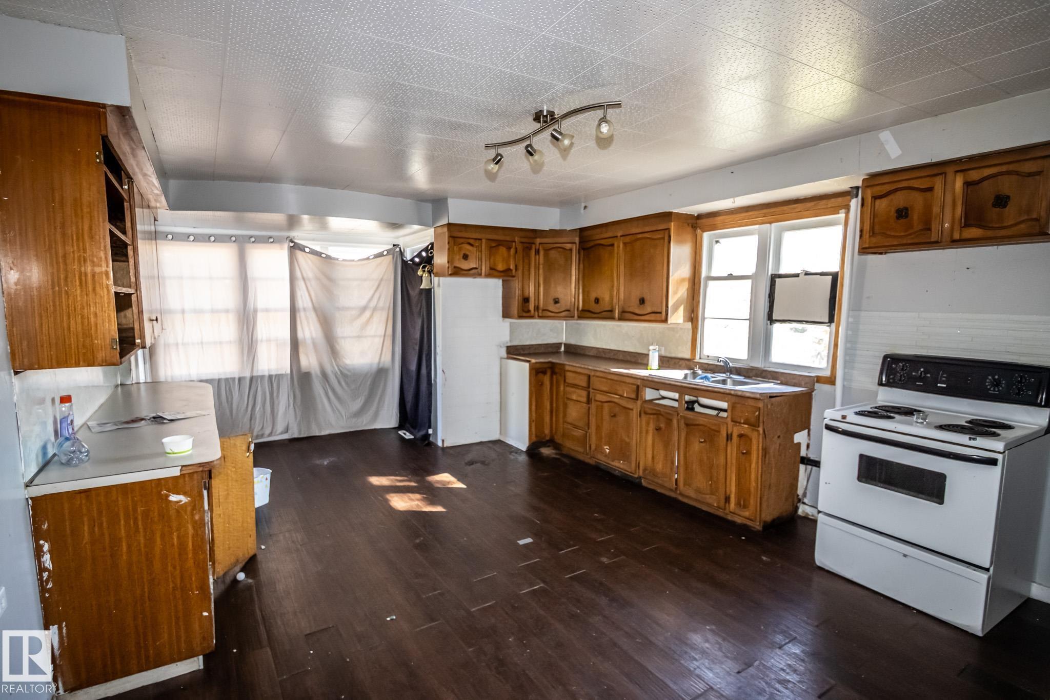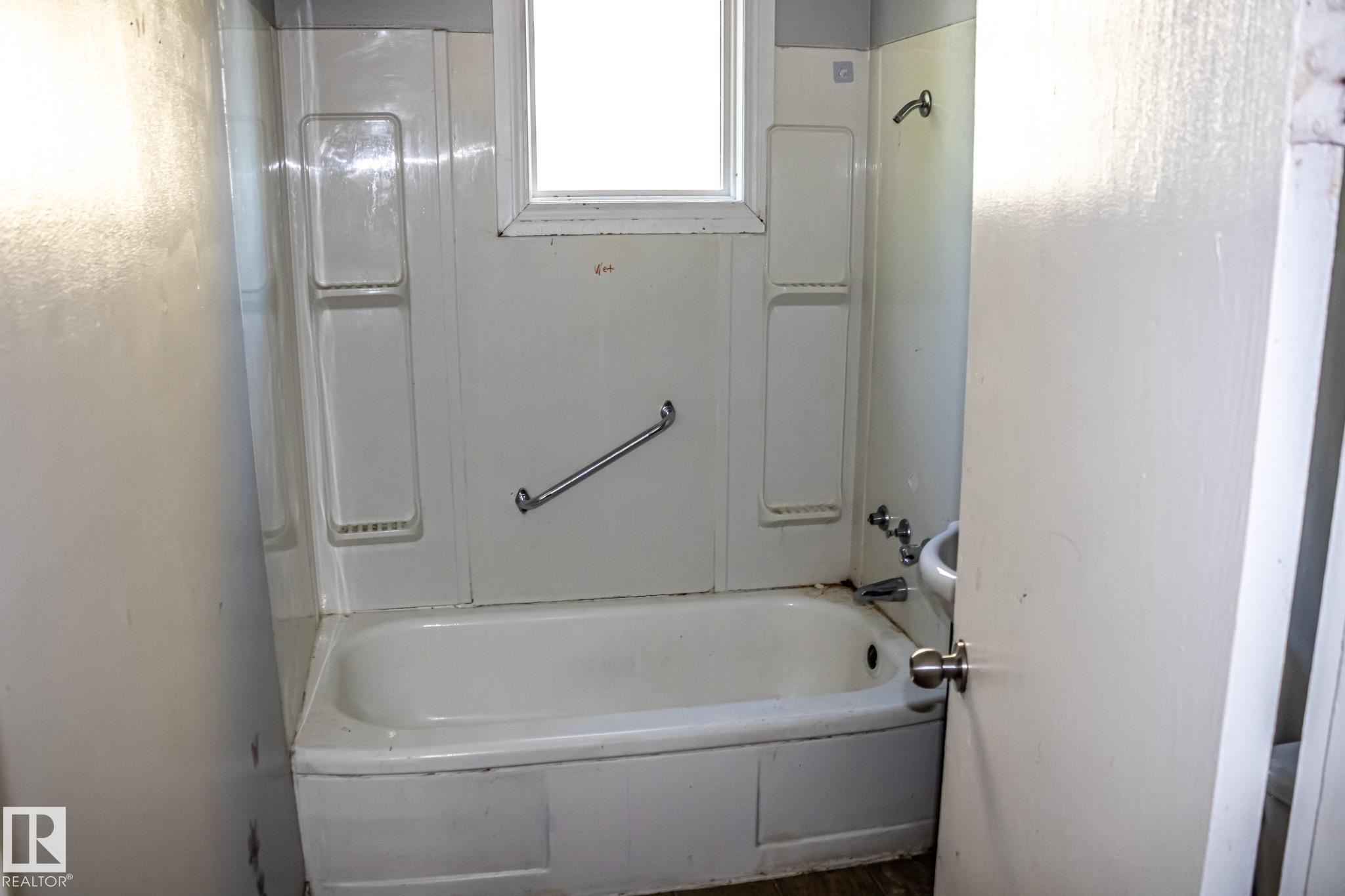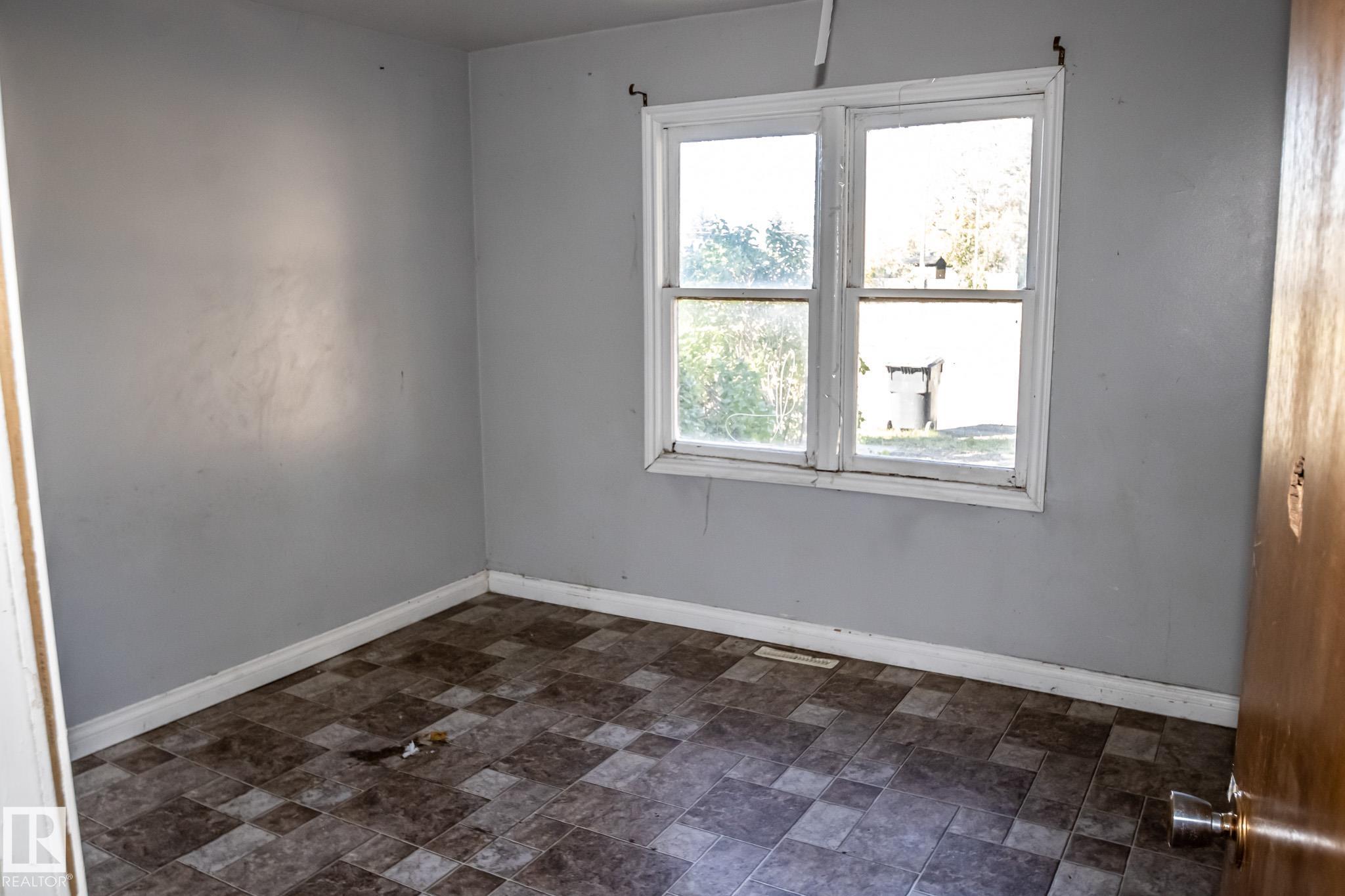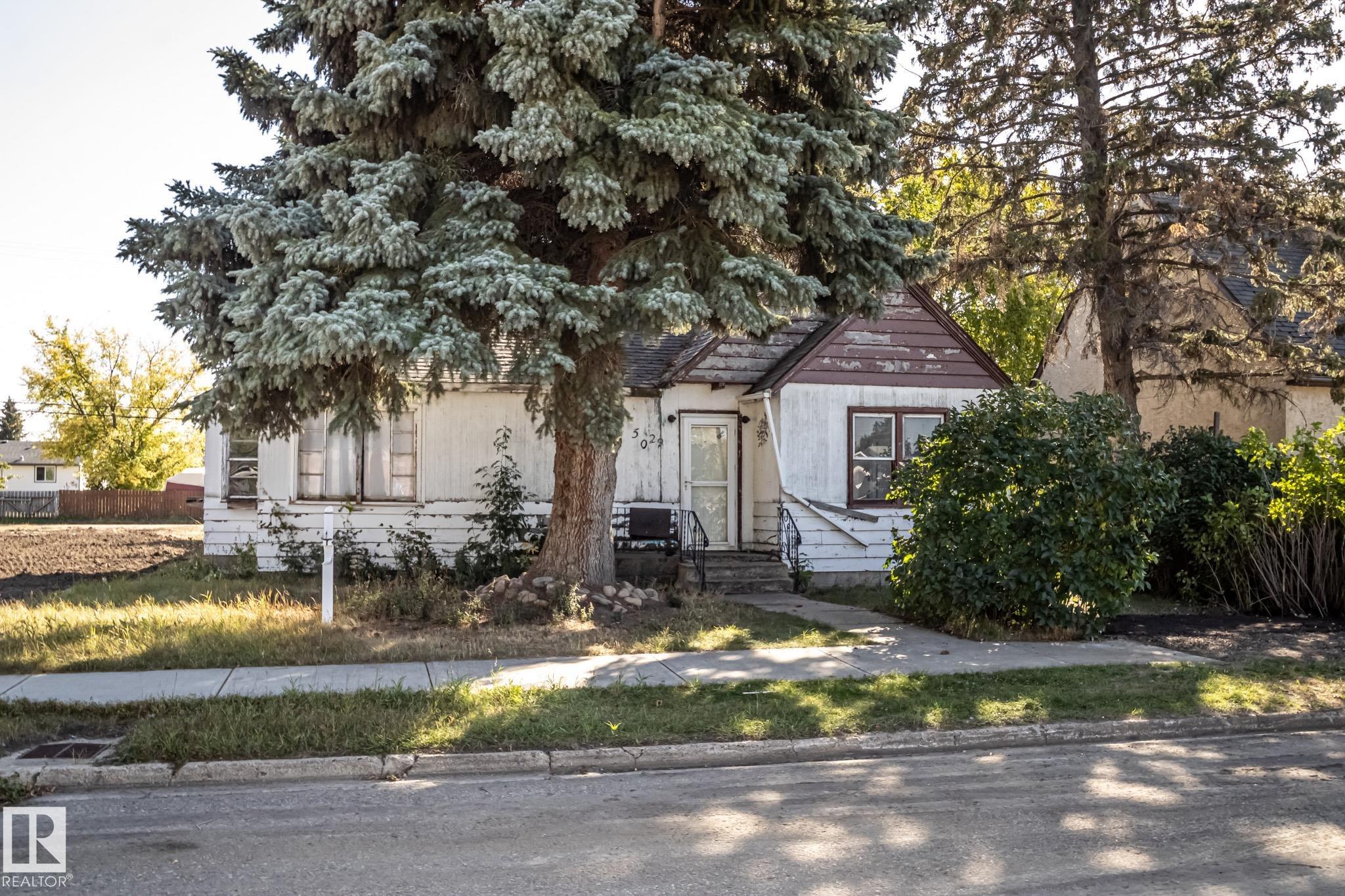 One-and-a-half-story home located in a central area of St. Paul. The main floor includes a living area, kitchen, bathroom, and two bedrooms, with two additional bedrooms located on the upper level. A single detached garage is situated at the back of the property, along with space for additional parking.