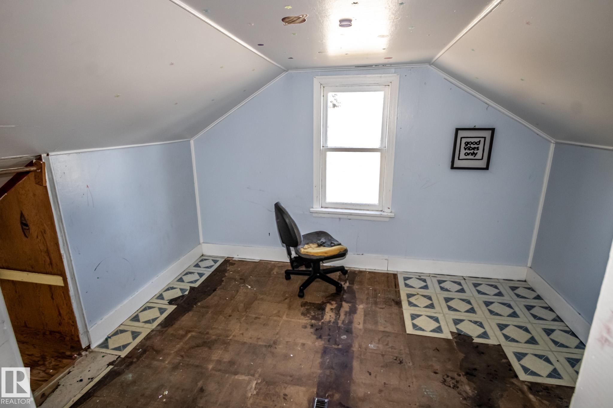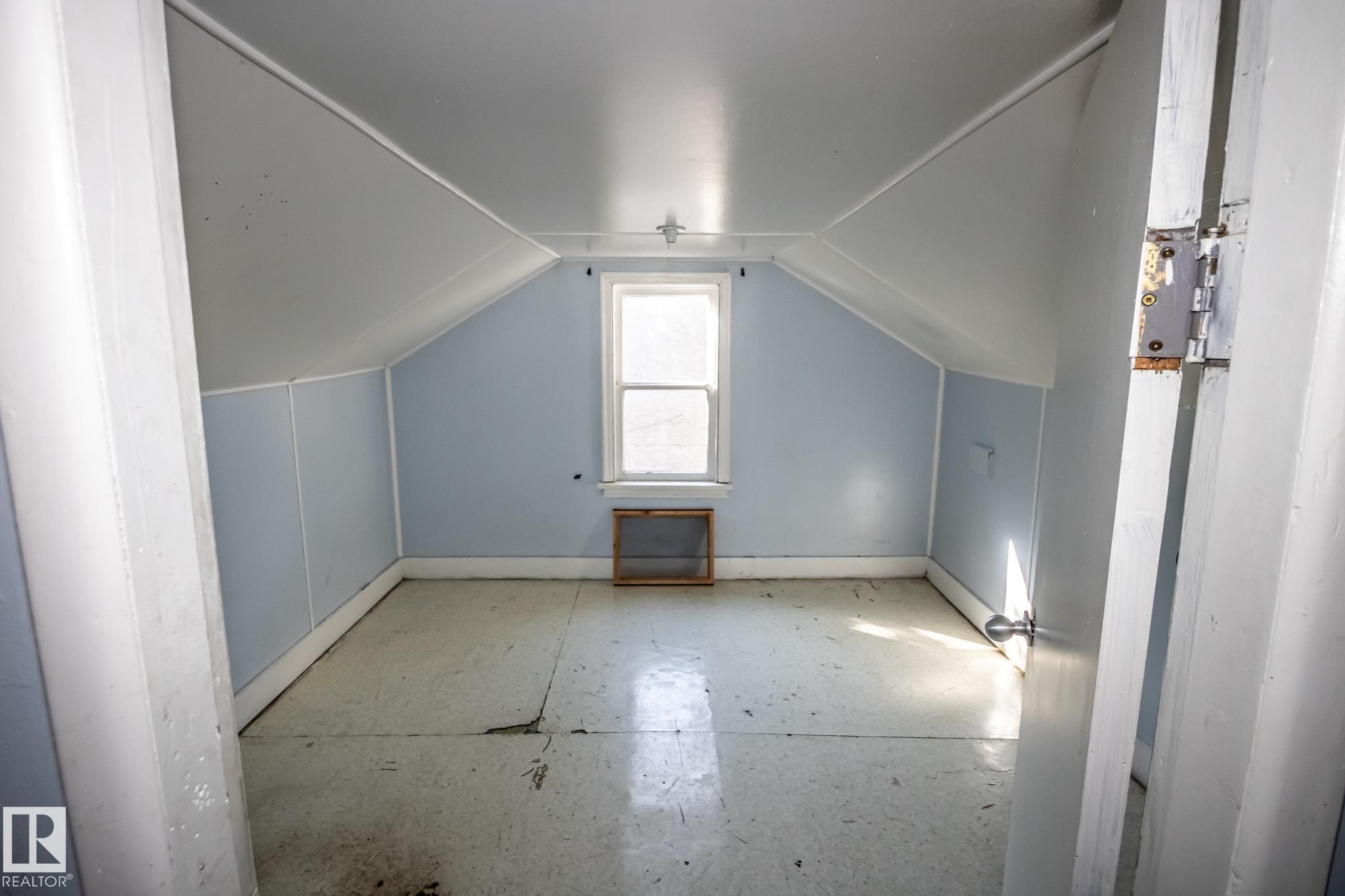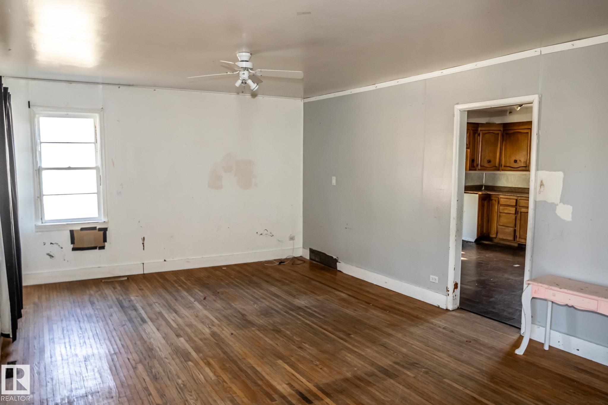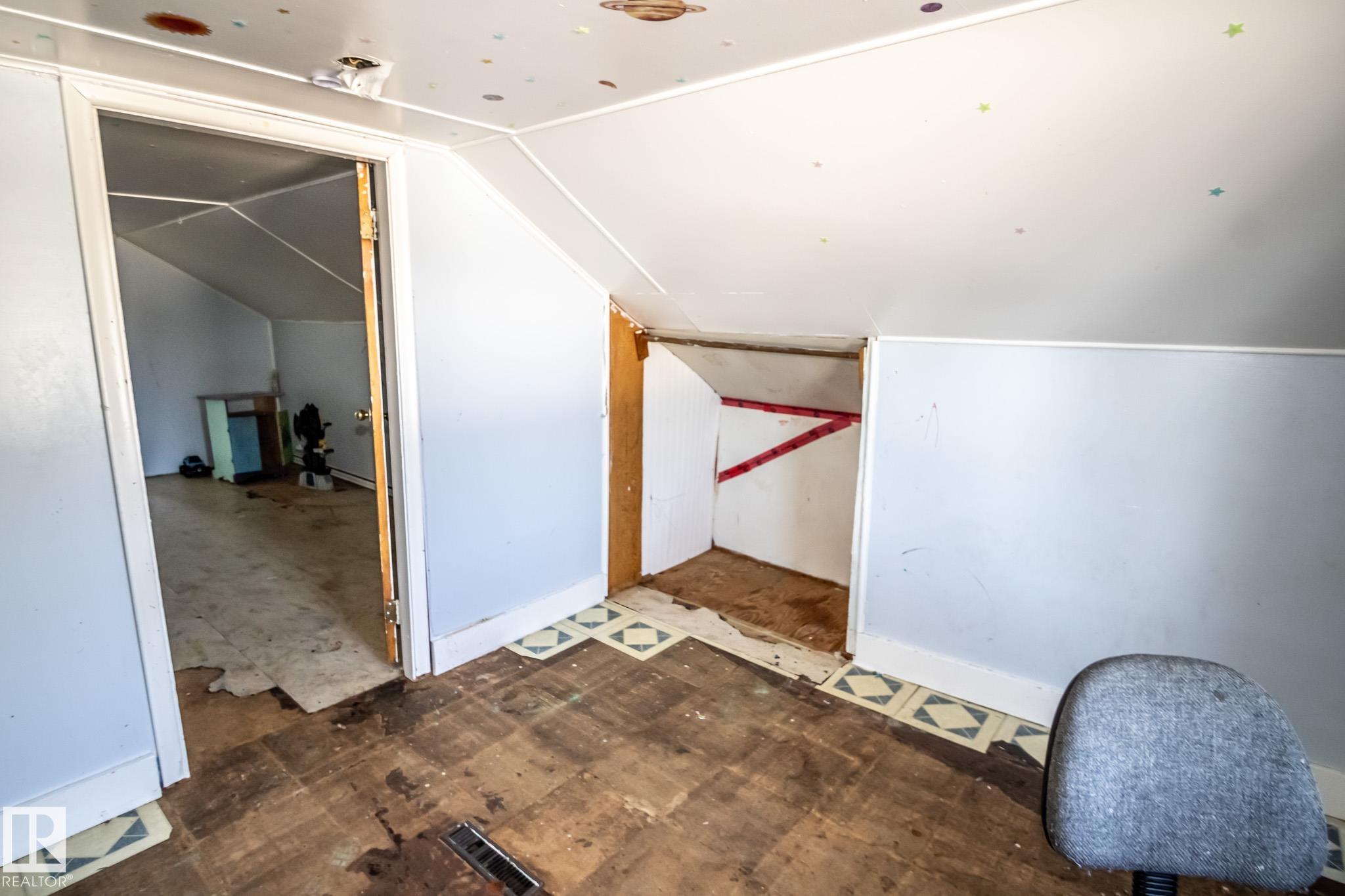 One-and-a-half-story home located in a central area of St. Paul. The main floor includes a living area, kitchen, bathroom, and two bedrooms, with two additional bedrooms located on the upper level. A single detached garage is situated at the back of the property, along with space for additional parking.