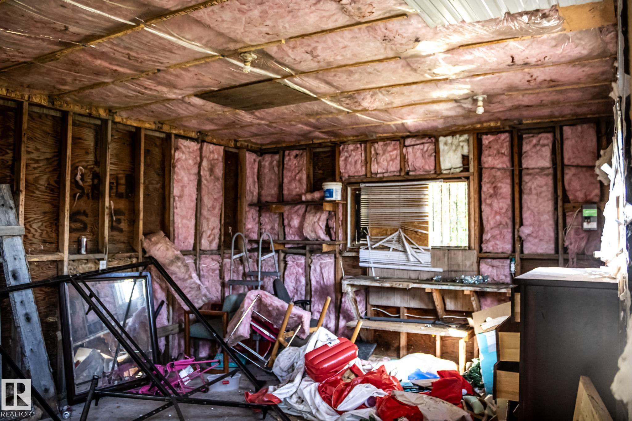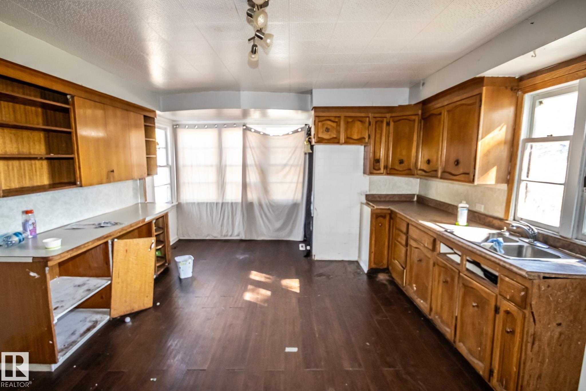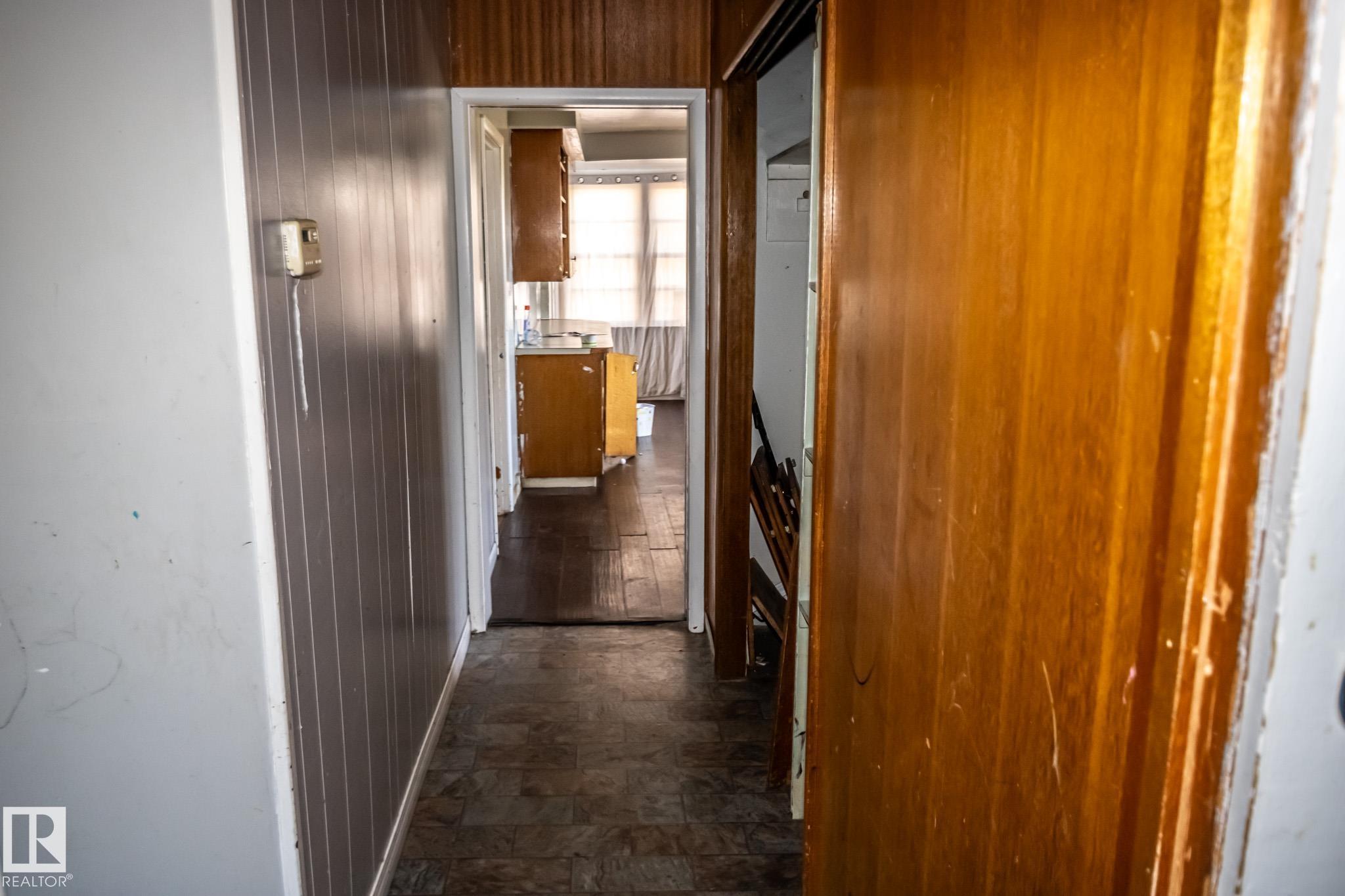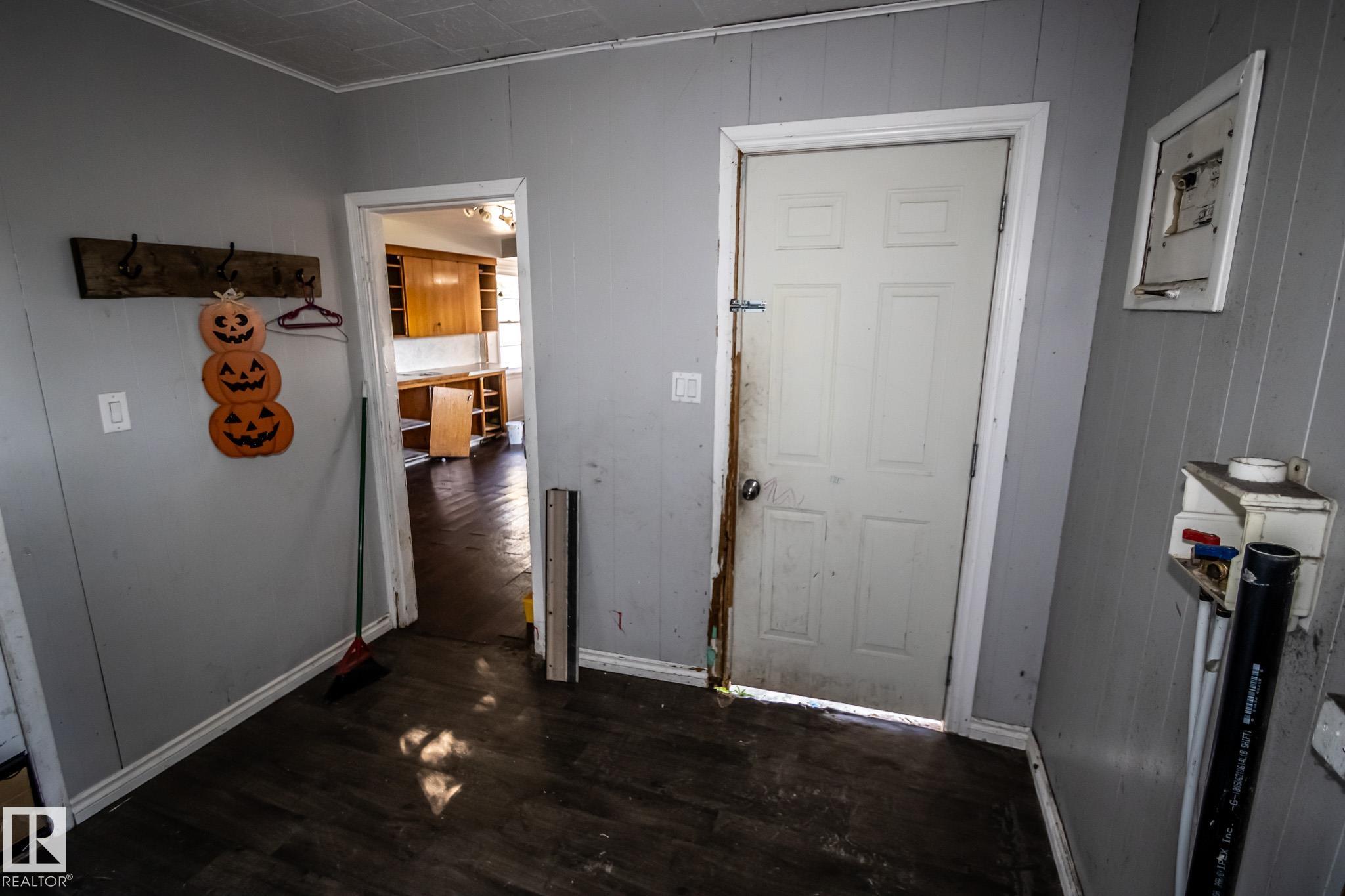 One-and-a-half-story home located in a central area of St. Paul. The main floor includes a living area, kitchen, bathroom, and two bedrooms, with two additional bedrooms located on the upper level. A single detached garage is situated at the back of the property, along with space for additional parking.