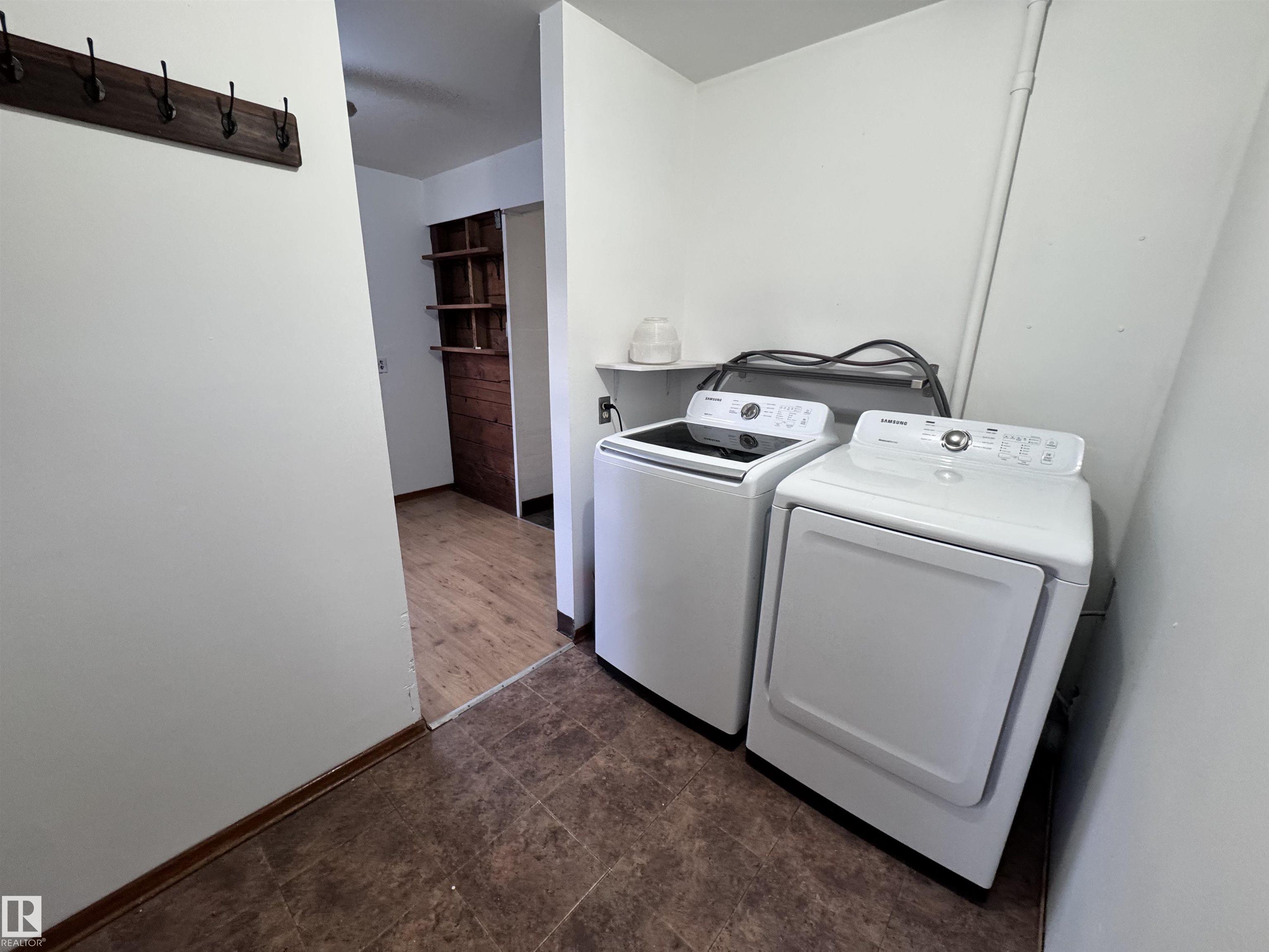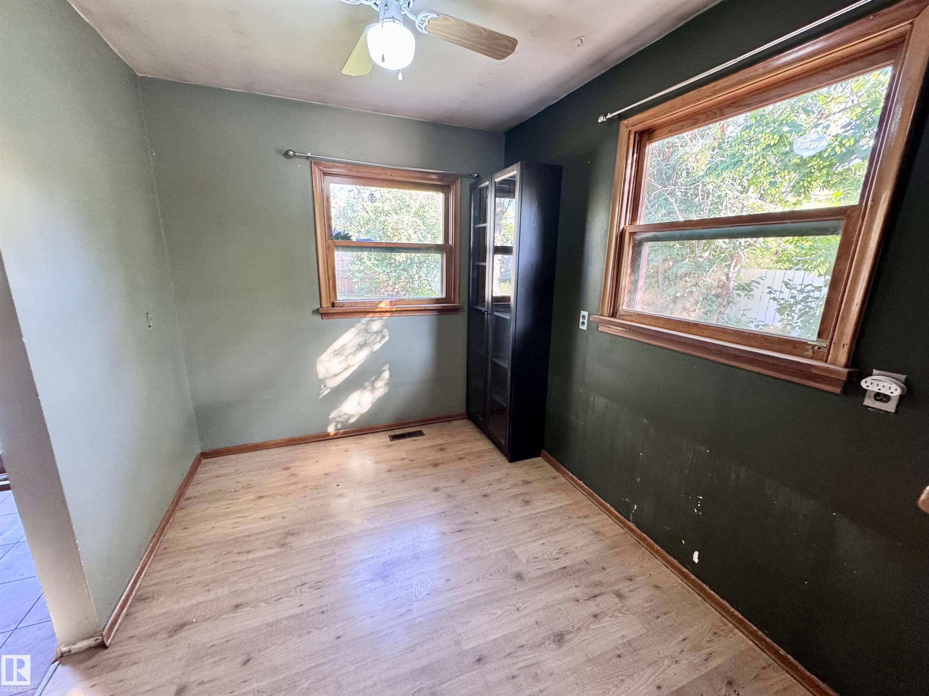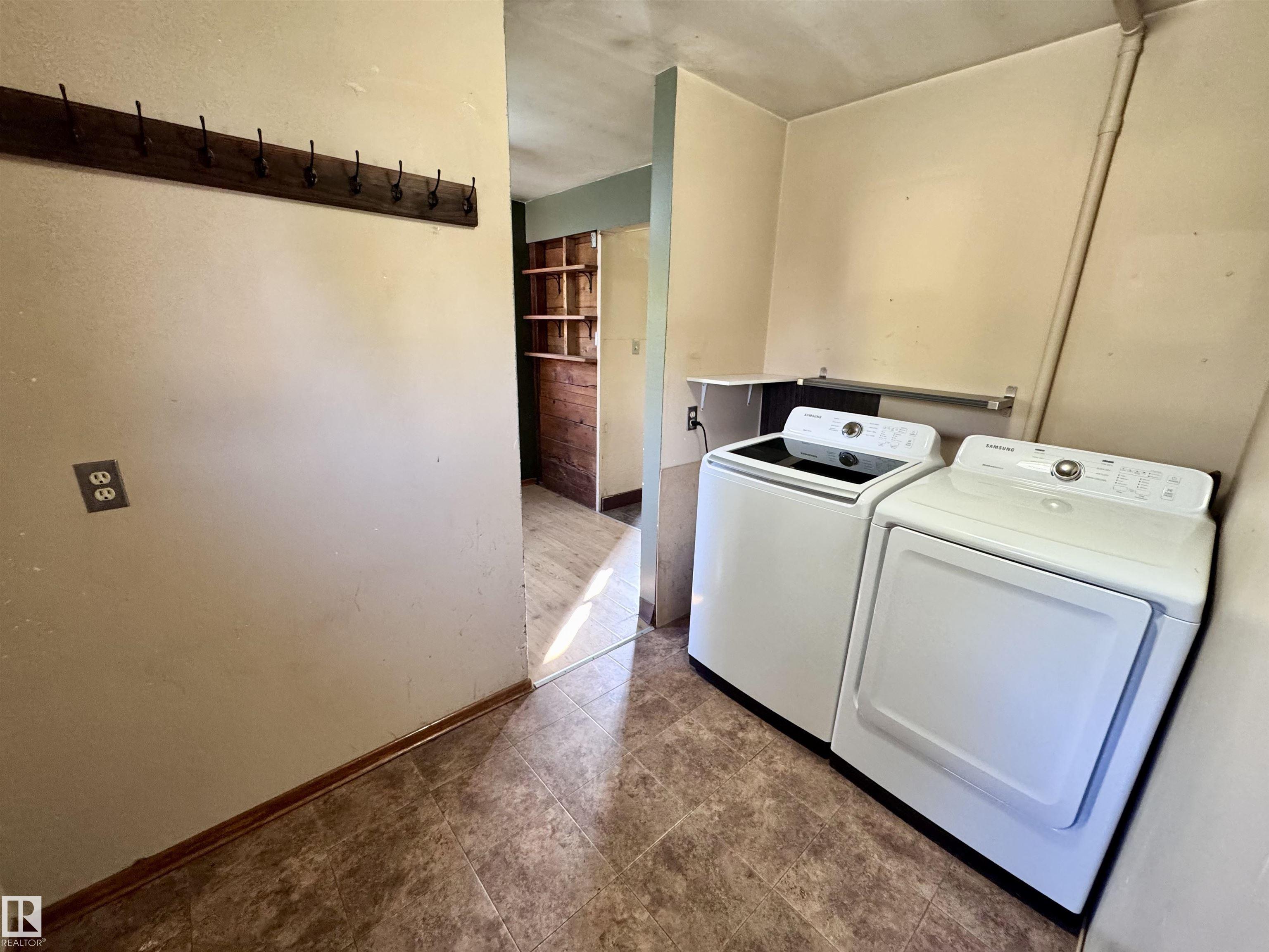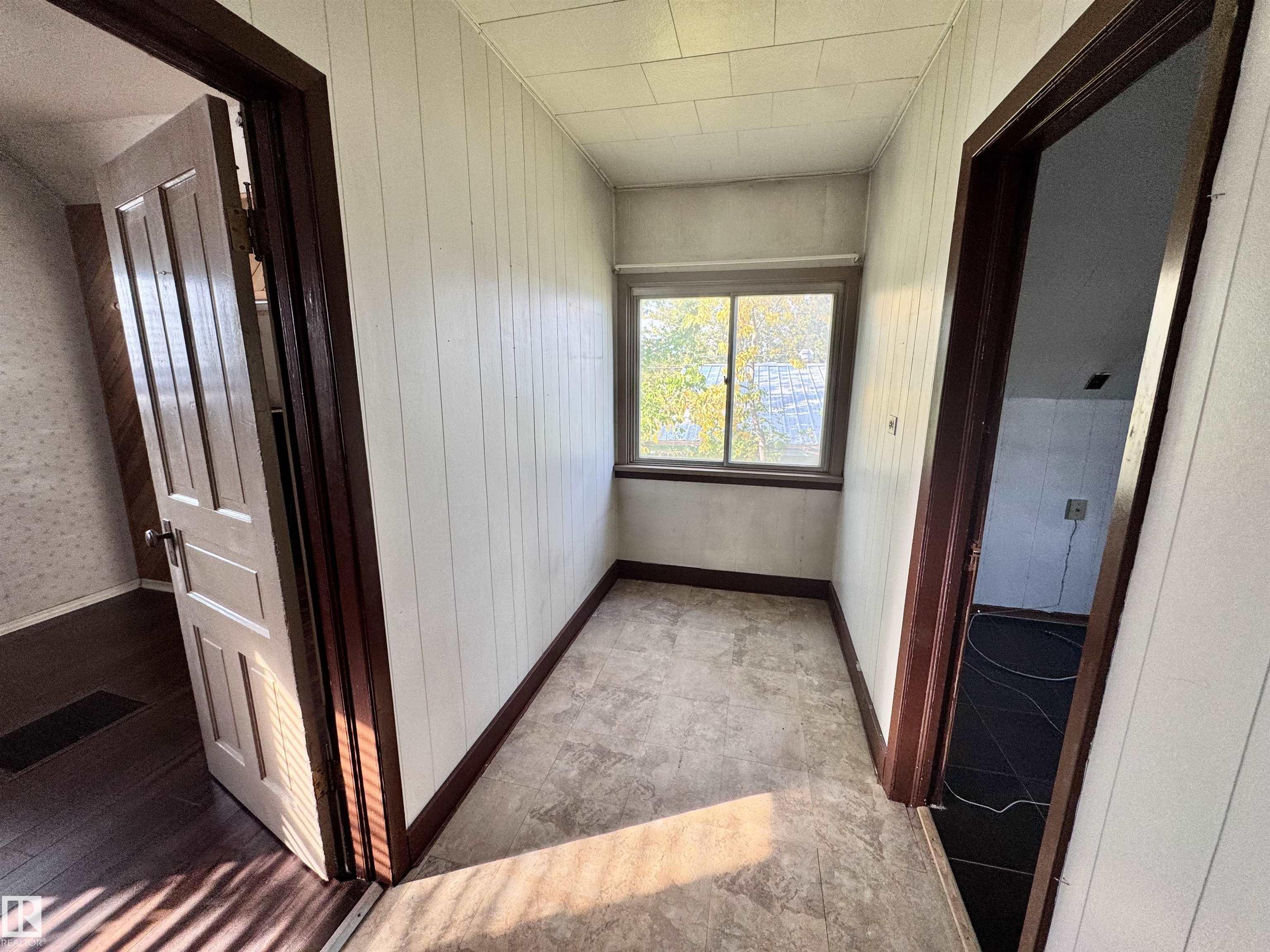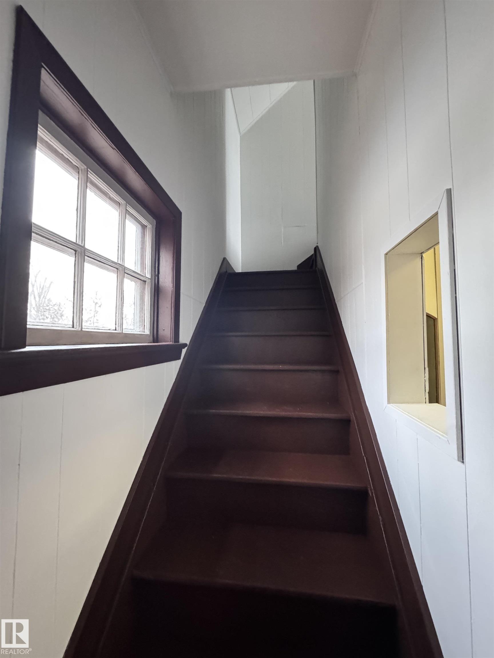 Charming character home nestled on the south side of Vegreville! This inviting property exudes warmth both inside and out. The main floor features a spacious kitchen, a cozy living area, a bright breakfast nook or sun room, main-floor laundry, and a convenient 3-pc bath. Upstairs, you?ll find two generously sized bedrooms, a versatile office/flex space, and a large 3-pc bath to complete the layout. Step outside to a beautifully landscaped backyard showcasing a private deck, mature trees, lush greenery, and a fire pit?perfect for outdoor gatherings. There?s also a handy shed for all your lawn care tools, a separate fenced area ideal for a garden or dog run, and a single-car garage, a cement pad for RV storage or off street parking for added convenience. Recent updates/upgrades include: appliances, furnace, hot water tank, soffits, fascia, fencing, and shingles on the house and a new roof on the garage.