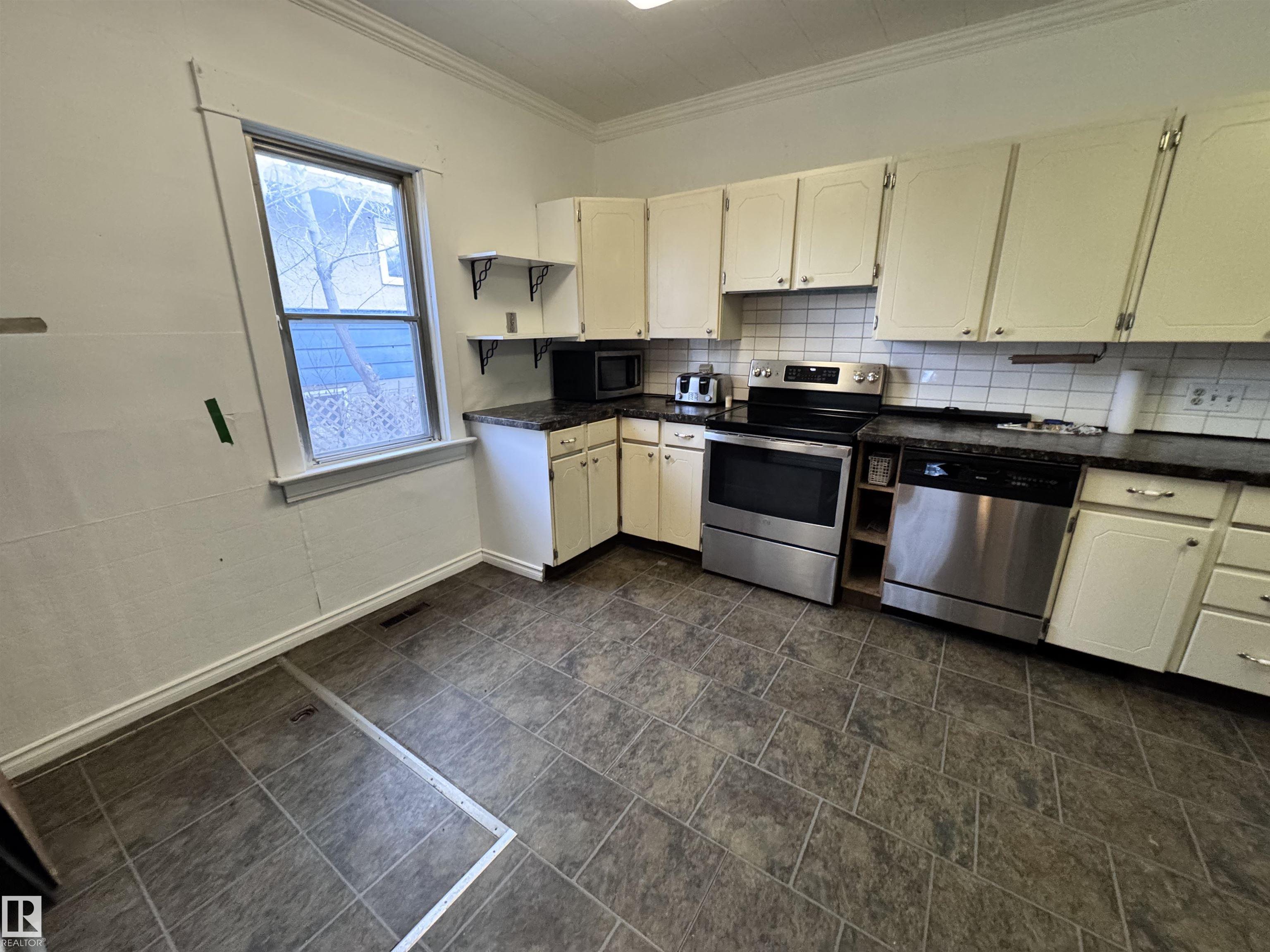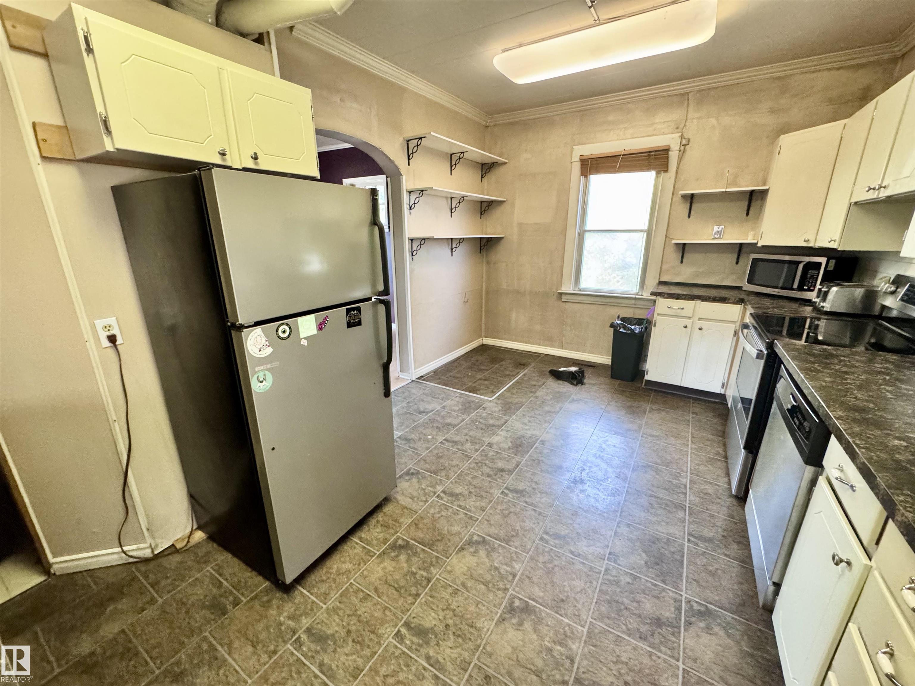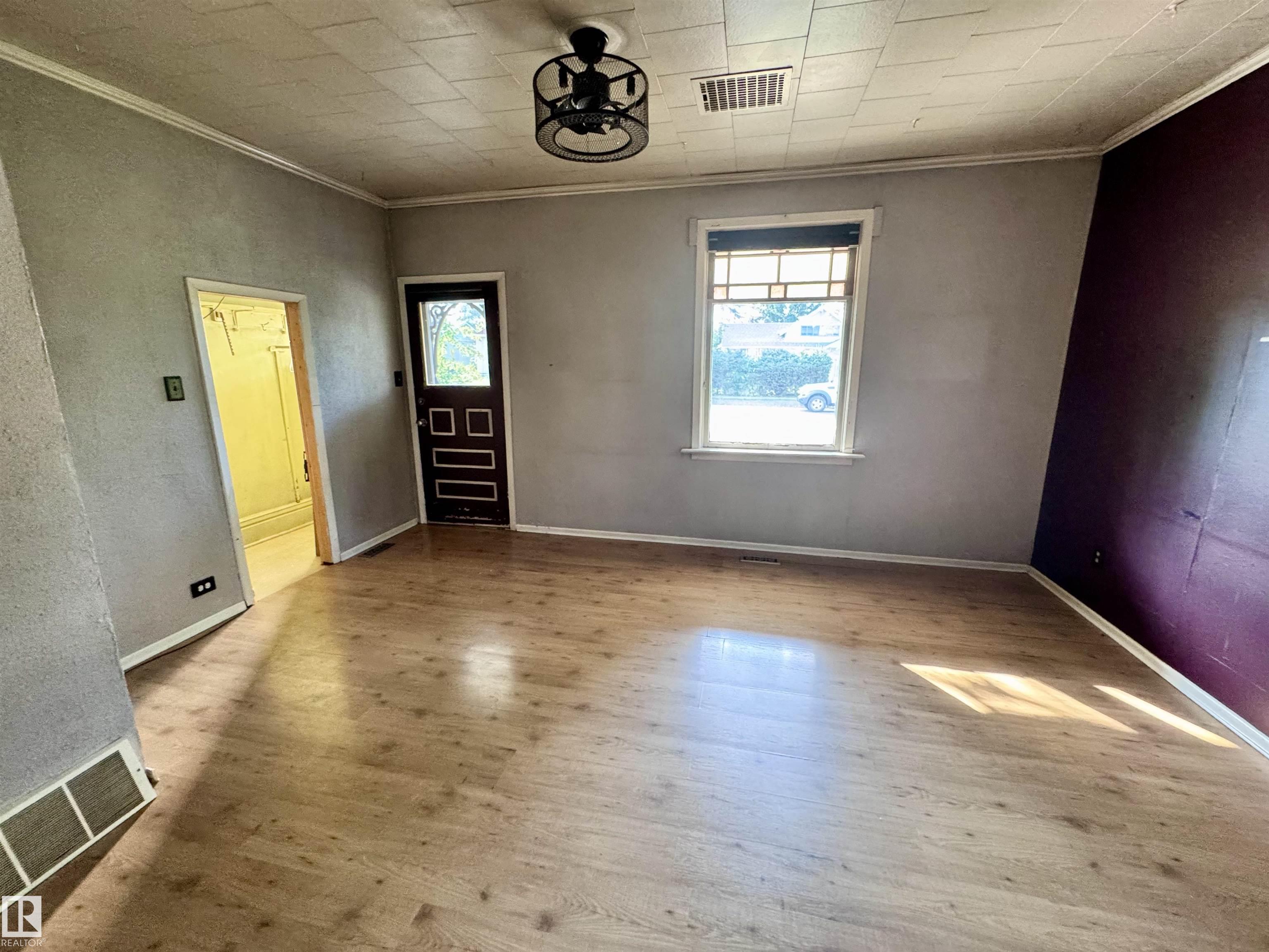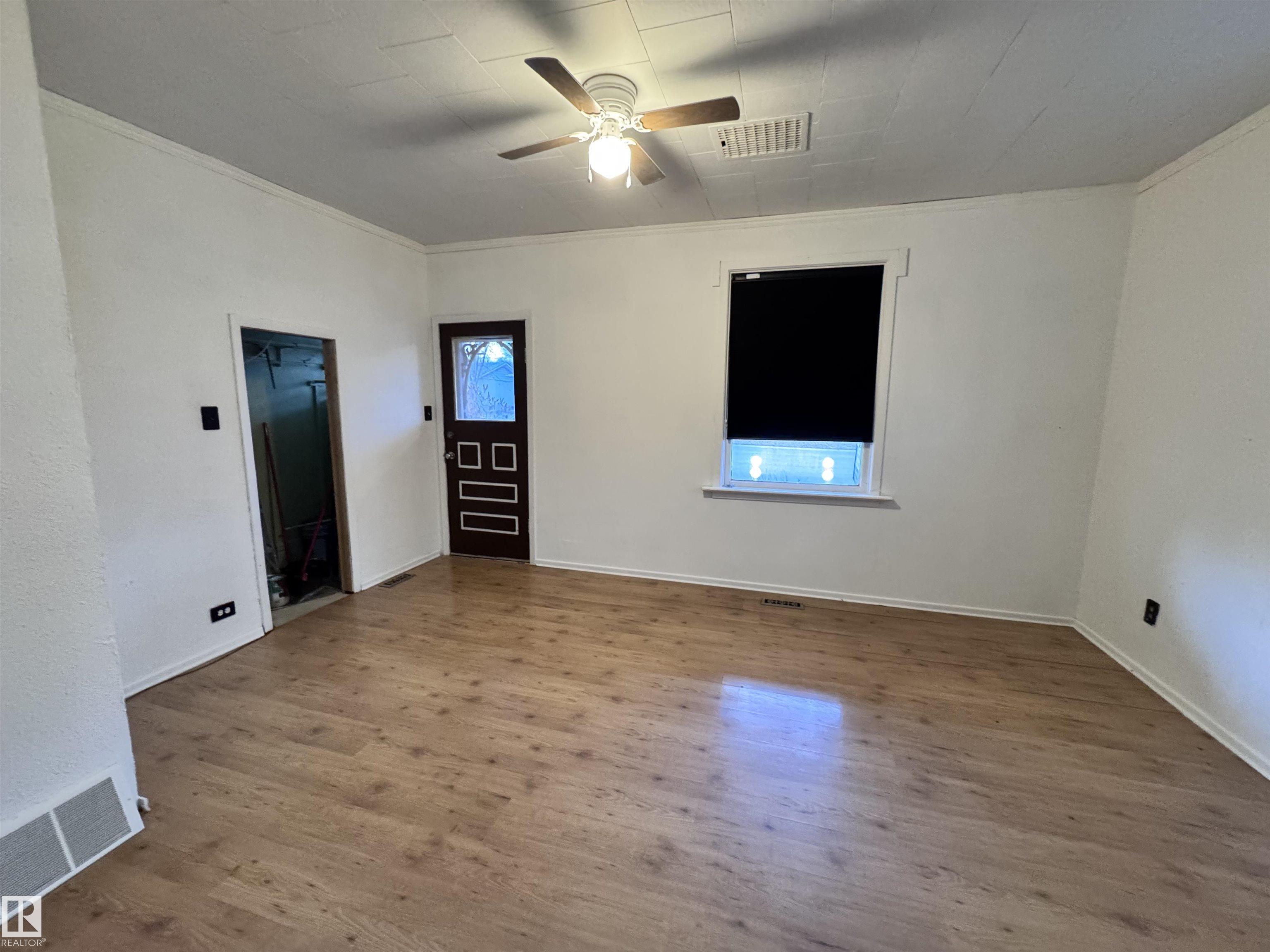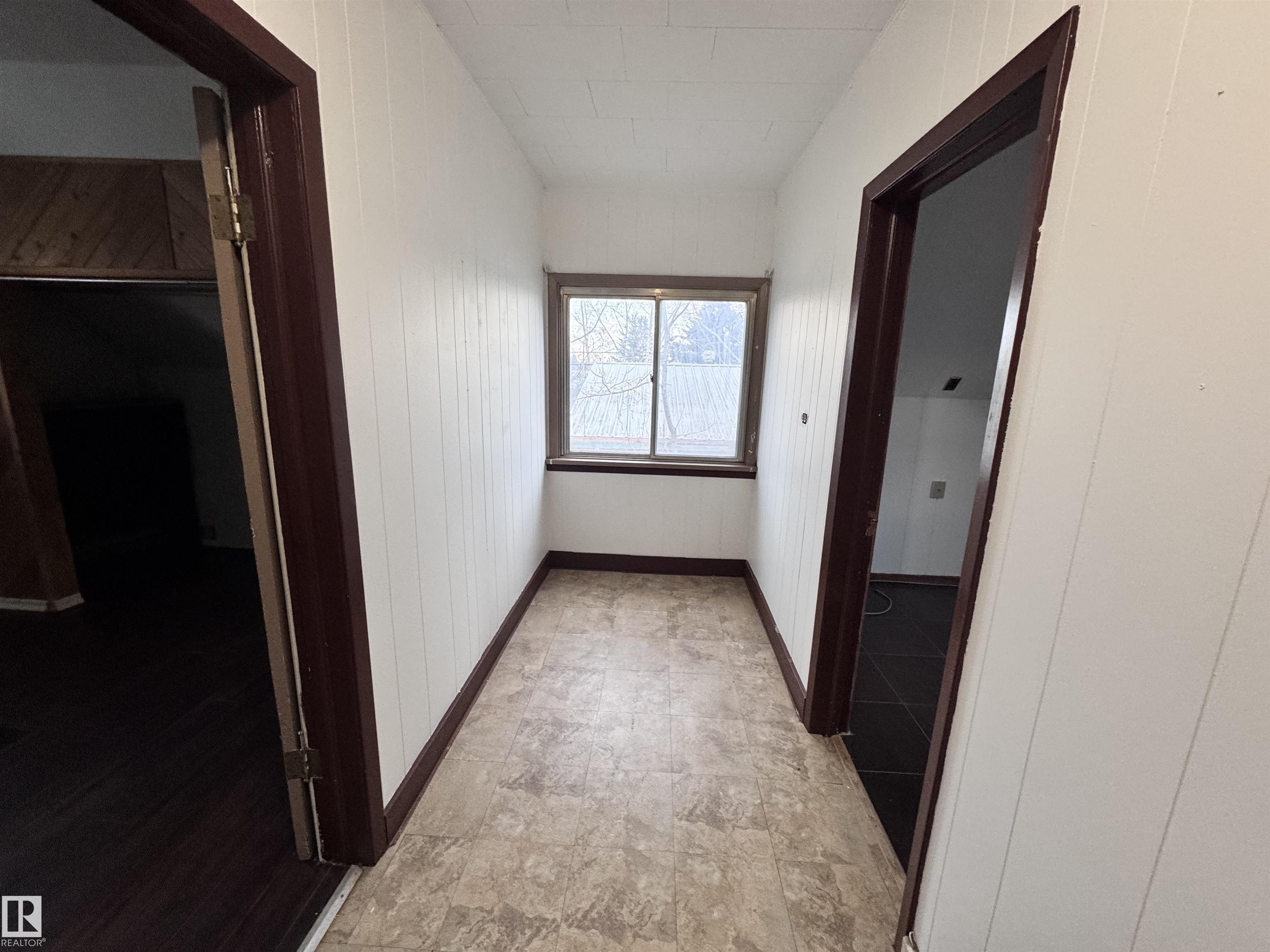 Charming character home nestled on the south side of Vegreville! This inviting property exudes warmth both inside and out. The main floor features a spacious kitchen, a cozy living area, a bright breakfast nook or sun room, main-floor laundry, and a convenient 3-pc bath. Upstairs, you?ll find two generously sized bedrooms, a versatile office/flex space, and a large 3-pc bath to complete the layout. Step outside to a beautifully landscaped backyard showcasing a private deck, mature trees, lush greenery, and a fire pit?perfect for outdoor gatherings. There?s also a handy shed for all your lawn care tools, a separate fenced area ideal for a garden or dog run, and a single-car garage, a cement pad for RV storage or off street parking for added convenience. Recent updates/upgrades include: appliances, furnace, hot water tank, soffits, fascia, fencing, and shingles on the house and a new roof on the garage.