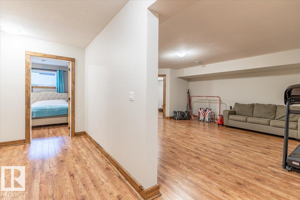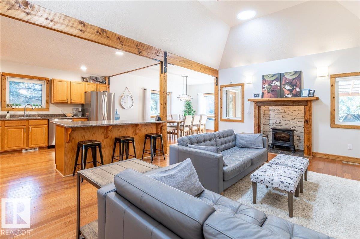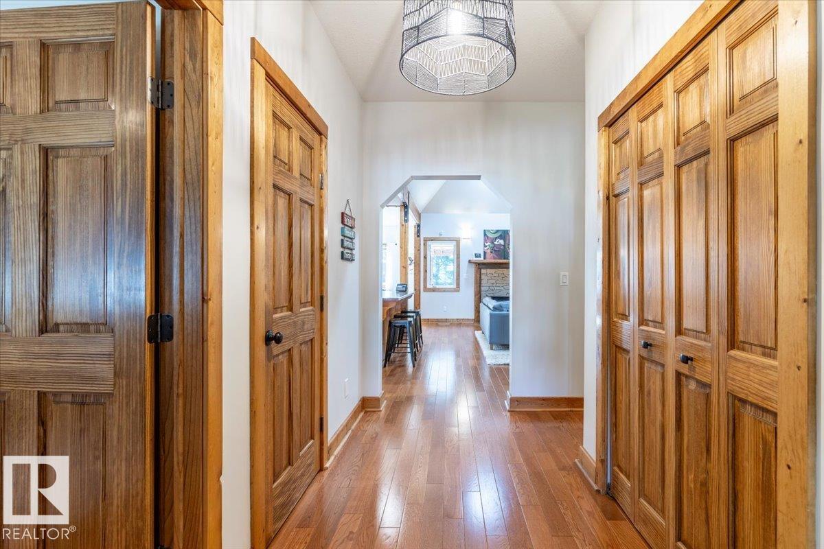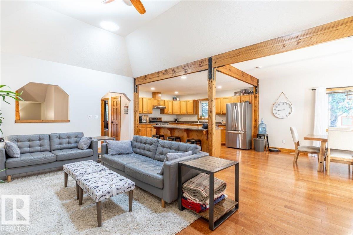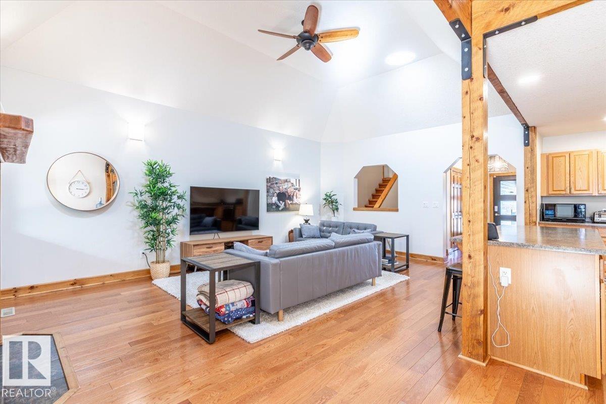 This Immaculate Home shows off its Beauty Inside and Out! Past the Covered Front Deck enter the Main Floor of the home. The Main Floor hosts an open Kitchen, Dining, and Living room with custom wood beams throughout. The Primary Bedroom has a Walk-In Closet, and a 3 Piece Ensuite Bathroom while another Bedroom and 4 Piece Bathroom Conclude the main floor. The Fully Finished Basement Hosts Two more Bedrooms, a 3 Piece Bathroom, Laundry Room, Utility Room, and Extra Storage. The Upper Loft Level is cozy with wood cladded vaulted ceilings Throughout. The Oversized Double Attached Garage is Heated and has an extra added work space. The Back Deck has a Covered Pegula & Gas BBQ Hookup Overlooking the Private, Treed, Fenced Backyard. This Home has many upgrades including Air Conditioning, a Radon Mitigation System, Battery Back Up Sump Pump, Hardie Board Siding, Hardwood Floors, Chain link Fence, and More. This Pride of Ownership property must be viewed in person to appreciate everything it holds Inside and Out!