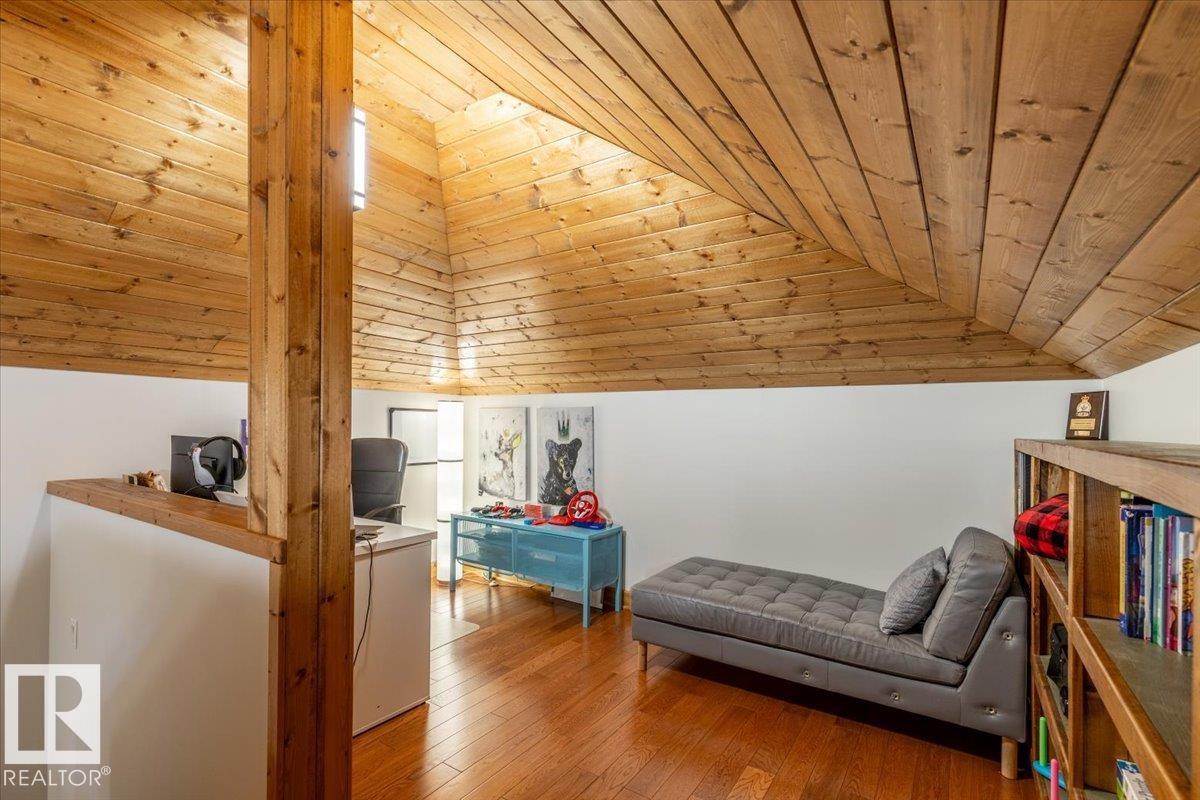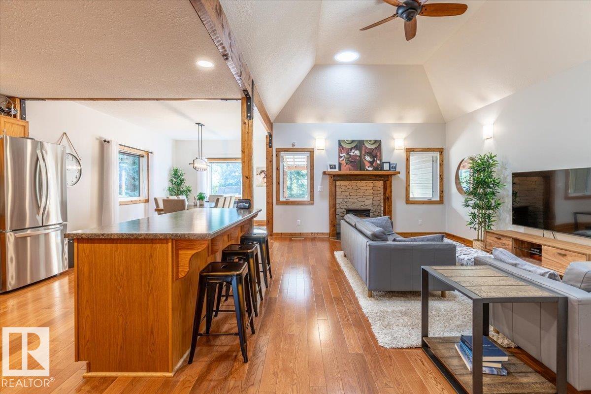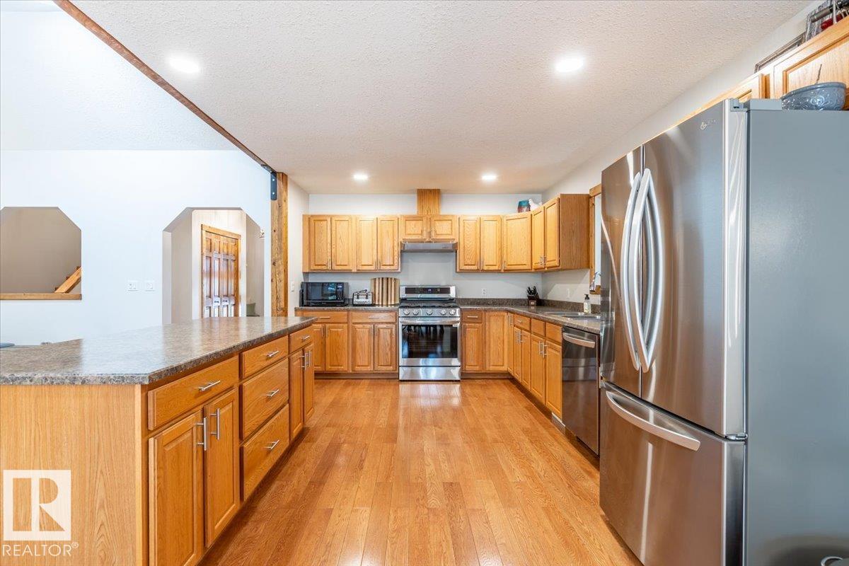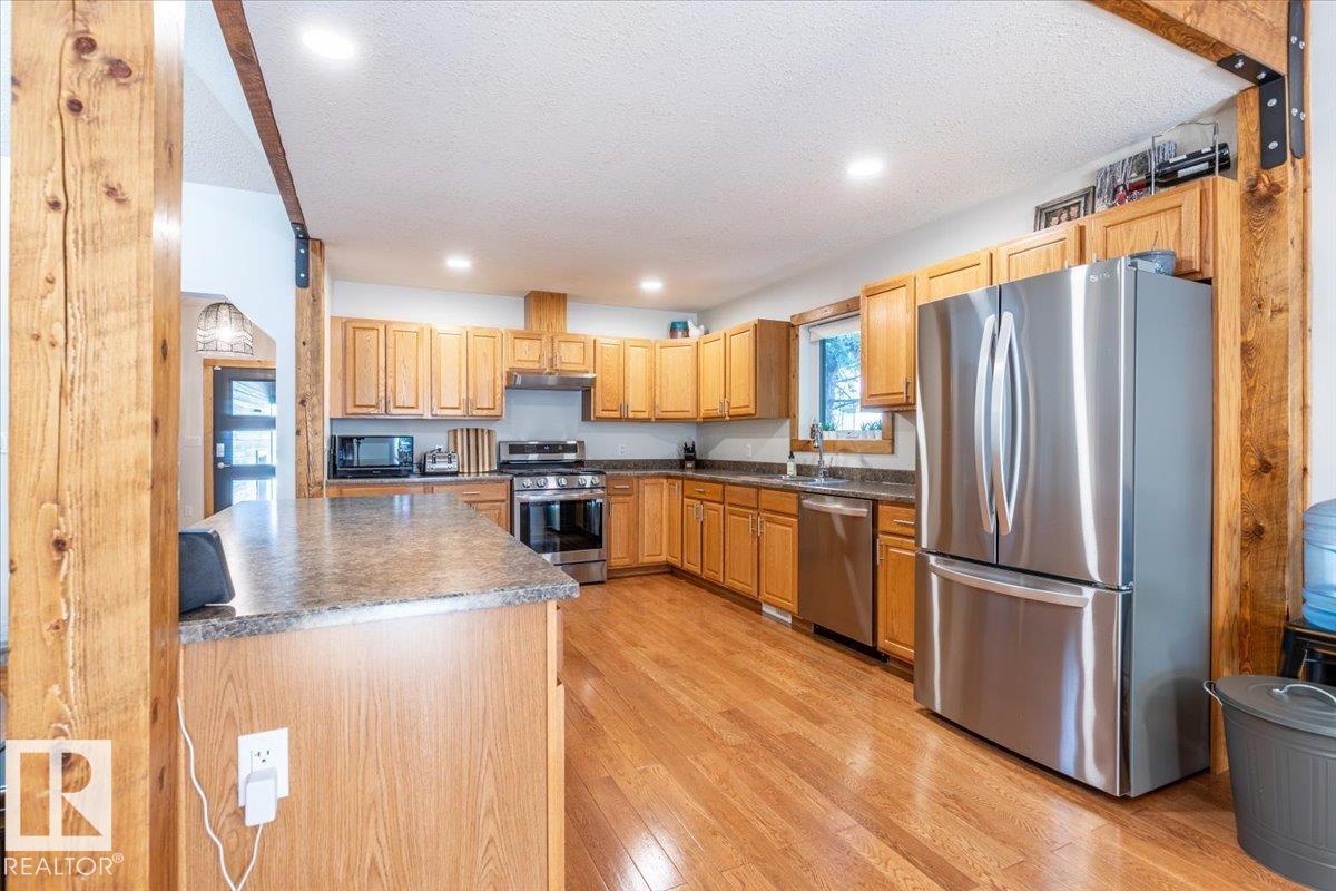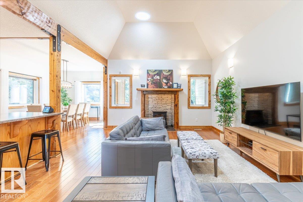 This Immaculate Home shows off its Beauty Inside and Out! Past the Covered Front Deck enter the Main Floor of the home. The Main Floor hosts an open Kitchen, Dining, and Living room with custom wood beams throughout. The Primary Bedroom has a Walk-In Closet, and a 3 Piece Ensuite Bathroom while another Bedroom and 4 Piece Bathroom Conclude the main floor. The Fully Finished Basement Hosts Two more Bedrooms, a 3 Piece Bathroom, Laundry Room, Utility Room, and Extra Storage. The Upper Loft Level is cozy with wood cladded vaulted ceilings Throughout. The Oversized Double Attached Garage is Heated and has an extra added work space. The Back Deck has a Covered Pegula & Gas BBQ Hookup Overlooking the Private, Treed, Fenced Backyard. This Home has many upgrades including Air Conditioning, a Radon Mitigation System, Battery Back Up Sump Pump, Hardie Board Siding, Hardwood Floors, Chain link Fence, and More. This Pride of Ownership property must be viewed in person to appreciate everything it holds Inside and Out!