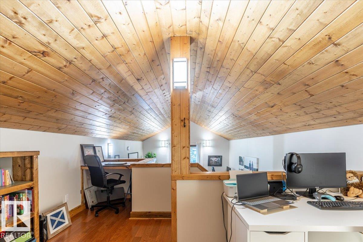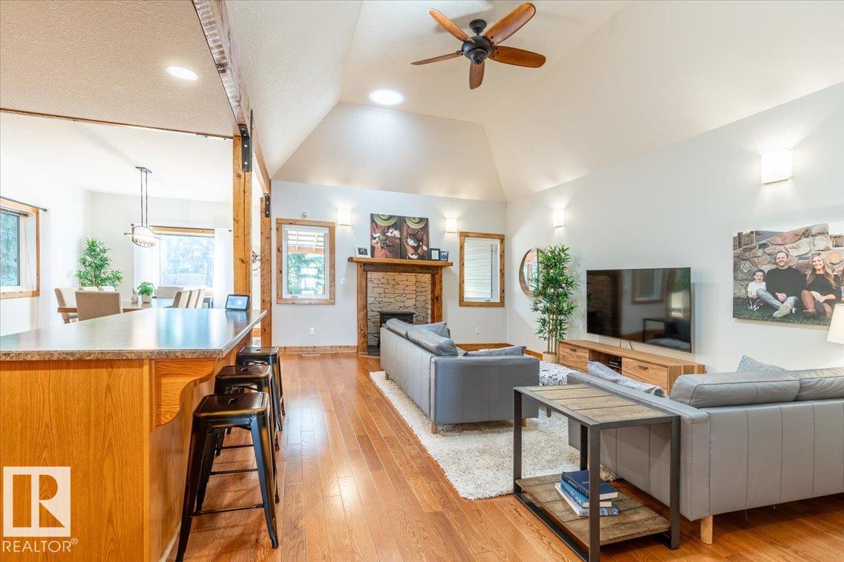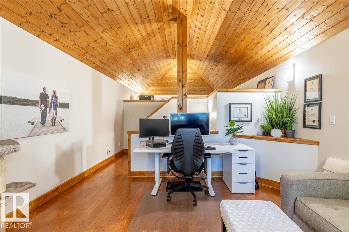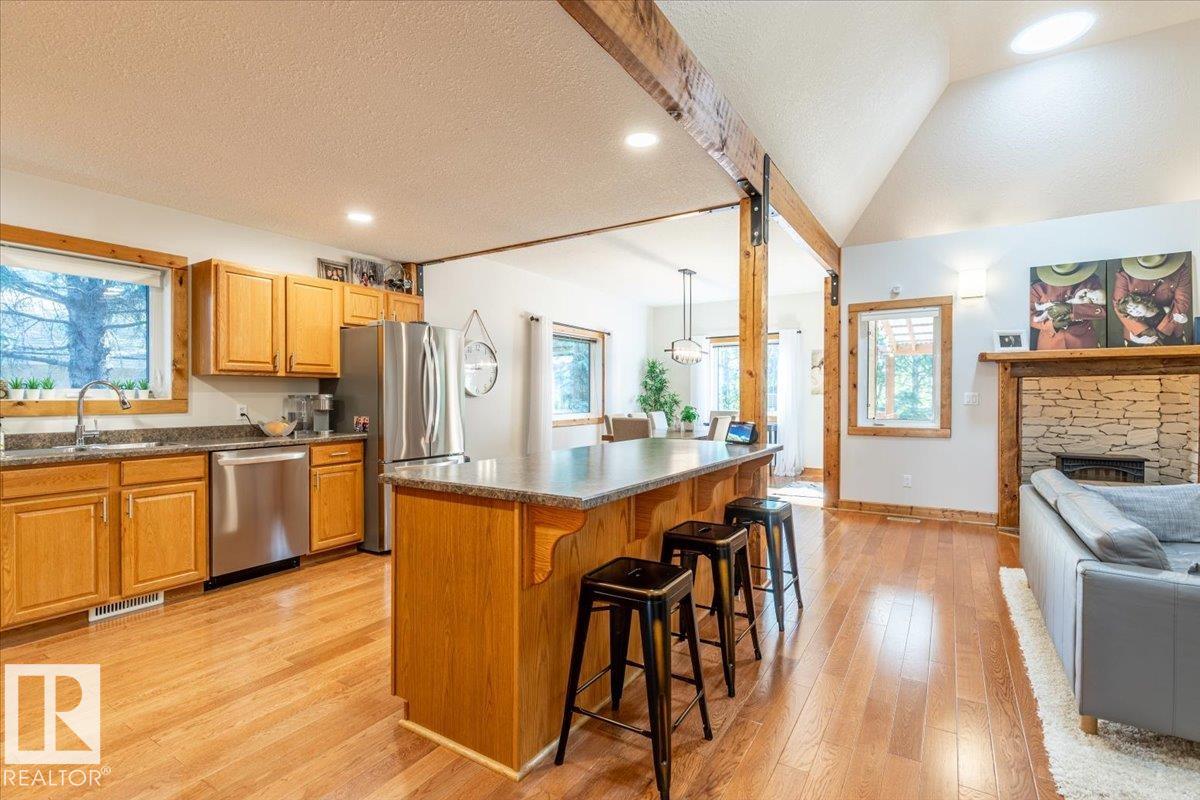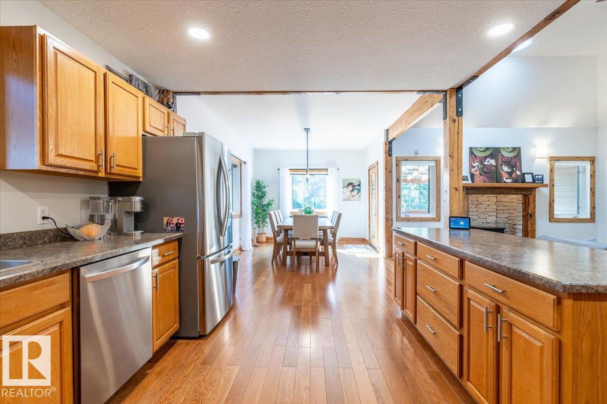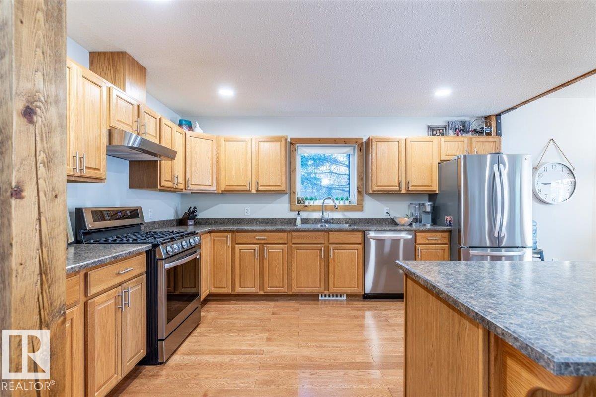 This Immaculate Home shows off its Beauty Inside and Out! Past the Covered Front Deck enter the Main Floor of the home. The Main Floor hosts an open Kitchen, Dining, and Living room with custom wood beams throughout. The Primary Bedroom has a Walk-In Closet, and a 3 Piece Ensuite Bathroom while another Bedroom and 4 Piece Bathroom Conclude the main floor. The Fully Finished Basement Hosts Two more Bedrooms, a 3 Piece Bathroom, Laundry Room, Utility Room, and Extra Storage. The Upper Loft Level is cozy with wood cladded vaulted ceilings Throughout. The Oversized Double Attached Garage is Heated and has an extra added work space. The Back Deck has a Covered Pegula & Gas BBQ Hookup Overlooking the Private, Treed, Fenced Backyard. This Home has many upgrades including Air Conditioning, a Radon Mitigation System, Battery Back Up Sump Pump, Hardie Board Siding, Hardwood Floors, Chain link Fence, and More. This Pride of Ownership property must be viewed in person to appreciate everything it holds Inside and Out!