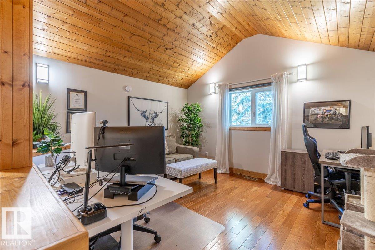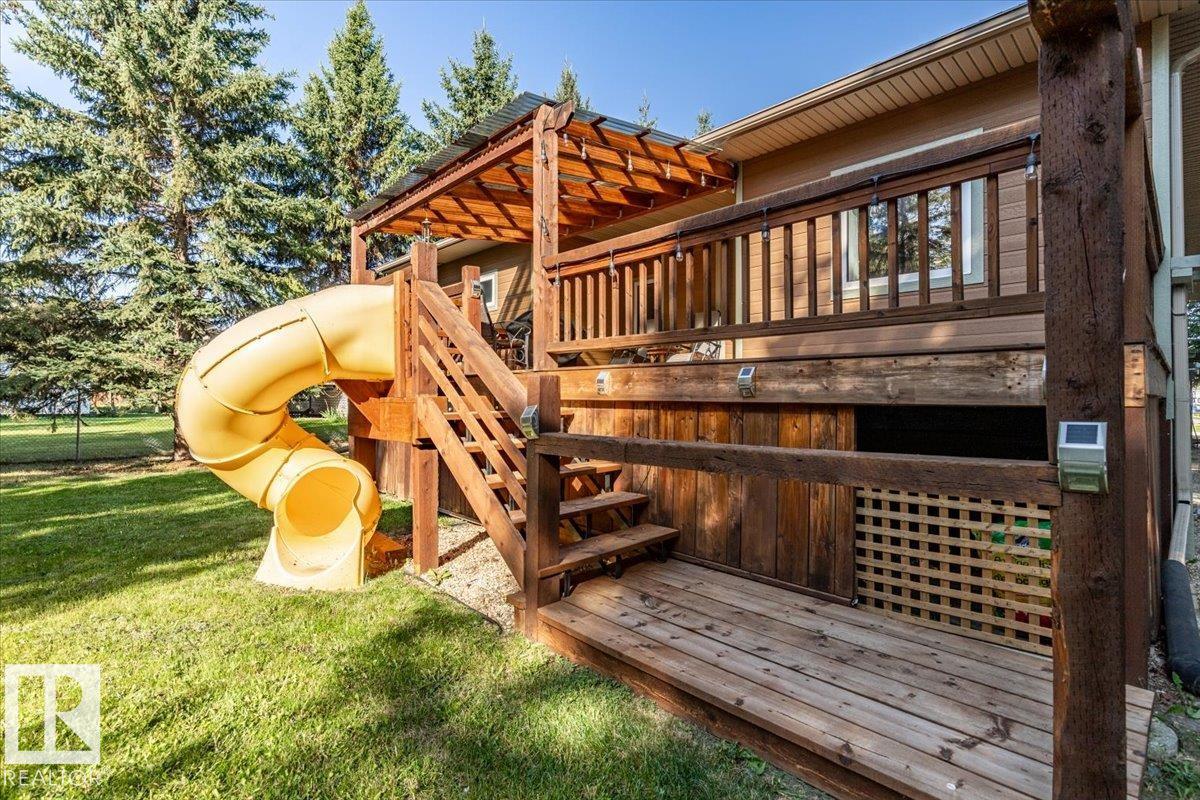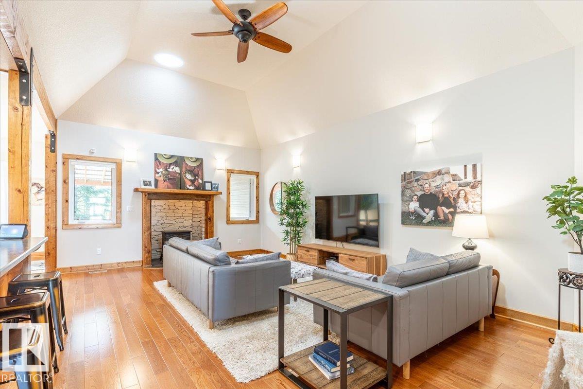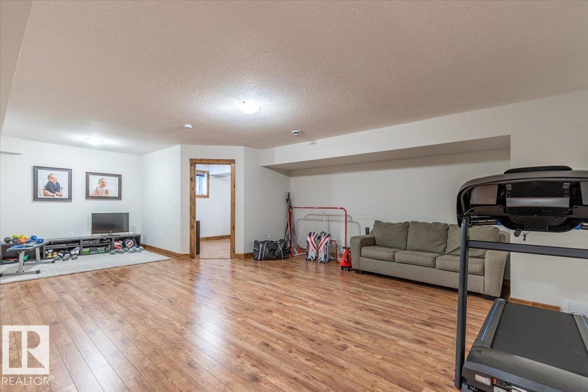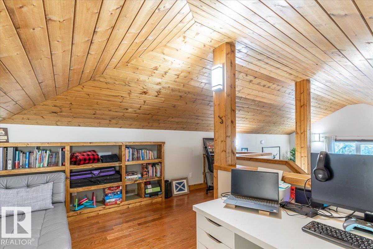 This Immaculate Home shows off its Beauty Inside and Out! Past the Covered Front Deck enter the Main Floor of the home. The Main Floor hosts an open Kitchen, Dining, and Living room with custom wood beams throughout. The Primary Bedroom has a Walk-In Closet, and a 3 Piece Ensuite Bathroom while another Bedroom and 4 Piece Bathroom Conclude the main floor. The Fully Finished Basement Hosts Two more Bedrooms, a 3 Piece Bathroom, Laundry Room, Utility Room, and Extra Storage. The Upper Loft Level is cozy with wood cladded vaulted ceilings Throughout. The Oversized Double Attached Garage is Heated and has an extra added work space. The Back Deck has a Covered Pegula & Gas BBQ Hookup Overlooking the Private, Treed, Fenced Backyard. This Home has many upgrades including Air Conditioning, a Radon Mitigation System, Battery Back Up Sump Pump, Hardie Board Siding, Hardwood Floors, Chain link Fence, and More. This Pride of Ownership property must be viewed in person to appreciate everything it holds Inside and Out!
