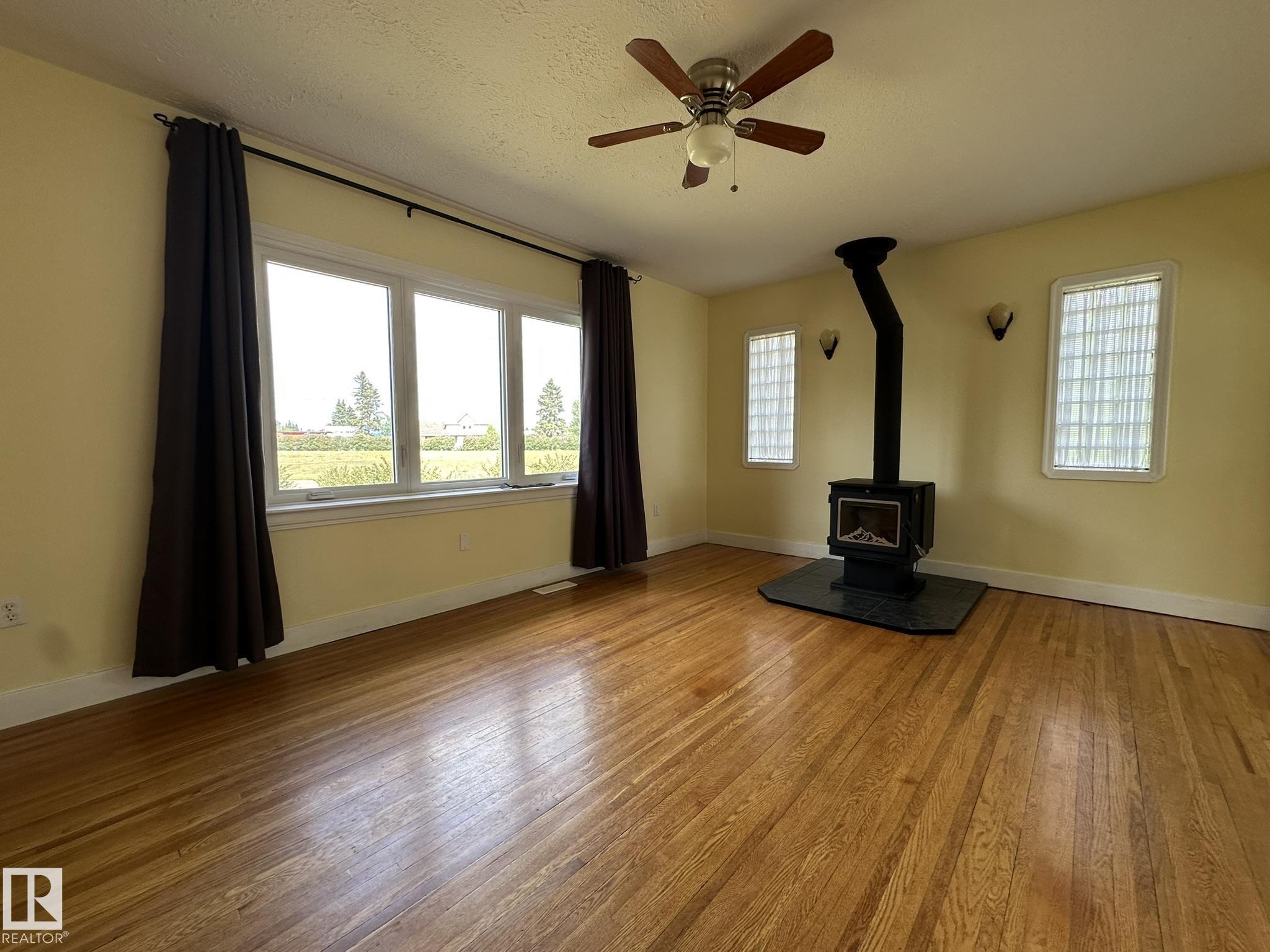 One of a kind property in Smoky Lake. The gorgeous bungalow sits on the best 14,564 sf lot in town. The home shows great pride of ownership and displays much improvements over the last few years. You'll love the bright kitchen and adjacent dining room overlooking the meticulously maintained yard, the open concept living room boasts gleaming hardwood floor, a wood stove for those cold winter nights and view of the park across the street. You'll also enjoy 2 good size bedrooms and a fully updated full bath on this level. Downstairs features a great room with room for another bedroom if needed and a full bath, which is just like your personal spa with its jet tub and ambiance lighting. Laundry, utilities, cold storage complete this level. P.S. Full reverse osmosis system has been installed for best drinking water ever. Outside is your personal and private oasis with a fully landscaped .3 Acre yard, 2 garages, greenhouse, fruit trees, privacy fence, paved driveway, RV parking, rear gate, etc. A Must-See Home