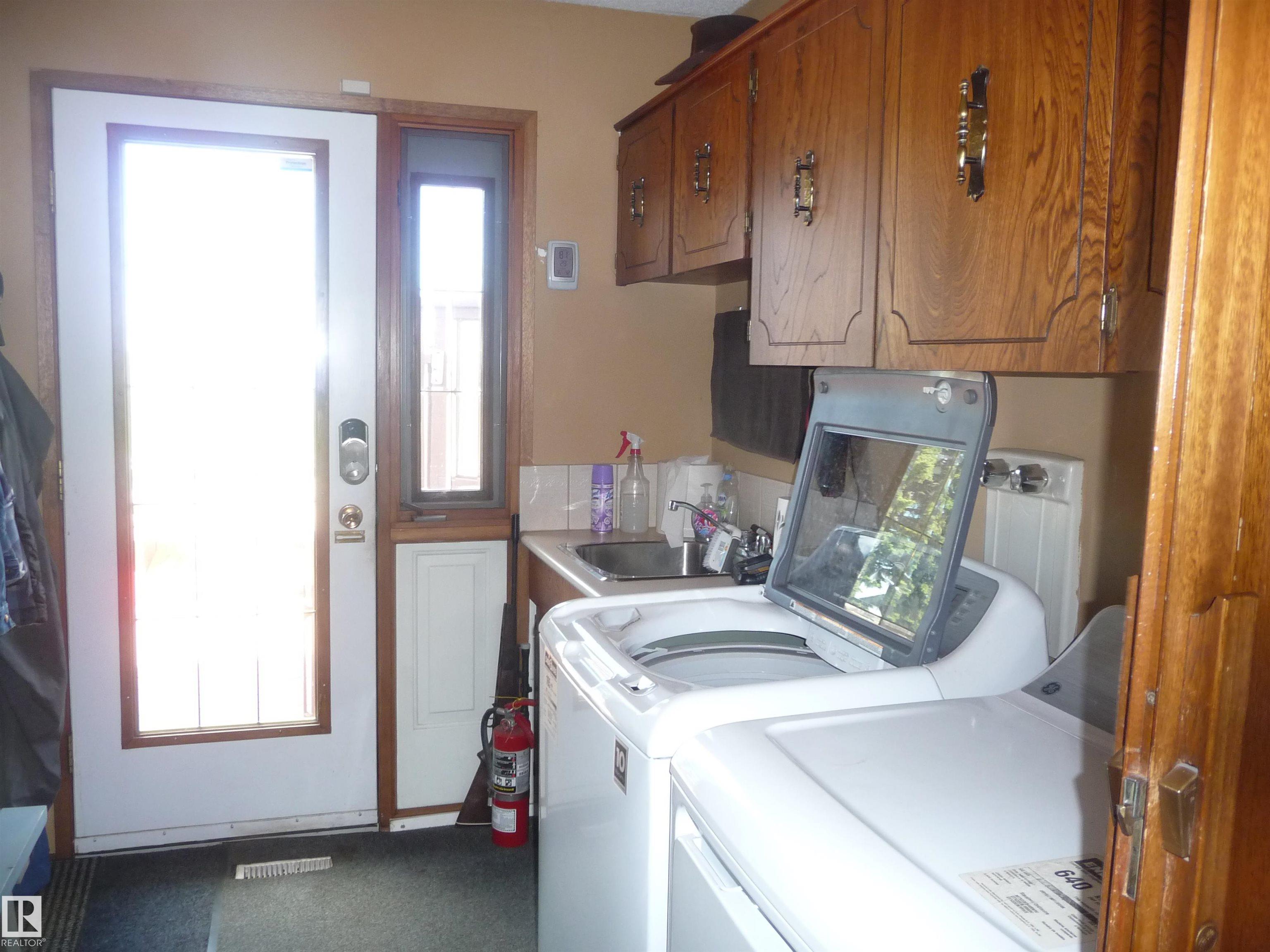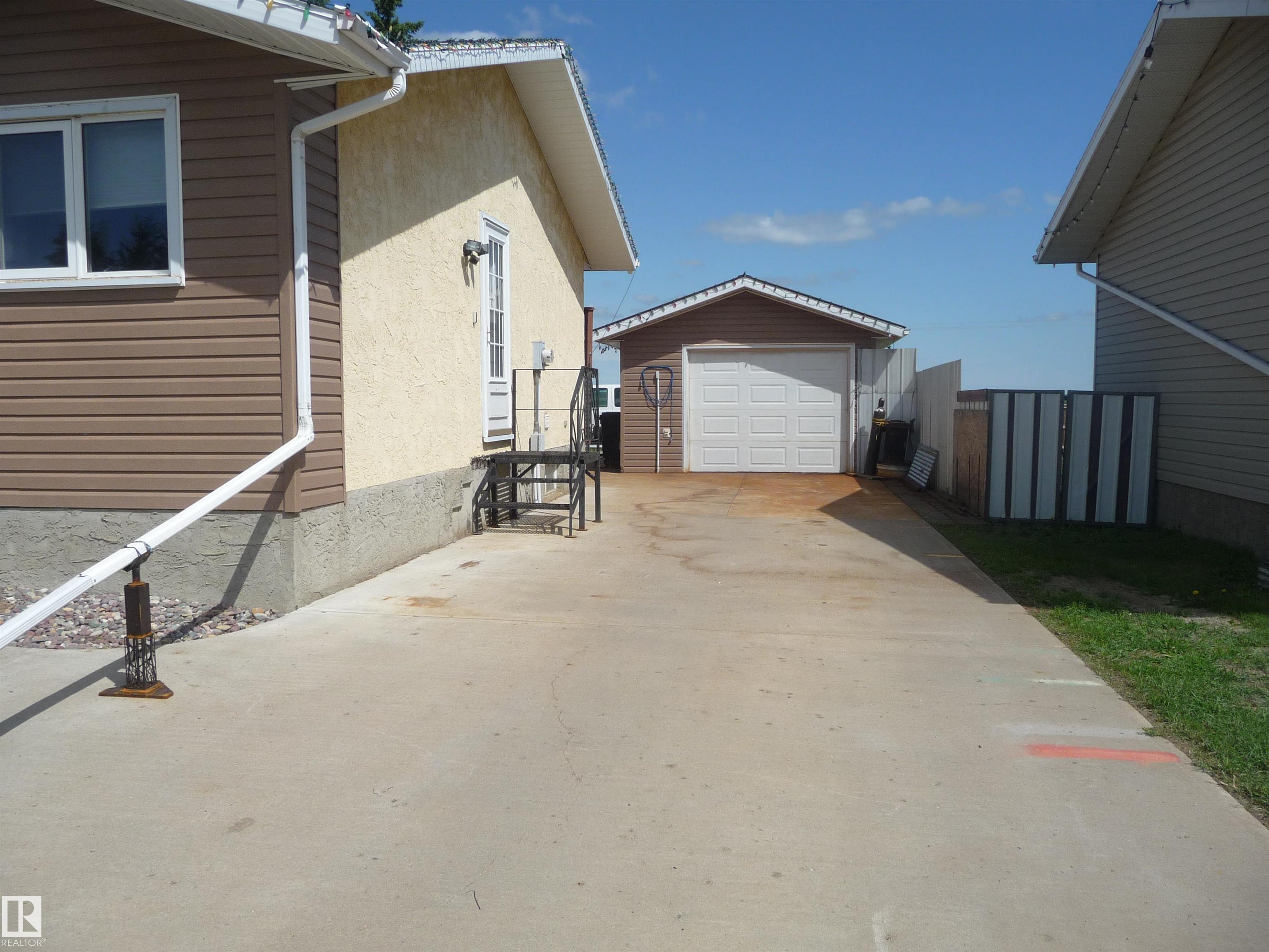 Situated in one of the best locations in Viking sits this very well maintained move in ready home. As one enters the home you are welcomed into a spacious living room which leads to the dining room and ?u? shaped kitchen. Two bedrooms, a 4 pc bathroom and main floor laundry complete the upper level. Downstairs features a family room, one bedroom, an office, 3 pc bathroom, storage and utility area. Outside on will find a single heated garage with long driveway, a large rear deck with outdoor fireplace and a gravelled parking pad for all your parking needs. Let?s not forget to mention that the home features central AC. A must see!!