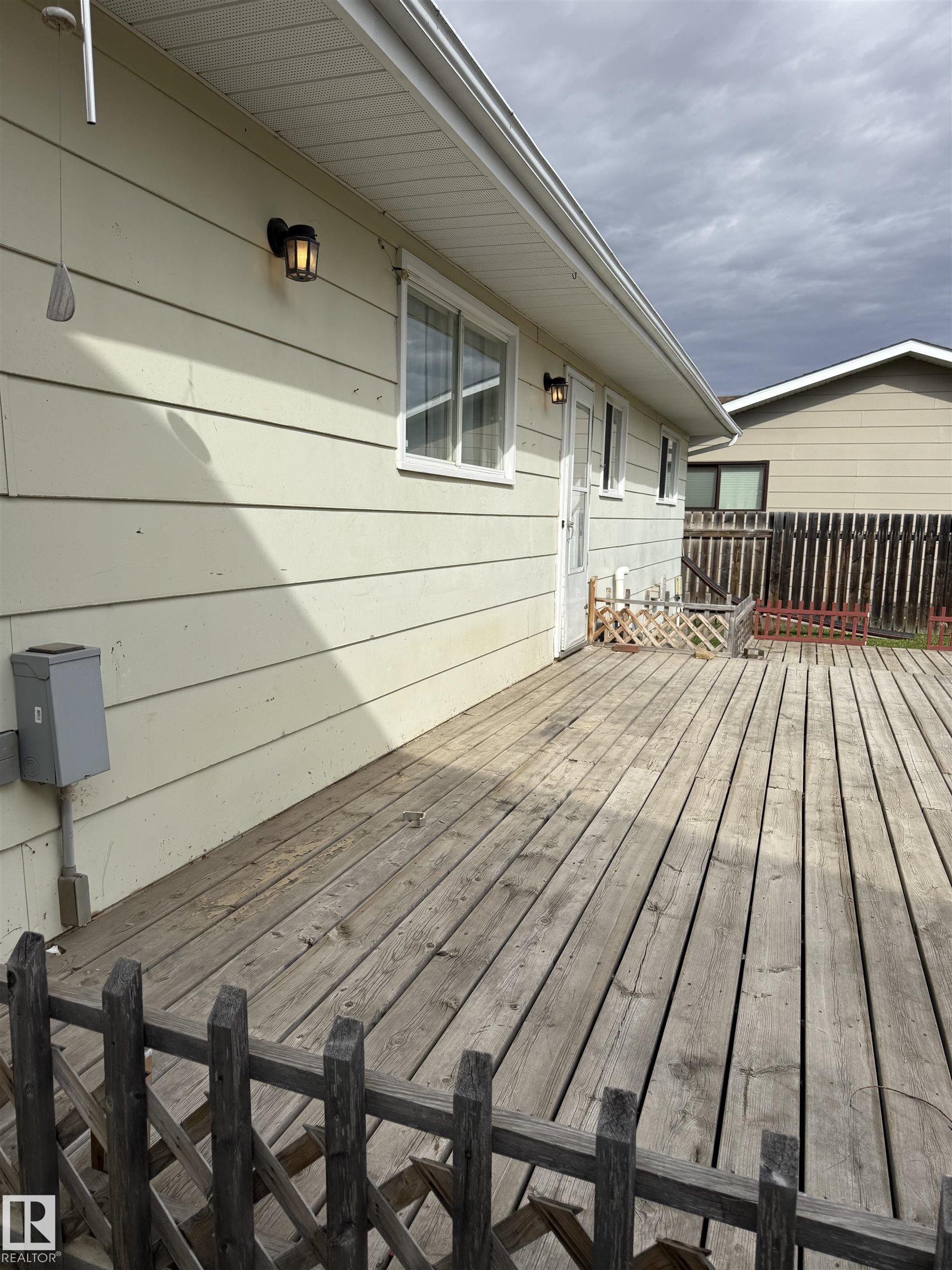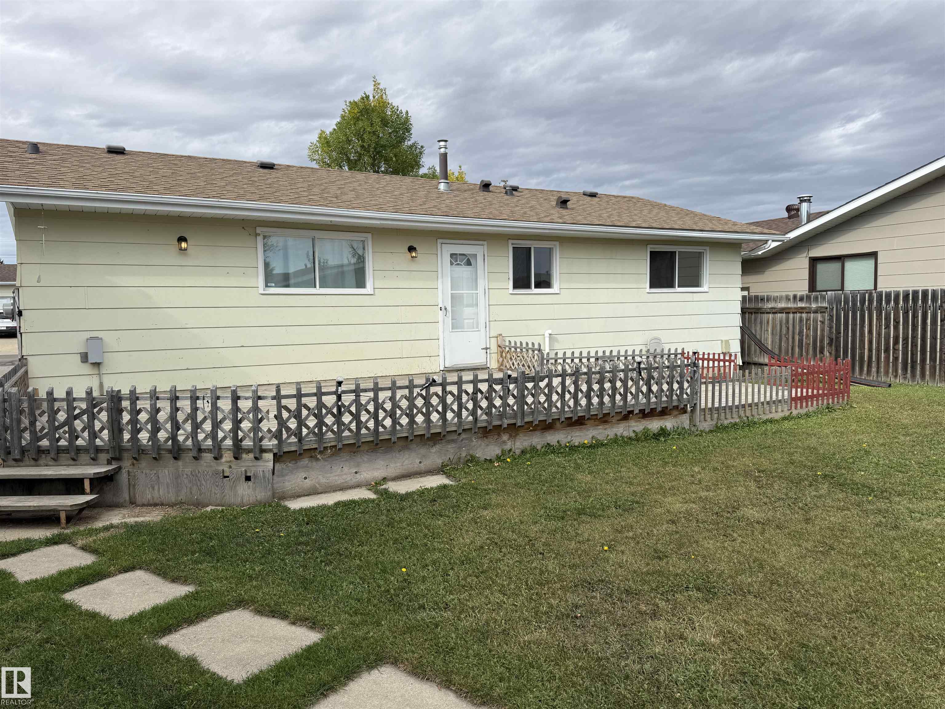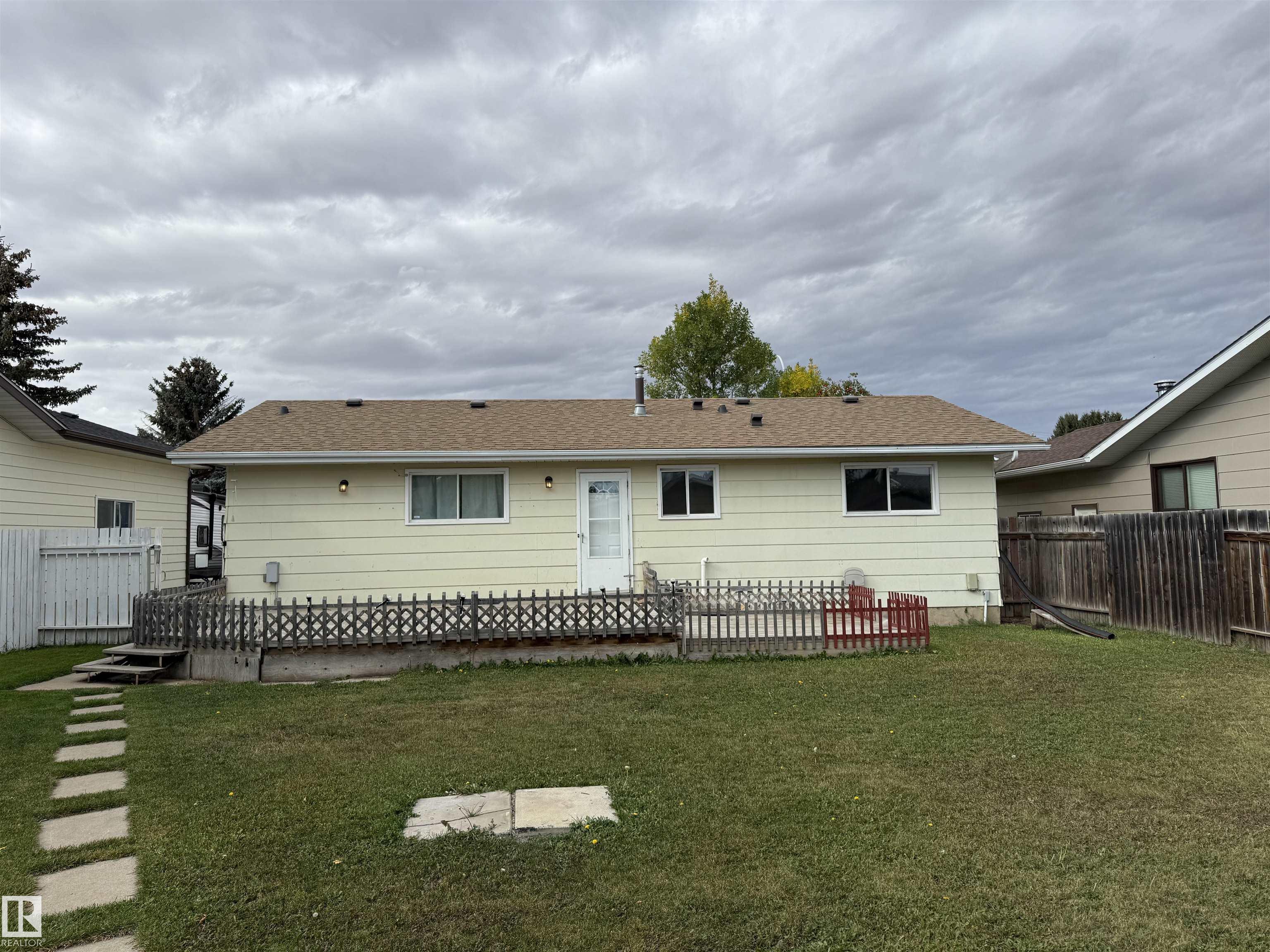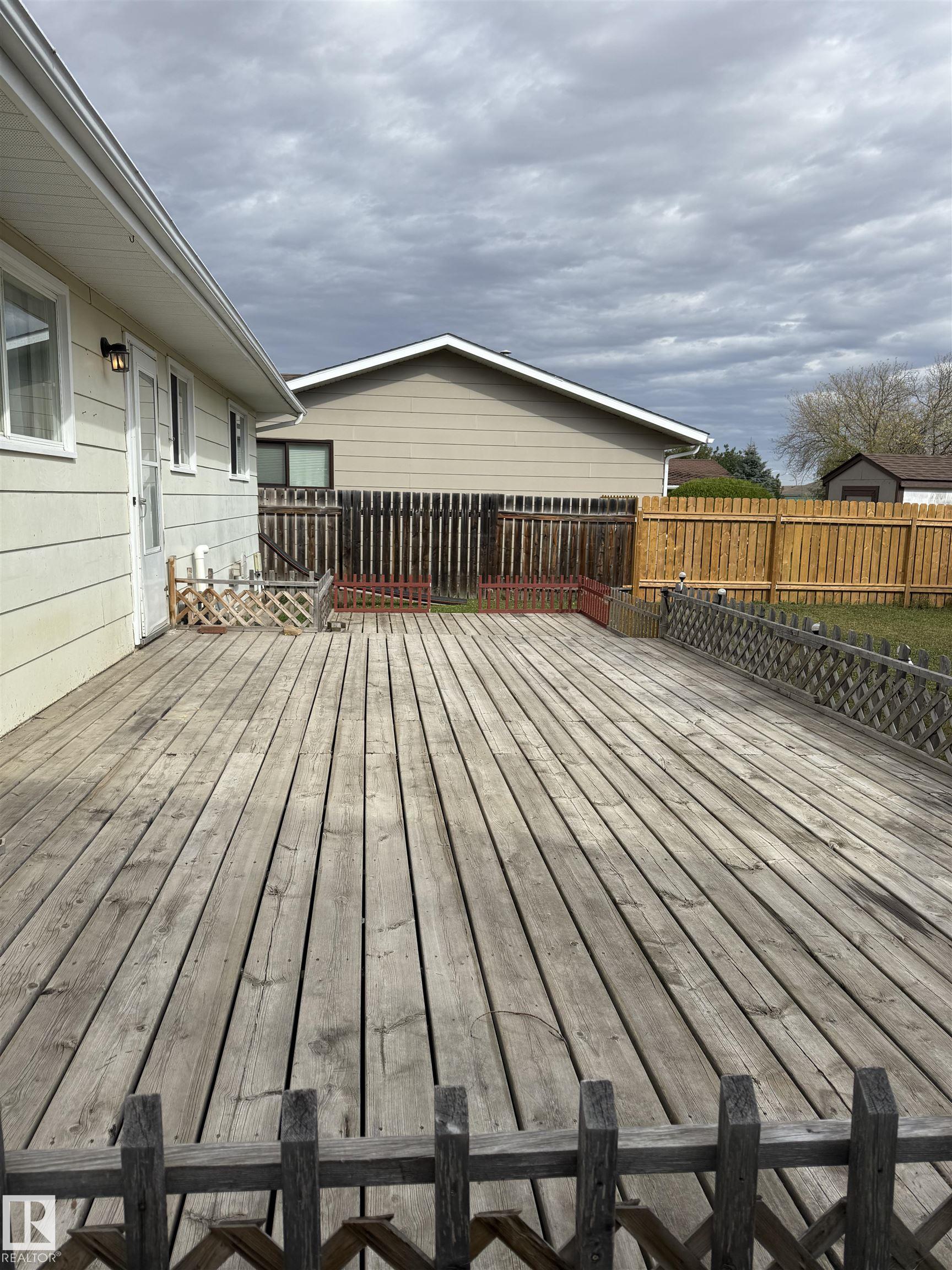 What a wonderful 3 bed and 3 bath family home on south side location!! Main floor laundry, jack and jill half bath on the master bedroom and bay window in living room. New shingles, new hot water tank and new furnace. All new paint, all new flooring on main floor, freshly painted kitchen cabinets and newer interior doors on the main floor. Basement freshly painted with extra bathroom and bedroom and living area. Large, family deck on the back with a detached oversized single garage in the back. Completely fenced and beautiful yard on the edge of town.