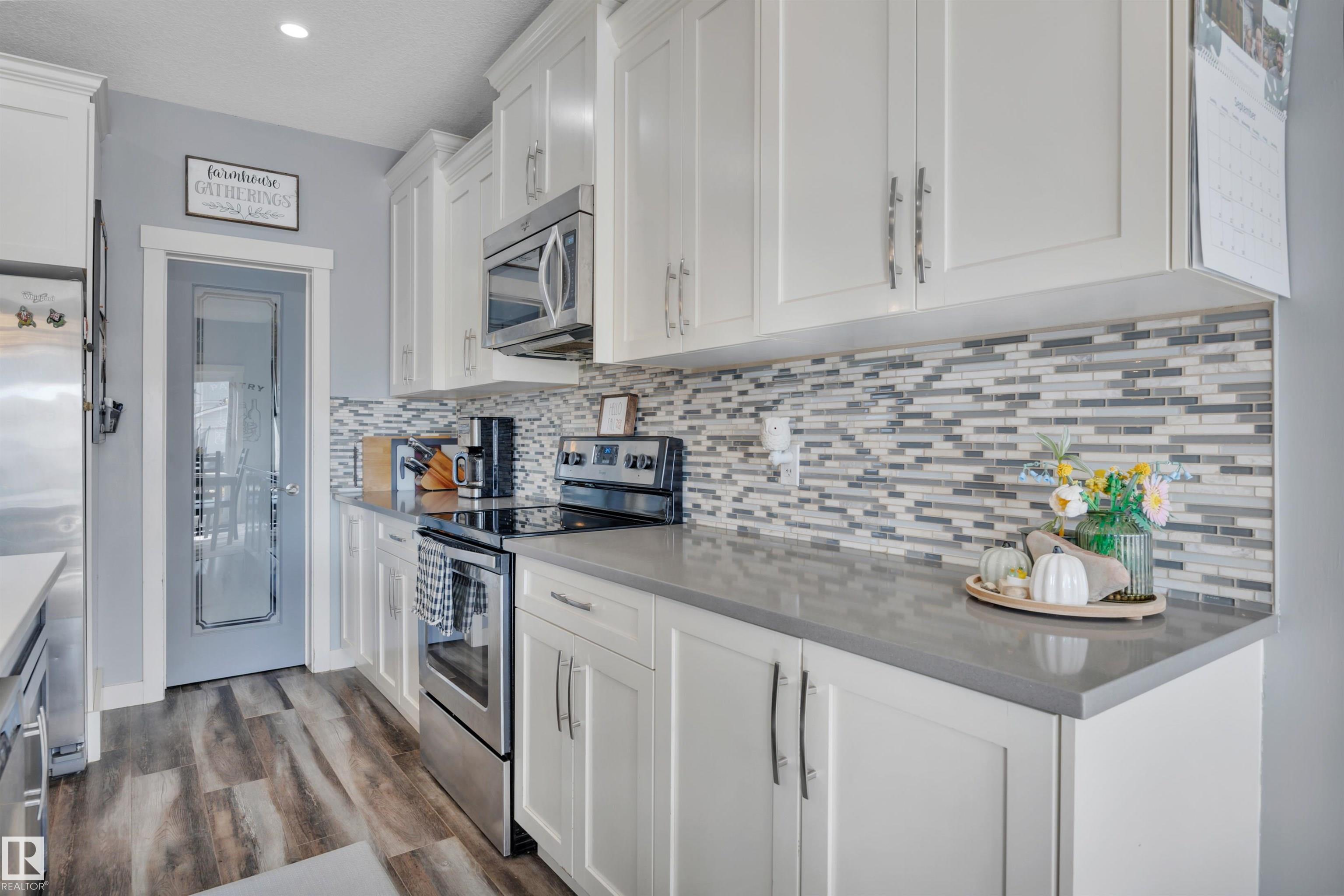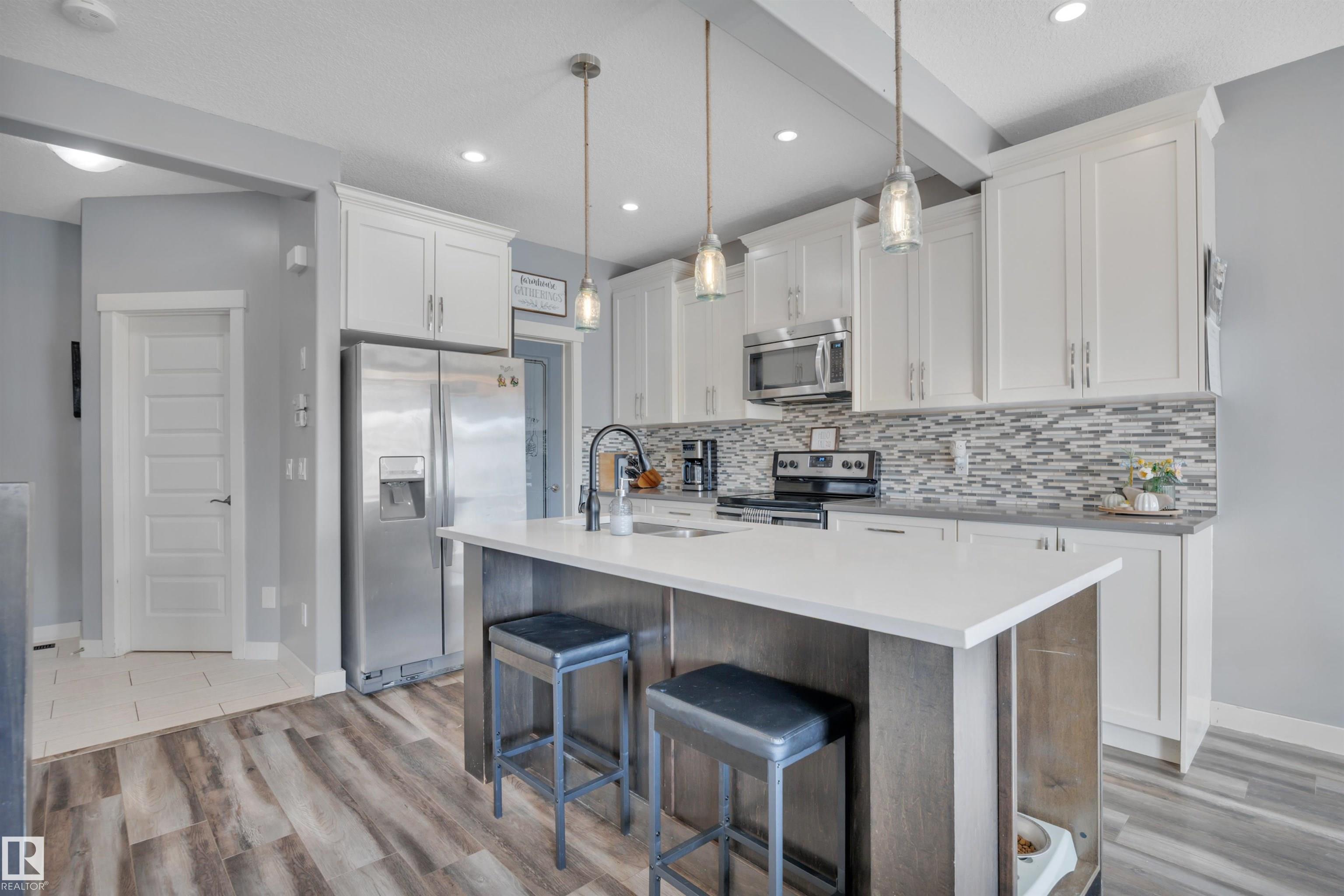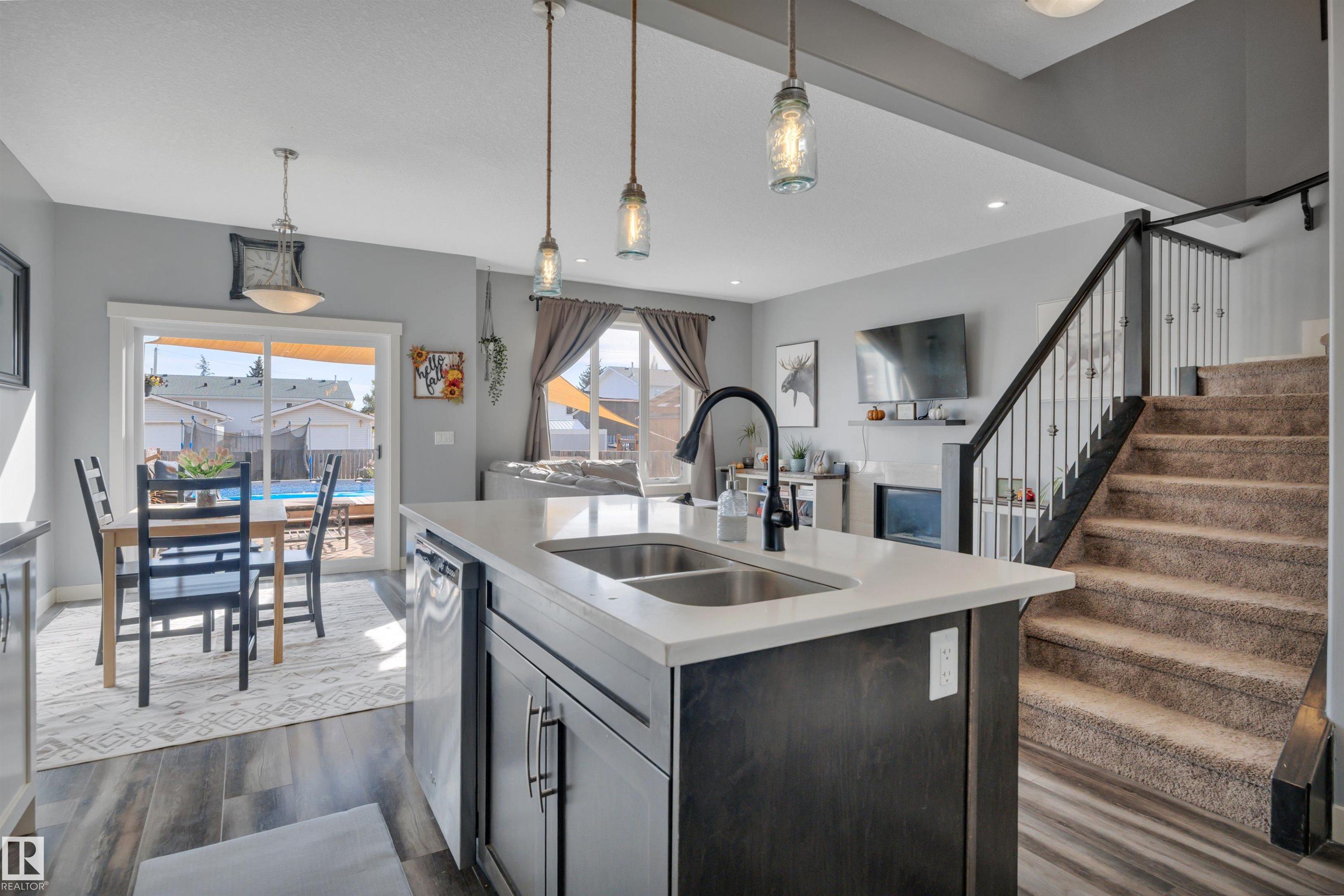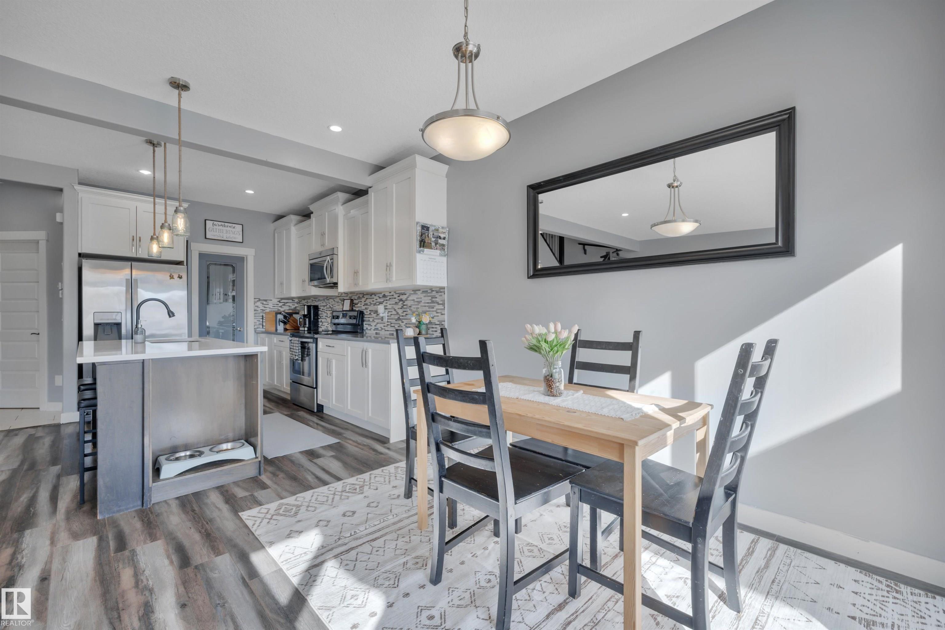 Step into small town charm with all the space and comfort you have been searching for. This gorgeous two story on 53rd Avenue in Calmar offers 1,713 sq. ft. of thoughtfully designed living space. The main floor is open and inviting, filled with natural light and centered around a well-equipped kitchen that makes both cooking and entertaining a joy. A spacious living and dining area creates the perfect place to gather, while a convenient half bathroom adds extra functionality for busy family life and guests. Upstairs you will find three generously sized bedrooms, including a private primary suite with a full ensuite bathroom. Another full bathroom on this level provides comfort and ease for the whole family. The double attached garage keeps life organized, and the location is second to none. Just a five minute walk brings you to both the elementary and high school, while still being only minutes from Leduc, the airport, and Edmonton?s south side. This home is more than a place to live.