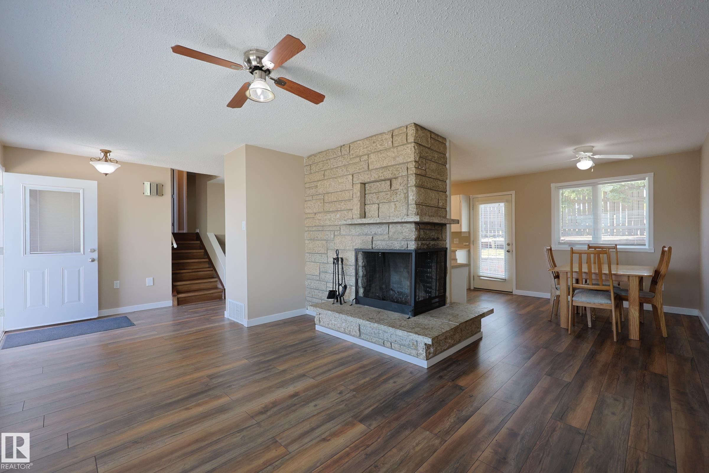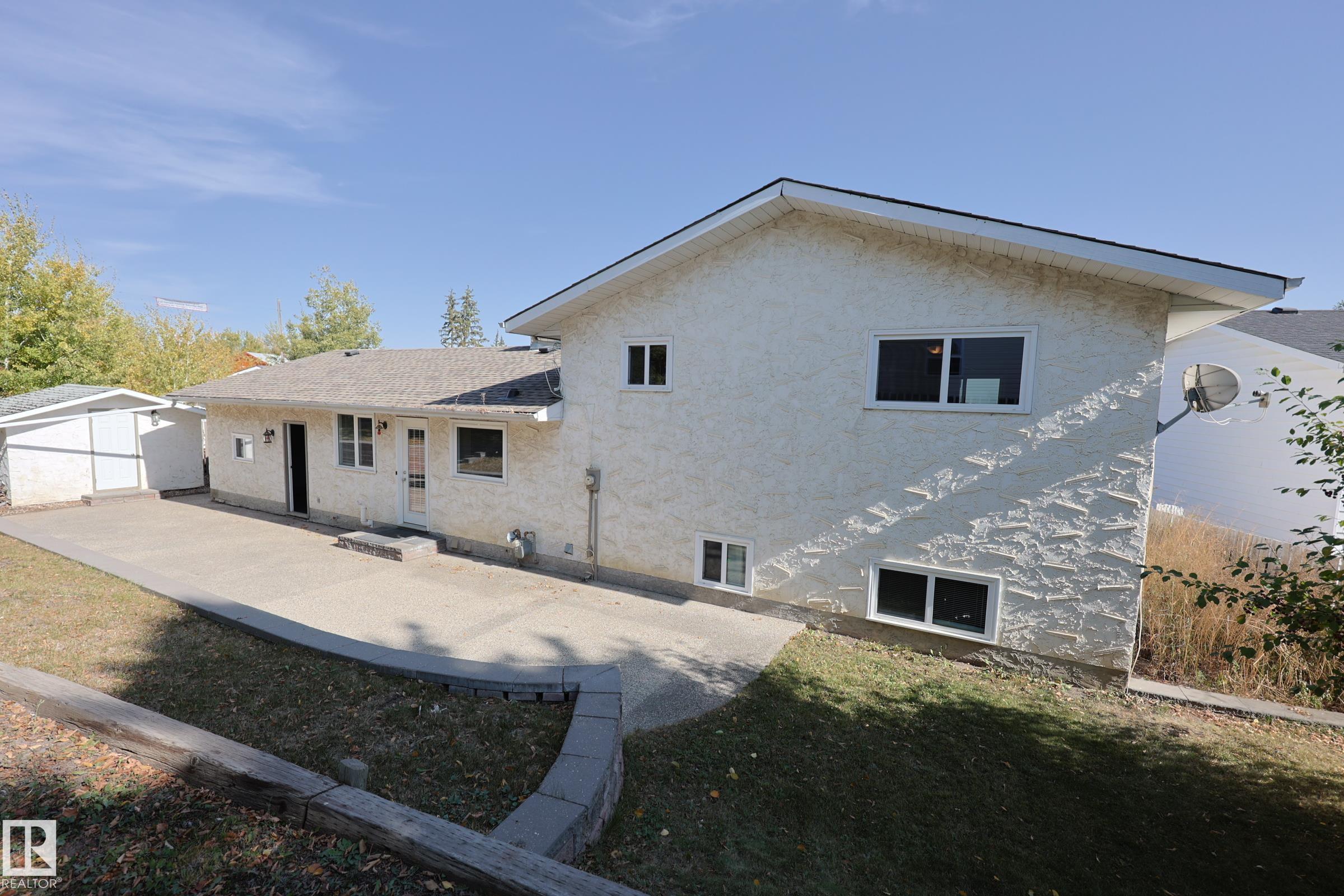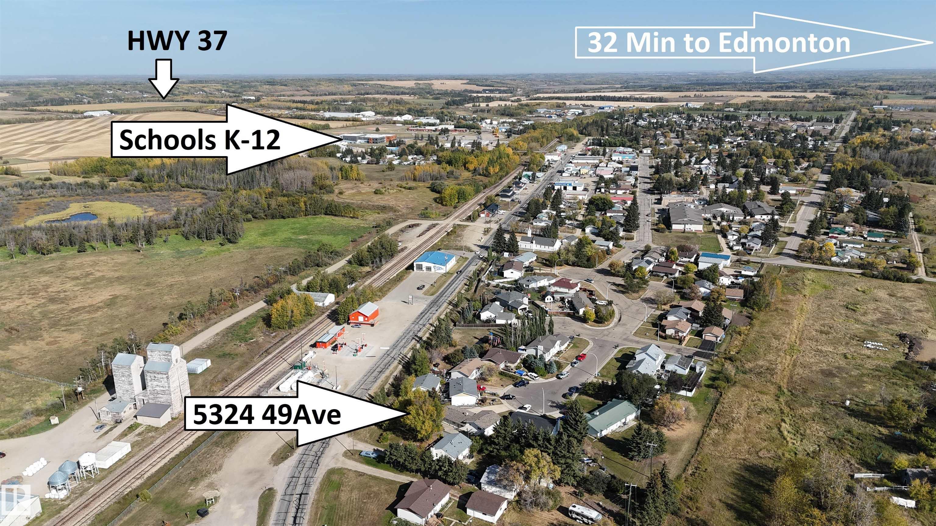 Renovated and Move in Ready! Located on the EDGE OF ONOWAY, close to Amenities, Schools and only 32 MIN TO EDMONTON. PIE LOT at the END OF A CUL DE SAC is nice a quiet. MAJOR UPDATES include, Roof, Windows, Doors, Furnace, Flooring, Paint. BRIGHT LIVING from the BAY WINDOW with real wood and REAL STONE CORNER FIREPLACE. L Shaped kitchen with GAS STOVE, new Countertop, sink and faucet plus a large picture window. Open Dinette with GARDEN DOOR TO REAR PATIO that spans most of the home. Upstairs to the PRIMARY SUITE WITH PRIVATE ENSUITE. Bedrooms 2 and 3 are similar in size with a full bath adjacent. 3rd level with a WIDE OPEN REC ROOM, 4th bedroom, half bathroom and LAUNDRY ROOM. 4th level is READY FOR FUTURE DEVELOPMENT with a cold room set up and dual sump pumps. 16 x 24 GARAGE IS INSULATED AND HEATED, and the Yard is LANDSCAPED AND FENCED FOR PETS with a solid stucco shed to match the house with an ATV door. GREAT OPPORTUNITY AT AN EVEN BETTER PRICE!