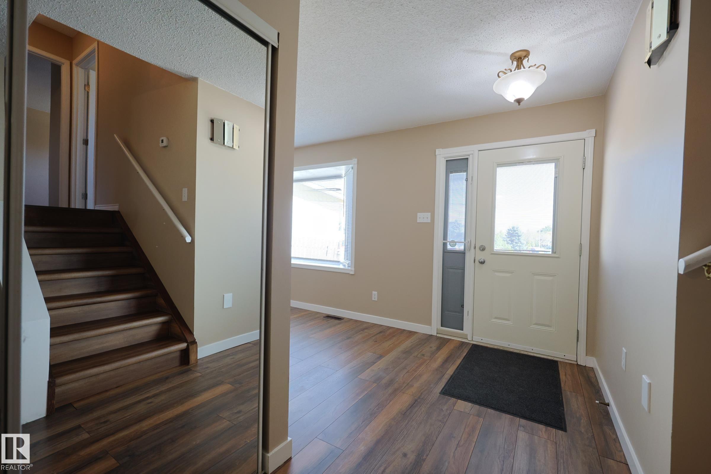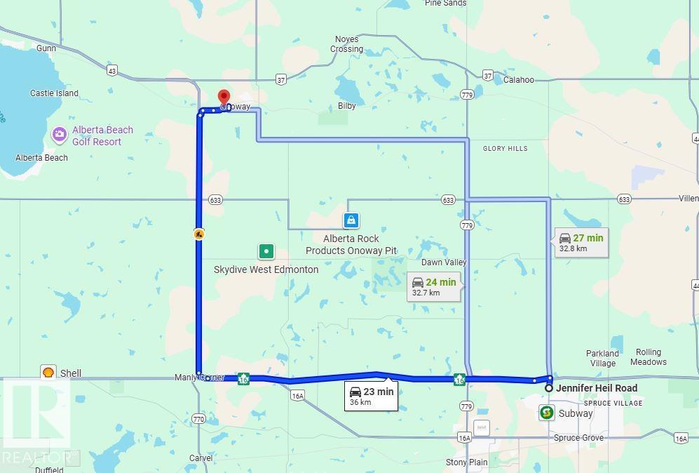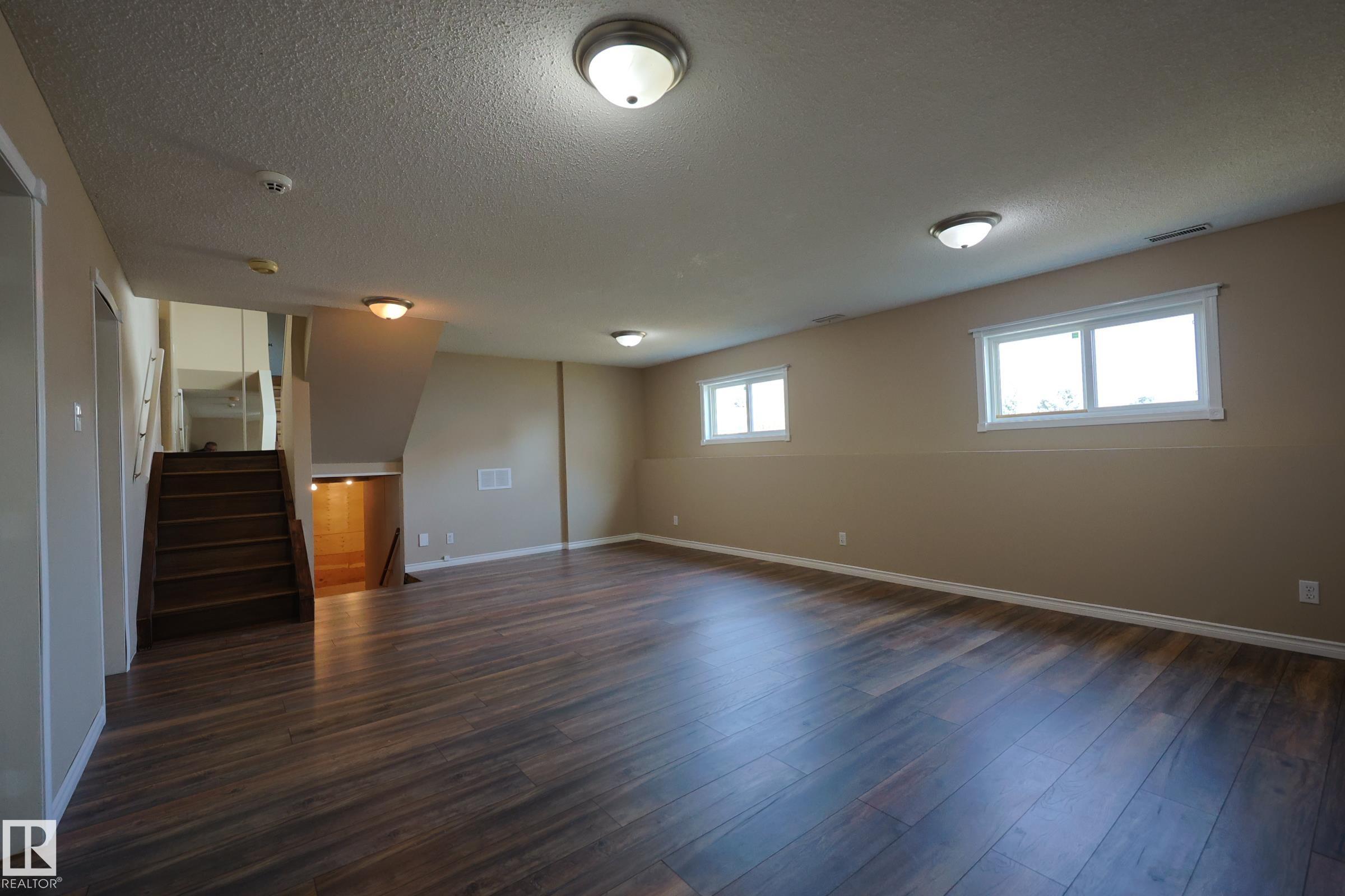 Renovated and Move in Ready! Located on the EDGE OF ONOWAY, close to Amenities, Schools and only 32 MIN TO EDMONTON. PIE LOT at the END OF A CUL DE SAC is nice a quiet. MAJOR UPDATES include, Roof, Windows, Doors, Furnace, Flooring, Paint. BRIGHT LIVING from the BAY WINDOW with real wood and REAL STONE CORNER FIREPLACE. L Shaped kitchen with GAS STOVE, new Countertop, sink and faucet plus a large picture window. Open Dinette with GARDEN DOOR TO REAR PATIO that spans most of the home. Upstairs to the PRIMARY SUITE WITH PRIVATE ENSUITE. Bedrooms 2 and 3 are similar in size with a full bath adjacent. 3rd level with a WIDE OPEN REC ROOM, 4th bedroom, half bathroom and LAUNDRY ROOM. 4th level is READY FOR FUTURE DEVELOPMENT with a cold room set up and dual sump pumps. 16 x 24 GARAGE IS INSULATED AND HEATED, and the Yard is LANDSCAPED AND FENCED FOR PETS with a solid stucco shed to match the house with an ATV door. GREAT OPPORTUNITY AT AN EVEN BETTER PRICE!