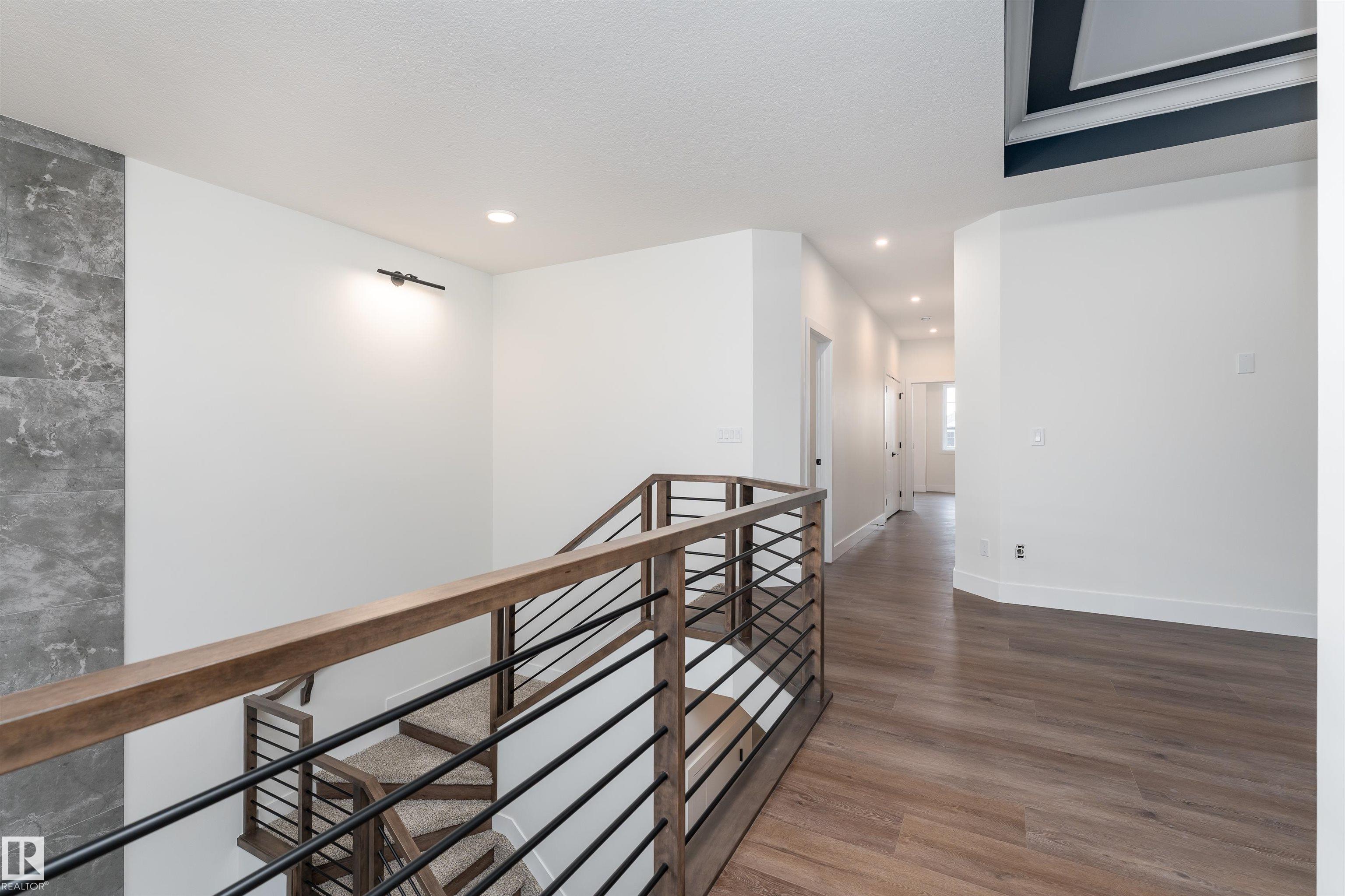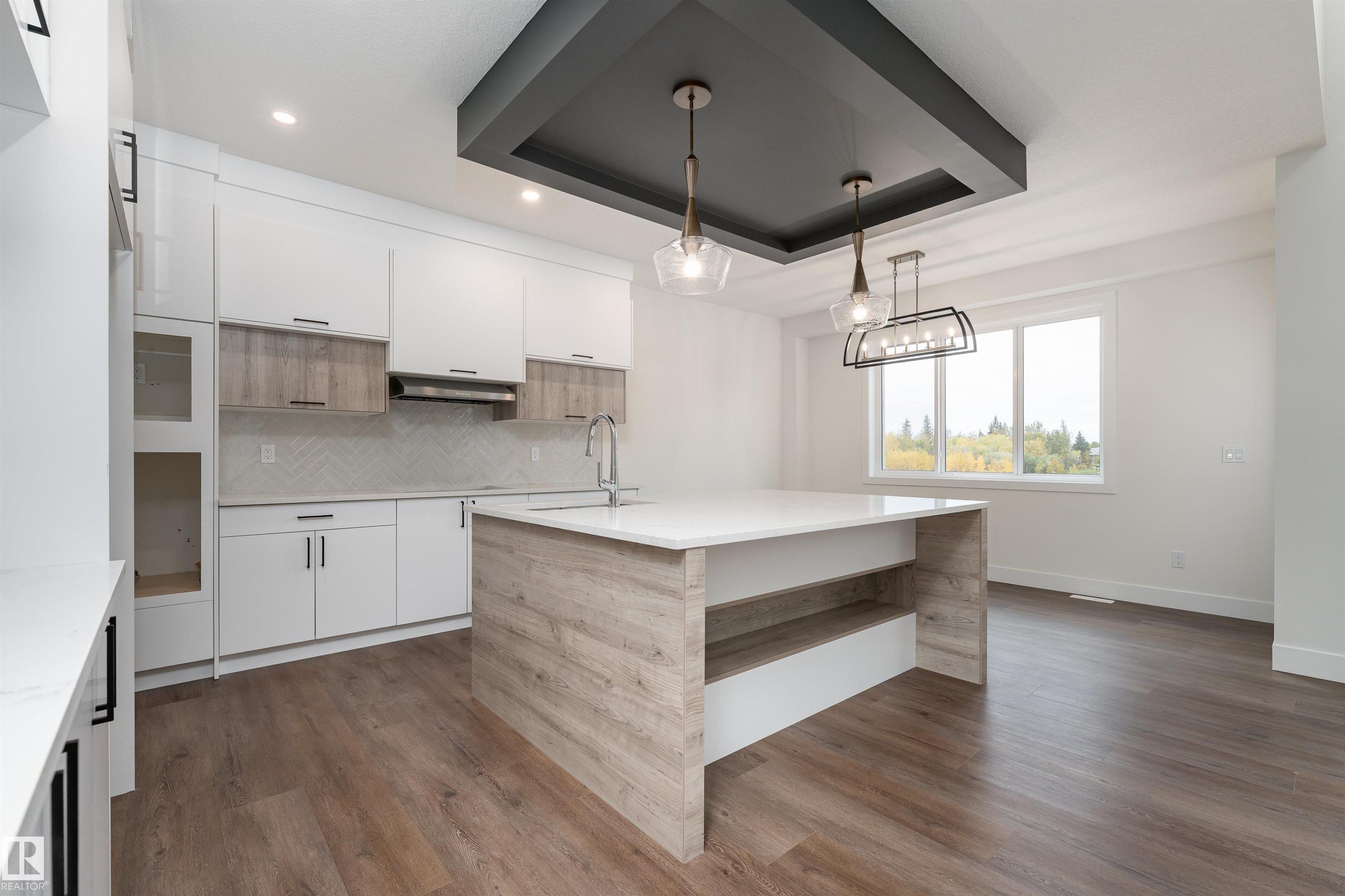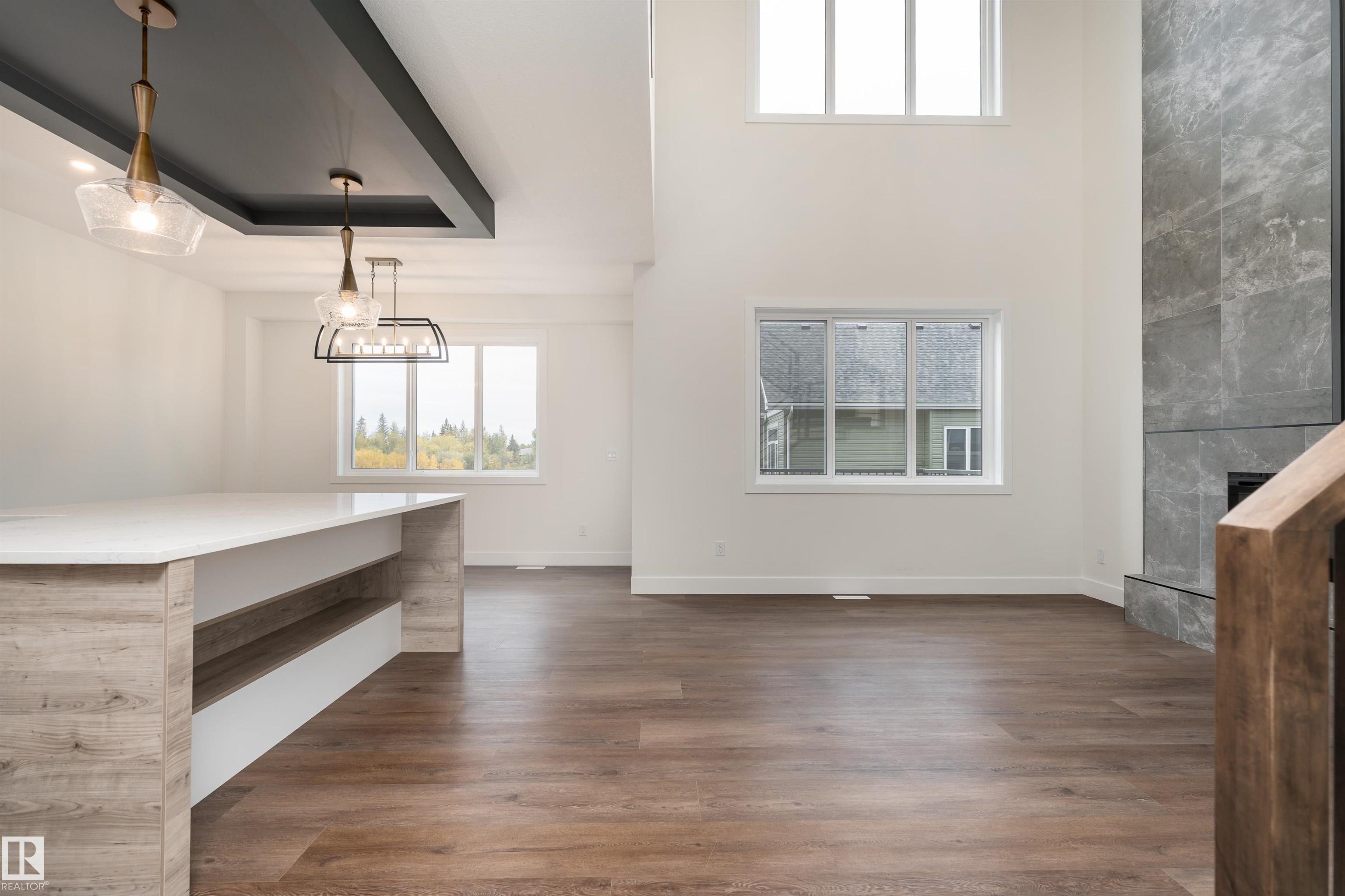 Step into luxury in this brand new, never occupied 2,150 sq ft 2-storey offers a walkout basement, separate entrance, and oversized 3-car garage. Soaring ceilings and an open-concept layout showcase a bright white kitchen with a showpiece island, walk-in pantry, and a dining area surrounded by windows with balcony access. The living room features a dramatic floor-to-ceiling tiled fireplace, while a main floor bedroom and 2-piece bath add convenience. Upstairs, the primary suite shines with a textured accent wall, spa-inspired ensuite with double sinks, soaker tub, stand-up shower, and a walk-through to a spacious walk-in closet. Two more bedrooms, a 3-piece bath, upstairs laundry, and an open family room complete the level. The walkout basement offers potential for a suite or custom design, and the oversized 3-car garage easily fits RVs, trucks, or a lift. Close to Gibbons Golf & Country Club, Oliver Park, and Gibbons Town Centre, this home is the perfect mix of elegance, function, and lifestyle.