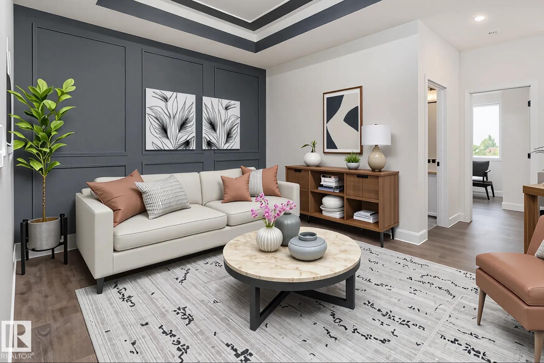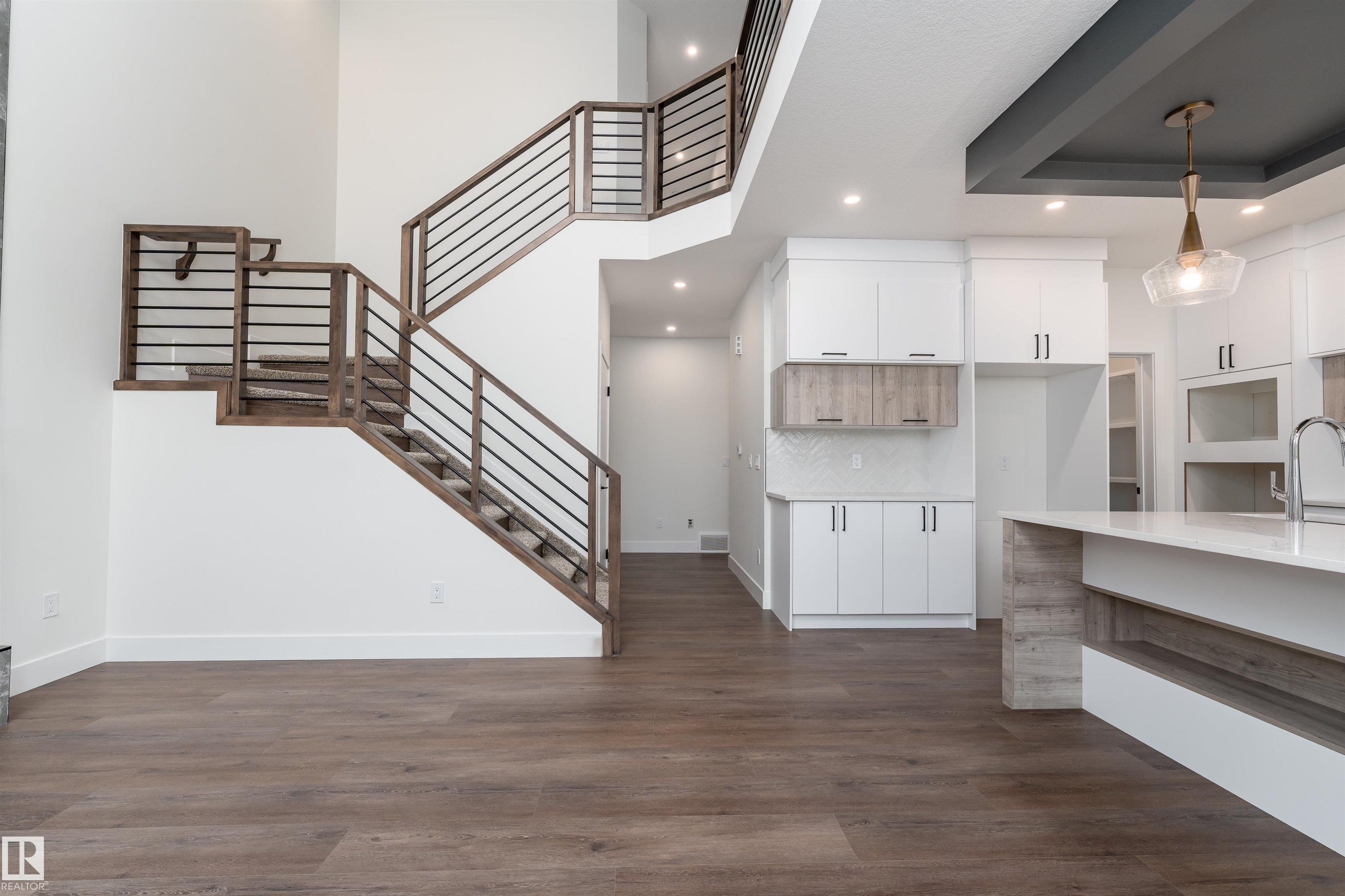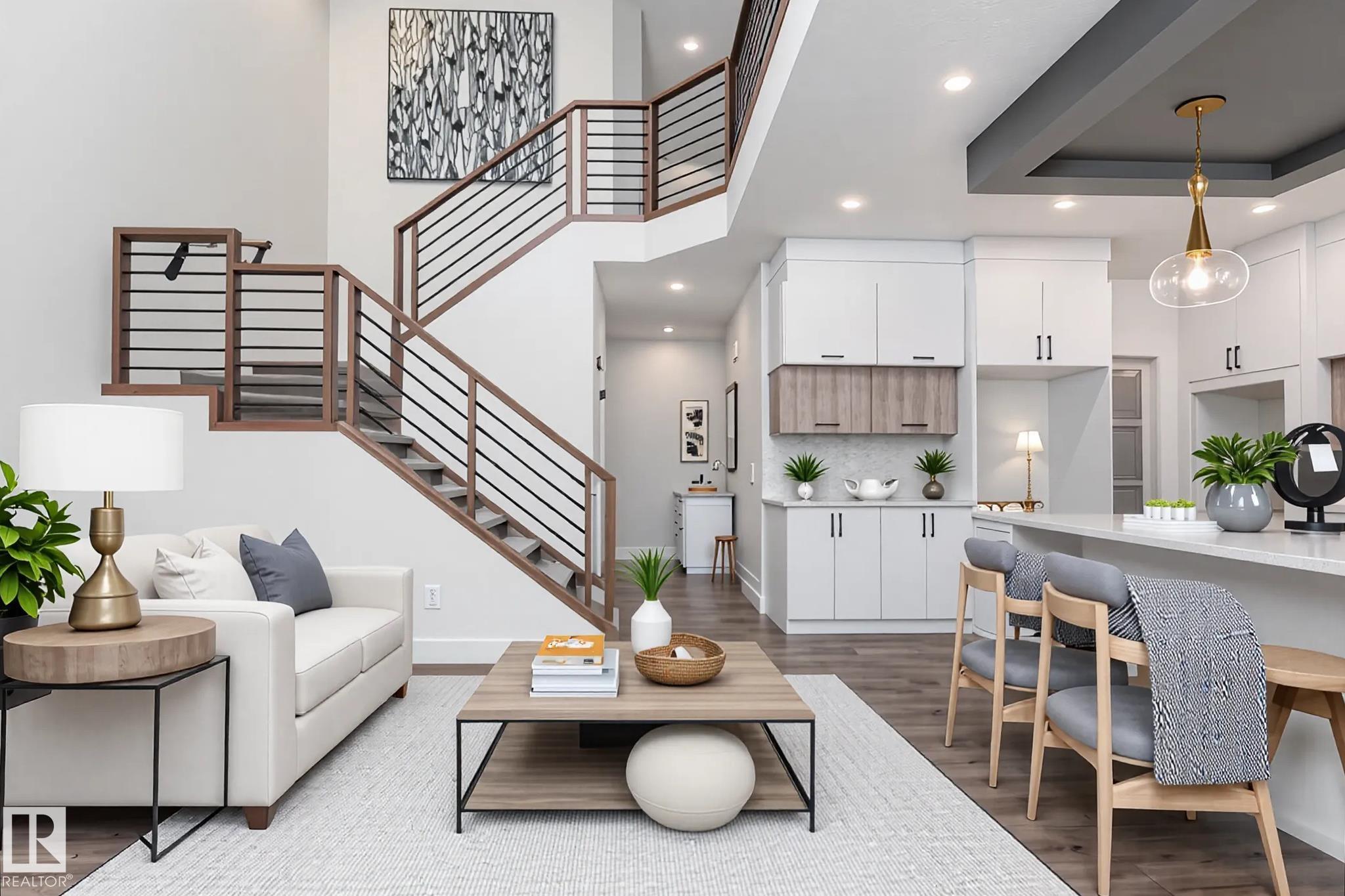 Step into luxury in this brand new, never occupied 2,150 sq ft 2-storey offers a walkout basement, separate entrance, and oversized 3-car garage. Soaring ceilings and an open-concept layout showcase a bright white kitchen with a showpiece island, walk-in pantry, and a dining area surrounded by windows with balcony access. The living room features a dramatic floor-to-ceiling tiled fireplace, while a main floor bedroom and 2-piece bath add convenience. Upstairs, the primary suite shines with a textured accent wall, spa-inspired ensuite with double sinks, soaker tub, stand-up shower, and a walk-through to a spacious walk-in closet. Two more bedrooms, a 3-piece bath, upstairs laundry, and an open family room complete the level. The walkout basement offers potential for a suite or custom design, and the oversized 3-car garage easily fits RVs, trucks, or a lift. Close to Gibbons Golf & Country Club, Oliver Park, and Gibbons Town Centre, this home is the perfect mix of elegance, function, and lifestyle.