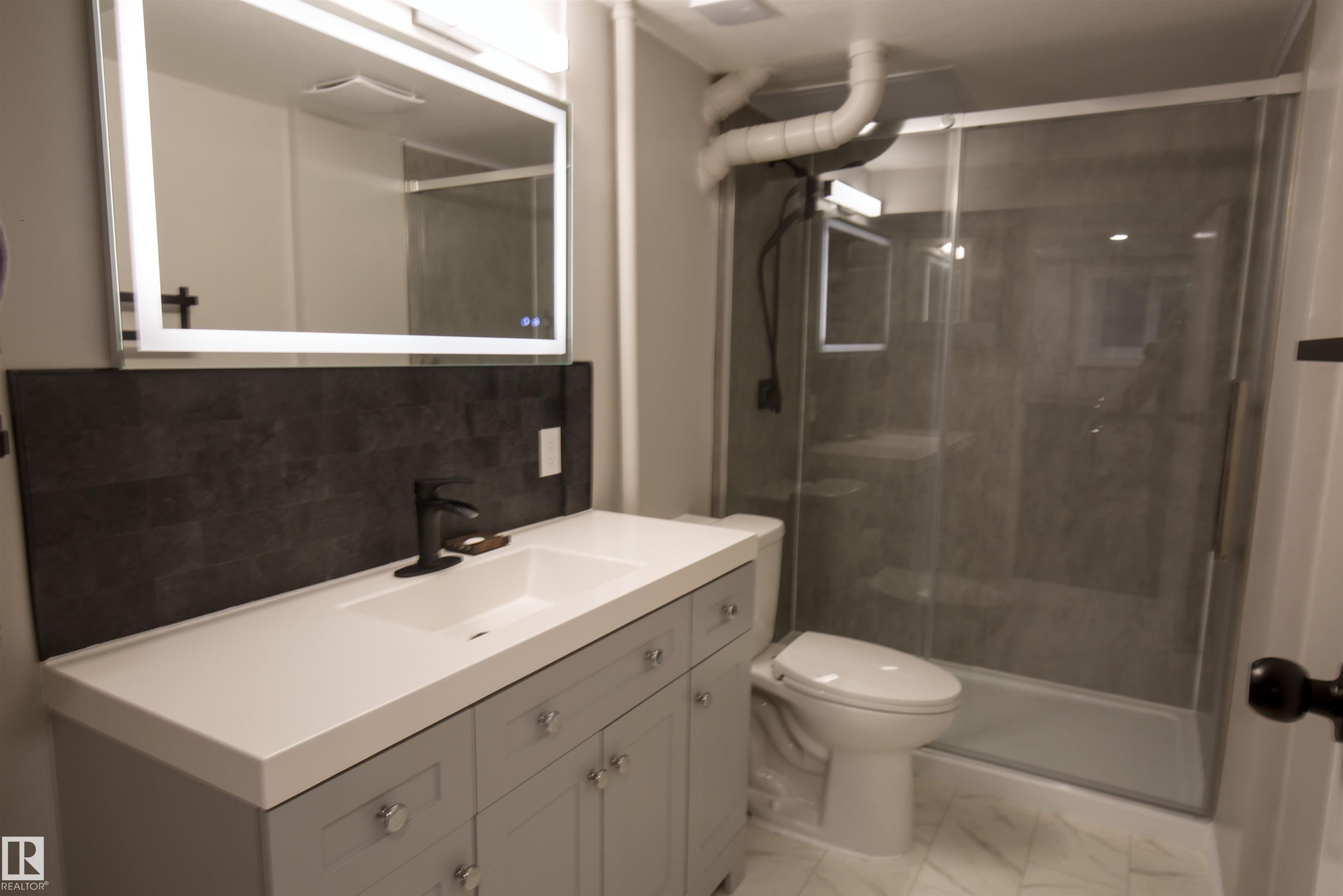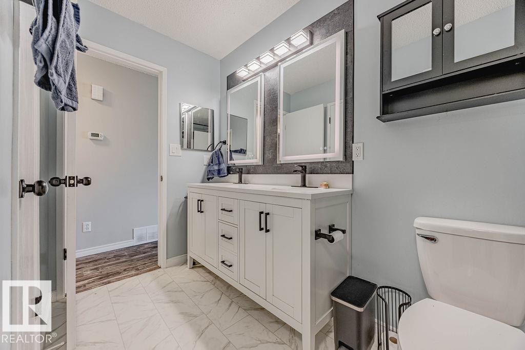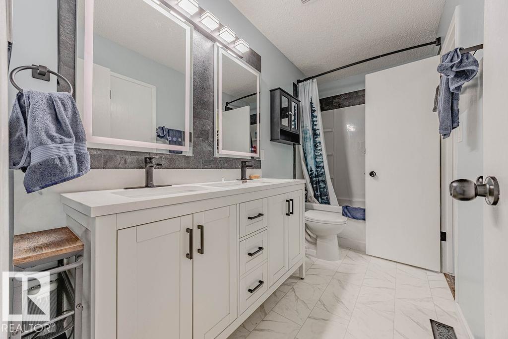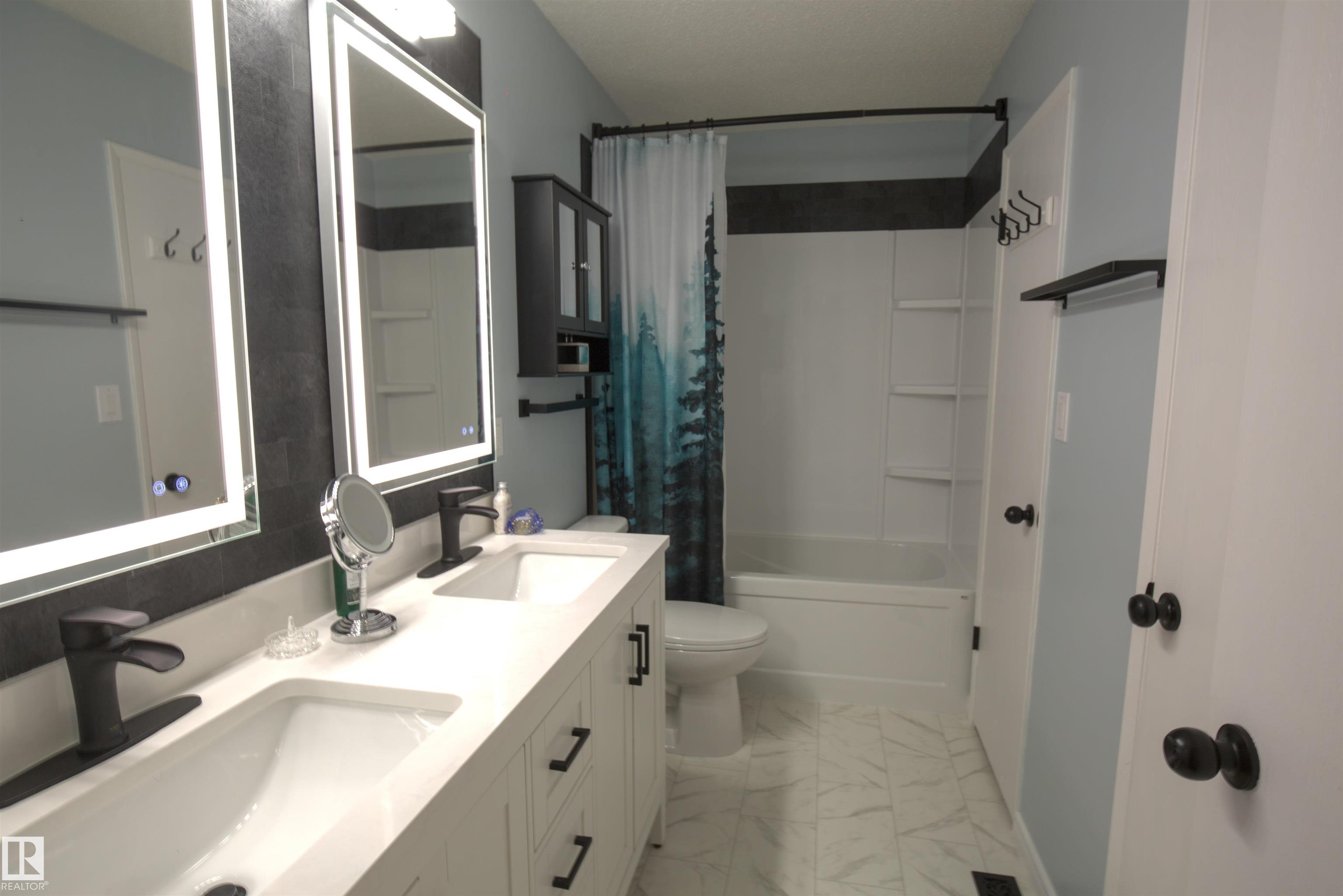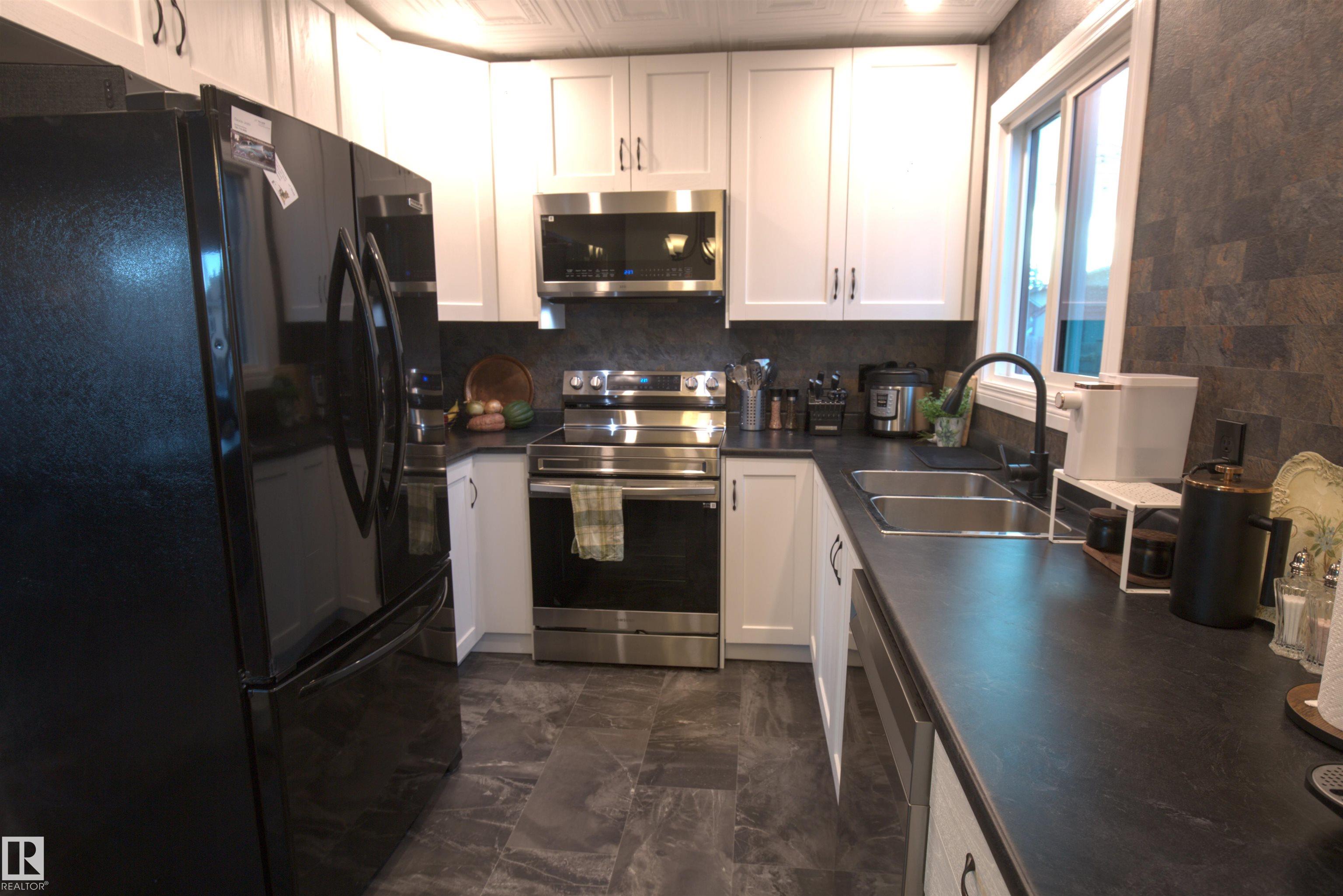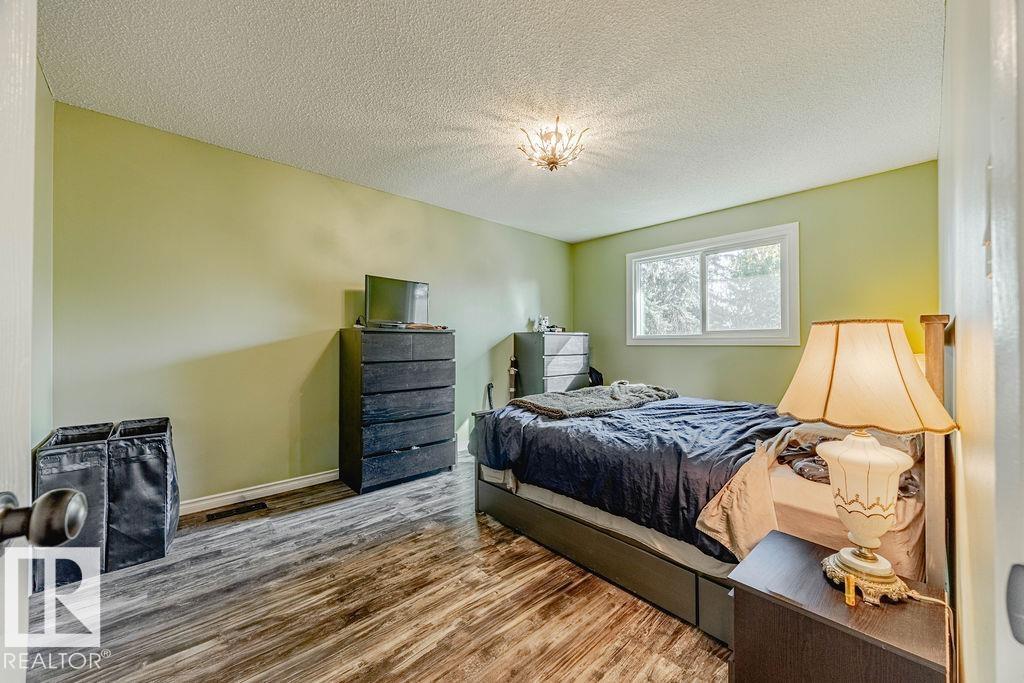 BACKS SOUTH ONTO A PARK WITH PLAYGROUND! This spacious and fully upgraded 4 bedrooms, 2 bathrooms raised bungalow is ideally situated in a quaint family-friendly neighbourhood only a block from schools and Spruce Grove?s largest park system. Step inside to find a bright living room with a large picture window and a WETT-certified wood-burning fireplace. The brand-new kitchen features stainless-steel appliances, a vented over-the-range microwave, and garburator. The main floor boasts two bedrooms including a generous primary suite with walk-through closet, and a stunningly redone 5-piece bathroom complete with twin sinks, quartz vanity, and lighted mirrors. The downstairs is perfect for children, offering two additional large bedrooms, a huge family room, a new 3-piece bathroom with luxurious 5ft shower, and new washer/dryer with sink. Other upgrades include A/C and furnace, upgraded plumbing so you won't be scalded in the shower, and Energy Star certified windows and doors