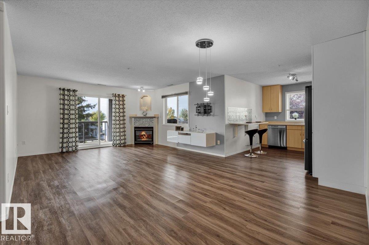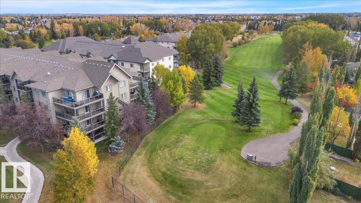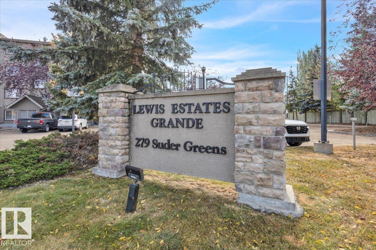 A perfect blend of class, comfort, and spaciousness, with MILLION DOLLAR, 17th HOLE VIEWS from your WRAP AROUND BALCONY. Welcome to Grande Lewis Estates. MOMENTS off the Henday or Whitemud, with all shopping and amenities right down the road. With 2 PARKING STALLS (one UNDERGROUND w STORAGE, and one right outside the unit!) this unit is in the HEART OF LEWIS ESTATES and is LITERALLY ON THE GOLF COURSE, and 4 units away from ELEVATOR or stairwell! Meticulous and lovingly maintained over the years, and you will see that throughout. UPGRADED VINYL PLANK and carpet and FRESHLY PAINTED. UPGRADED APPLIANCES- FULL SIZED washer and dryer, and full BLACK STAINLESS appliances throughout kitchen w water and ice from fridge! Enjoy quiet evenings in front of your GAS FIREPLACE while admiring Golf Course Views! Temperature won?t be an issue in summer either, as the unit comes with AC. Massive social room as well as a gym in the building. You deserve the tranquility and sophistication of golf course living.