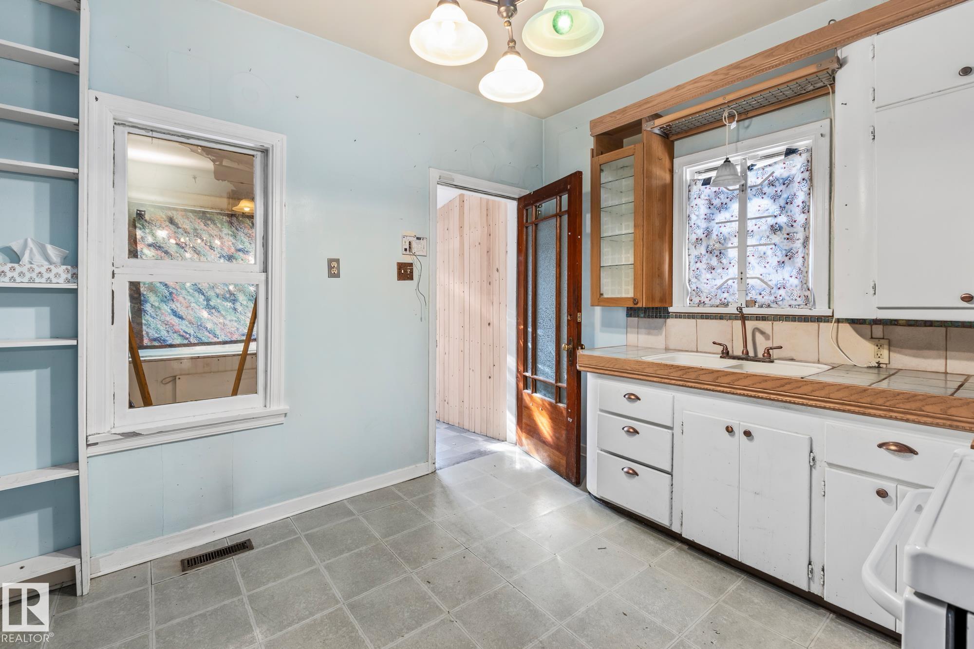 Great potential and prime location! This 1.5-storey, 865 sq ft home offers character, charm, and plenty of opportunity for those looking to invest or personalize their next property. Featuring original hardwood floors, solar panels, and a layout ready for updates and vision. Situated on a 34.6? x 124.8? lot, this property offers options for renovation, redevelopment, or long-term investment. The private, treed yard and quiet street close to a green space add to the appeal, along with a newer oversized single detached garage featuring attic storage and 9 x 19 attached workshop. Conveniently located near the Italian Centre, Commonwealth Stadium, Royal Alex Hospital, and LRT, this central spot offers quick access to downtown and strong future potential. Ideal for first-time buyers, renovators, or investors seeking value in an established community.