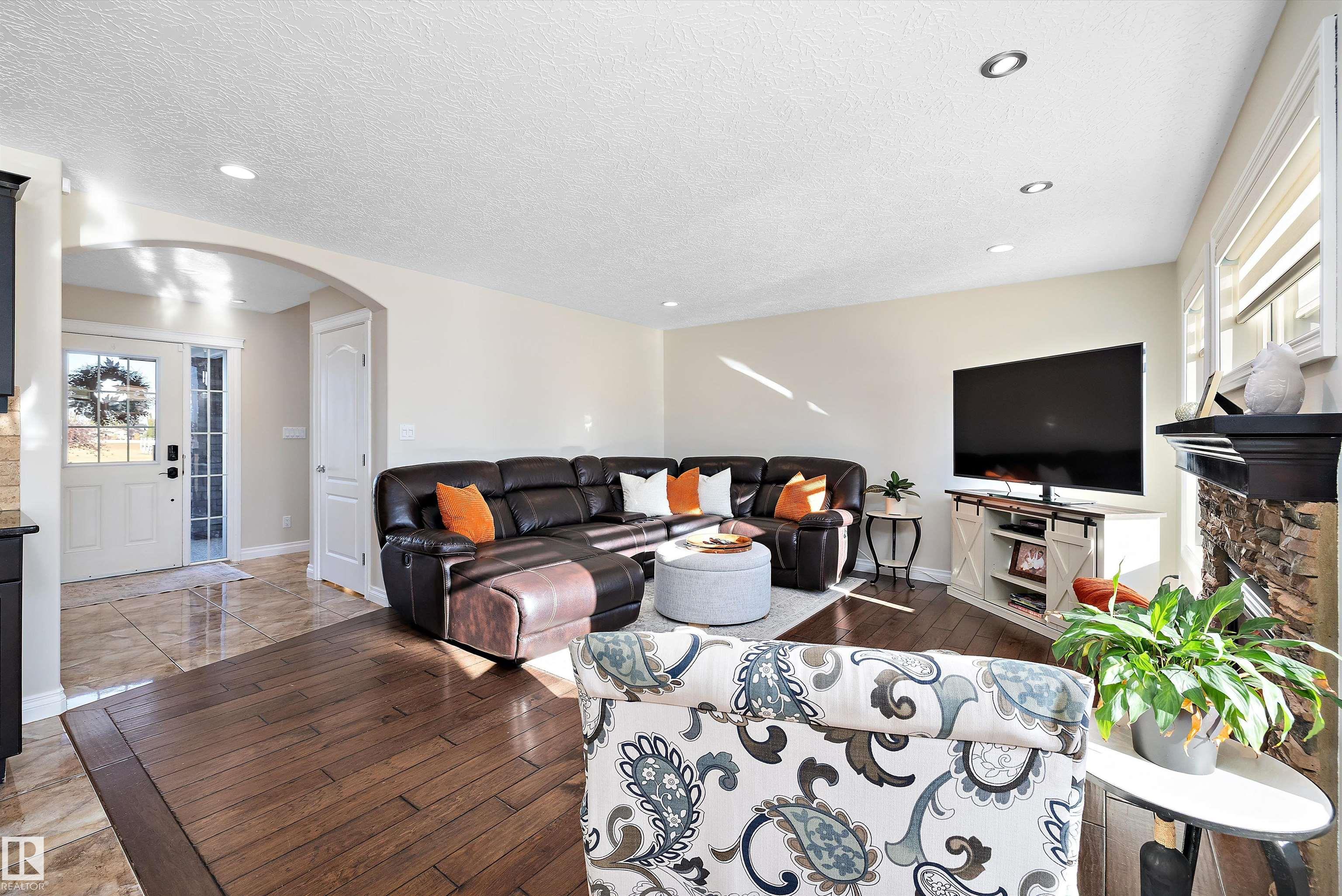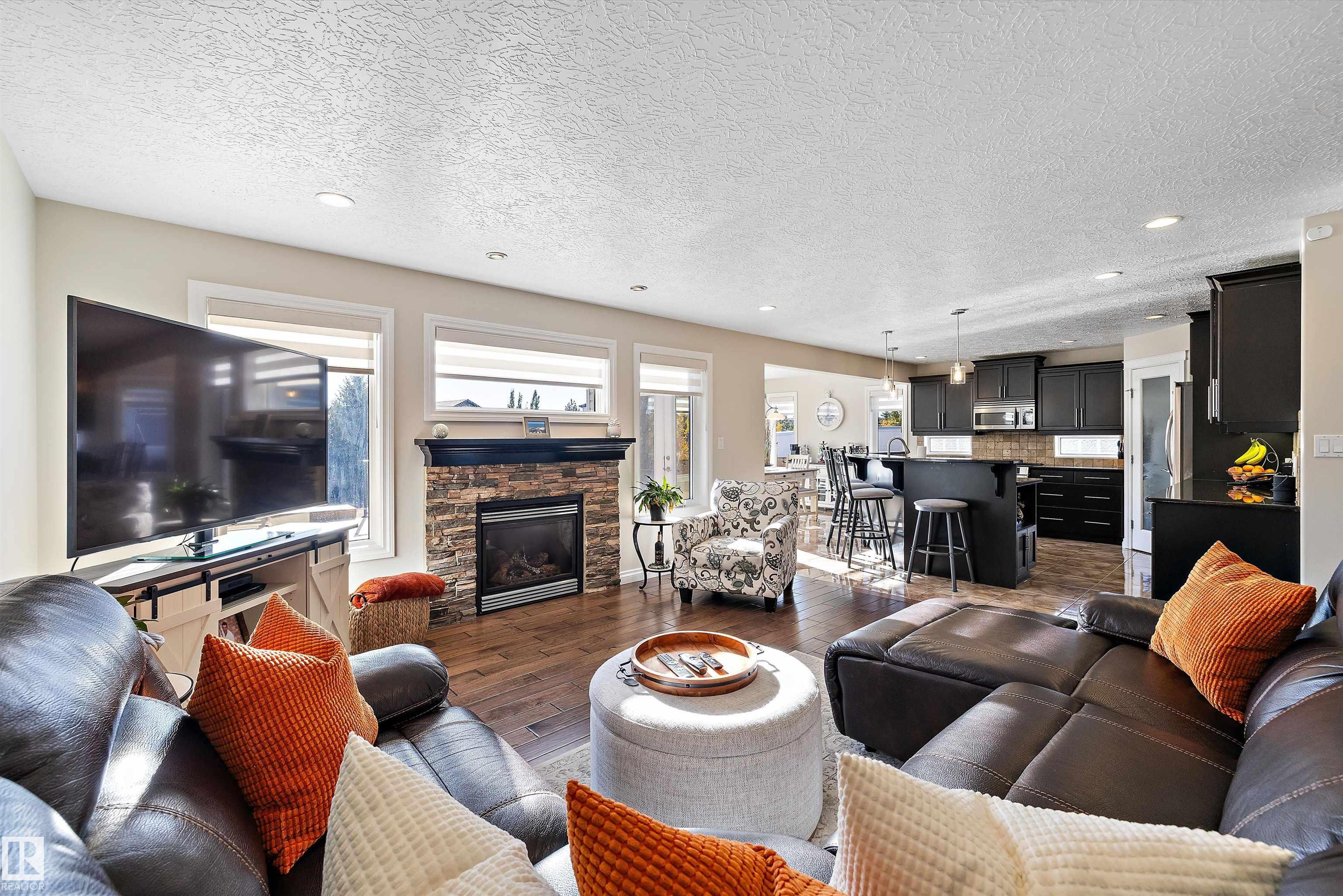 Welcome to this beautifully finished home showcasing quality craftsmanship and exceptional value throughout. The main floor offers a bright open layout with elegant engineered hardwood and ceramic tile, a stylish kitchen with granite countertops, and stainless steel appliances. Upstairs features a spacious bonus room with a cozy gas fireplace and a luxurious 5-piece primary ensuite. The basement is perfect for entertaining, complete with a bedroom, 3-piece bath, laminate flooring, wet bar with beverage cooler, and another gas fireplace. A hidden bonus room adds versatility?ideal for a private wine cellar, gun room, or extra storage. The triple attached garage is heated, insulated, and finished with laminate tile and built-in cabinets. Enjoy outdoor living on the large deck, perfect for family gatherings or relaxing evenings. Additional highlights include an on-demand hot water system, water softener, air conditioning, and all window coverings. Don?t miss this opportunity!