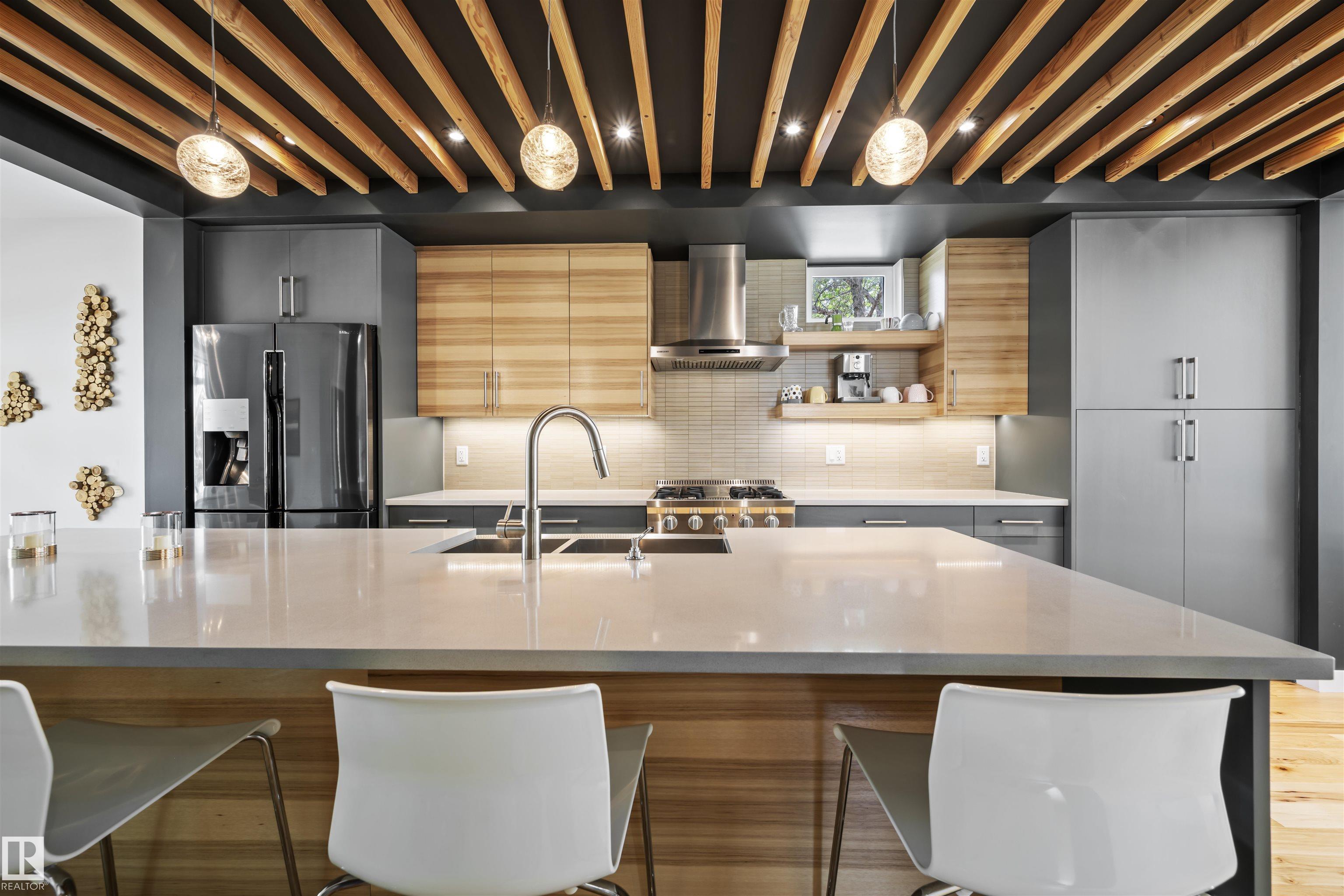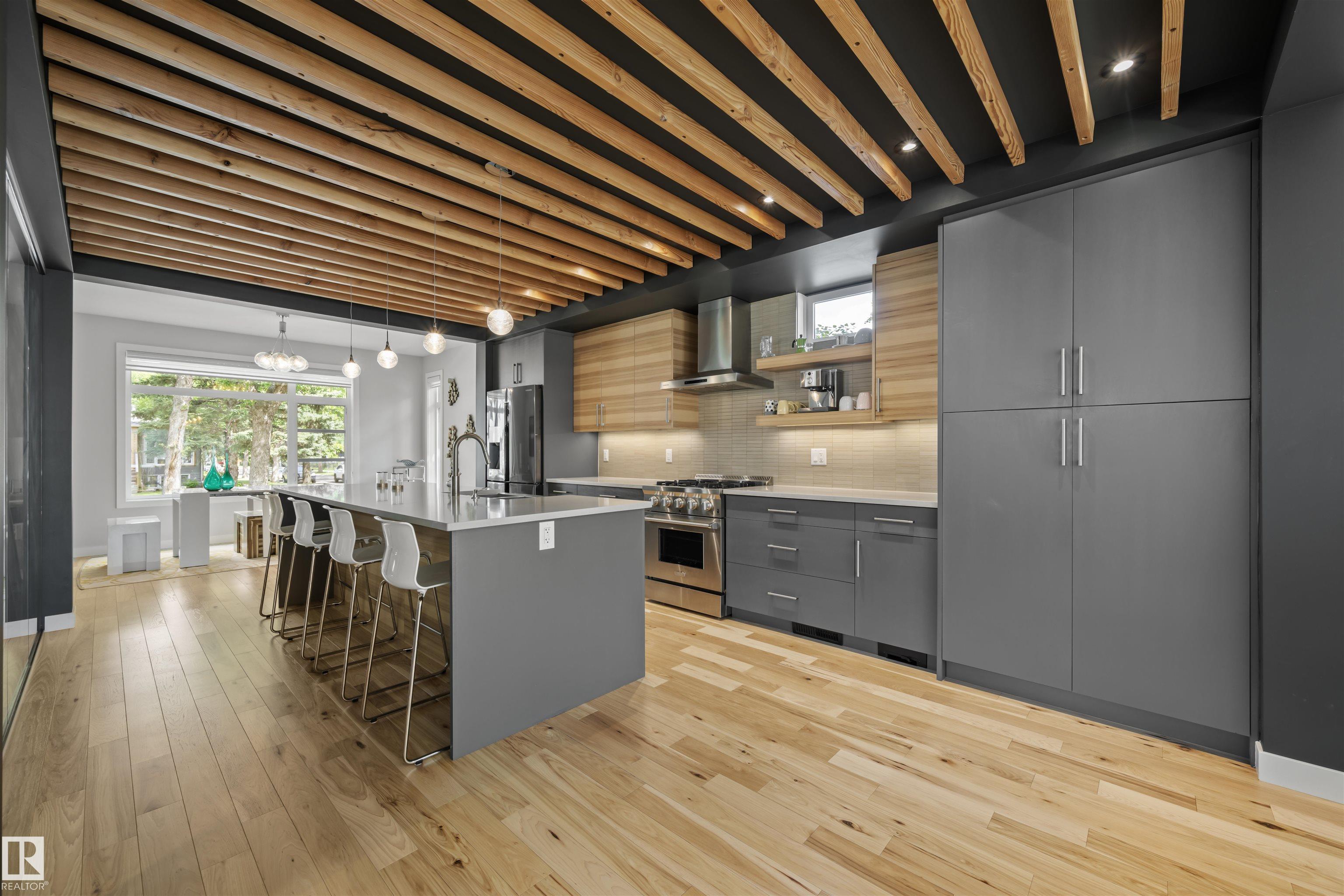 In a world of increased density, this wonderful home has a FULL LENGTH driveway with parking for 5 vehicles! Immaculate sq ft two-storey on a full-size lot with a fully finished basement and a legal one-bedroom garage suite?ideal for extended family or rental income. Thoughtfully designed with classic charm and modern touches, this 4-bedroom home (3 up, 1 down) features hickory flooring, a chef?s kitchen with quartz island, 5-burner gas stove, and high-end appliances. The open-concept main floor includes a spacious dining area and family room that opens to a sunny south-facing yard with an oversized deck. Upstairs offers walk-in closets in every bedroom, a stylish 4-piece ensuite, upstairs laundry, and a second full bath. The basement adds a large rec room and guest bedroom, while the garage suite has a private entrance, full kitchen, laundry, and 5 appliances. Finished landscaping, a large mudroom, custom built-ins, and 200 Amp service to the house complete this one-of-a-kind home!