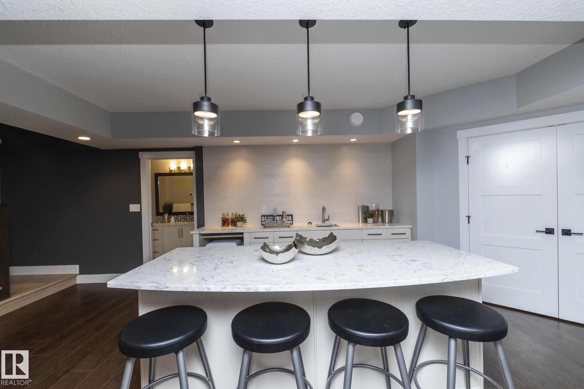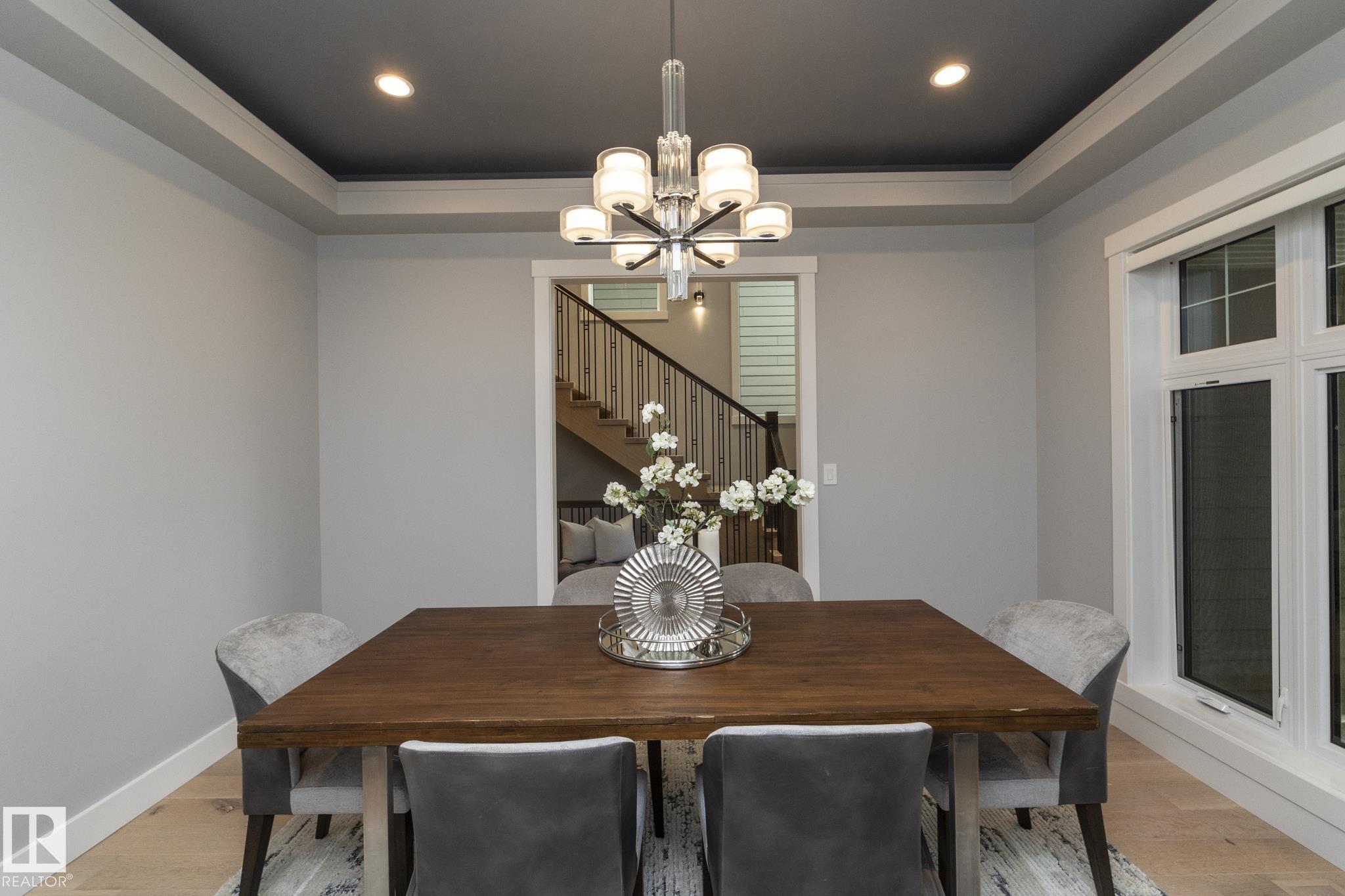 Elevate your lifestyle with 7549 May Common! Nestled against a captivating ravine, this home is a showstopper at every turn. Over 3500 sqft + FF BSMT, it's a masterpiece boasting 4 beds & 3˝ baths. Unleash your inner chef in the gourmet kitchen, while the private dining room adds a touch of elegance. Cozy breakfast nook, living room w/ FP, office, mudroom, & powder room. Upstairs features a bonus room, the main bath and 3 bedrooms. The primary is a haven of luxury w/ walk-in closet and lavish spa like 5pc ensuite. The FF BSMT is an entertainment haven with a 4th bed, 3pc bath, wet bar, family room, rec room & golf simulator room! Triple car garage adds convenience & backyard flows to ravine-side walking path. Top-notch appliances, granite counters, eat-in island, custom cabinetry, porcelain tile & engineered wood flooring. The exterior is stone & hardie board. Craftsmanship shines w/ meticulous attention to detail, setting this home apart. Nearby amenities, schools & Terwillegar Rec Centre.