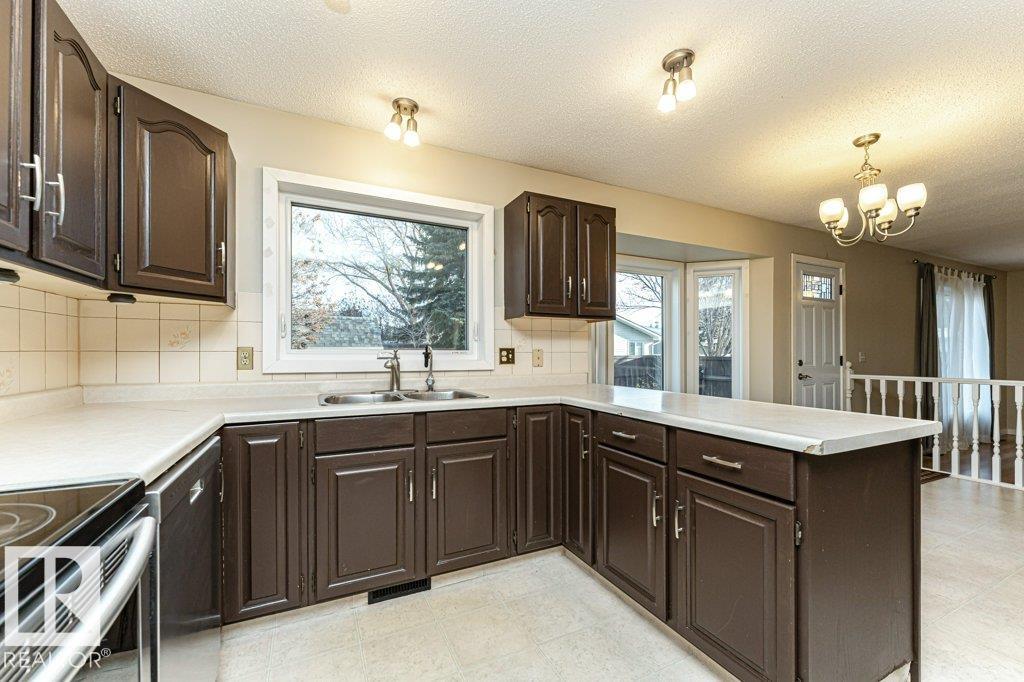Welcome to this beautiful 5-bedroom family home ideally located on a quiet cul-de-sac in Fort Saskatchewan, just steps from schools, parks, and rec fields. The main floor features two spacious living areas, one with wood burning stove, a bright kitchen, dining room, convenient laundry, and a 2-piece bathroom?perfect for busy family life. Upstairs, you?ll find 3 comfortable bedrooms, including a primary suite with a private 3-piece ensuite and 4pc main bath. The fully finished basement adds incredible versatility with 2 additional bedrooms, a second kitchen, 3-piece bathroom, and separate laundry?ideal for extended family or guests. Outside, enjoy the beautifully redone exterior, large yard, and heated oversized garage that fits two trucks, plus RV parking. A/C (2016), hot water tank (2016). With a fresh coat of paint this home offers space, comfort, and flexibility in one of Fort Saskatchewan?s most desirable family-friendly areas!