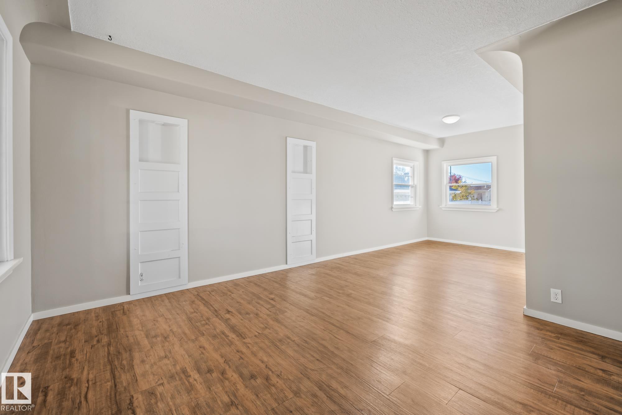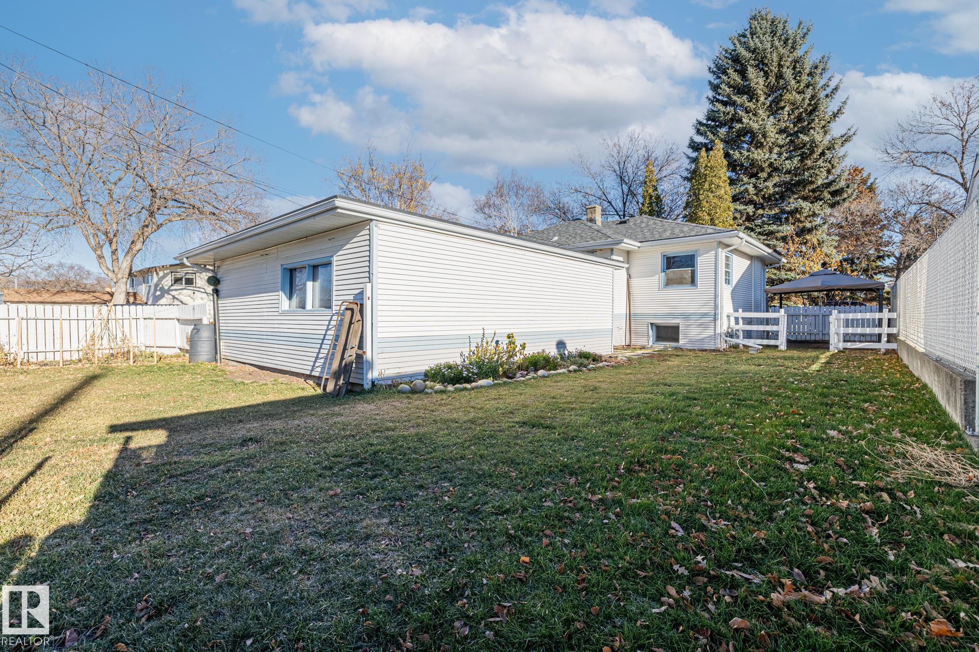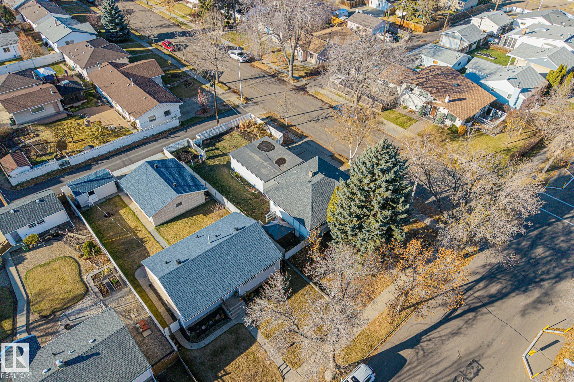 This cozy 940 sq ft bungalow is situated on a large corner lot in mature Beverly Heights, known for its large trees and wide streets. Features include an open floor plan and has been recently upgraded throughout. It offers 4 bedrooms (2 up+2 down) and 2 full bathrooms. A separate entrance allows easy access to the basement. The exterior boasts a coveted west-facing backyard designed for entertaining featuring a pergola, vegetable garden, and ample space. Parking includes a double detached garage (with a new flat commercial roof), an additional parking pad, and abundant street parking. Location is everything, with proximity to schools and just minutes from the Edmonton River Valley and Rundle Park, alongside nearby golf courses and a ski hill. A quick trip to Downtown Edmonton, Anthony Henday Drive, and Yellowhead Trail. The corner lot configuration also offers great future development potential. Enjoy one of the city's hidden gems in historic Beverly Heights.