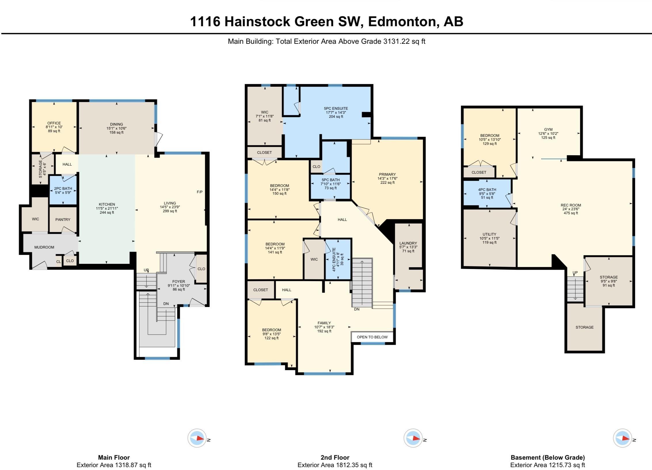 MODERN AND SPACIOUS - this showhome condition, 5 bedrooms and 4.5 bathrooms home with triple tandem garage has it all! Designed with attention to details offers many upgrades - real hardwood floors, oversized windows, extra deep closet space, custom window coverings, and much more. Stunning kitchen offers Ceasarstone countertops, package of upgraded appliances - brand new built-in microwave, built-in oven, gas stove, integrated hood fan. Stylish cabinets and backsplash. Spacious living room open to the kitchen and breakfast nook offers modern gas fireplace. Main floor office/bedroom. Upstairs family room leads to 4 bedrooms, two of them with ensuites, laundry room with plenty of storage space. Primary bedroom spa like ensuite with huge jacuzzi, sinks for her and him, glass facing shower with many shower heads, and walk-in closet. Fully finished basement offers wet bar w/full sized fridge, designated gym, recreation room, bedroom and full bathroom. Walking distance to park, grocery stores, lake, golf.