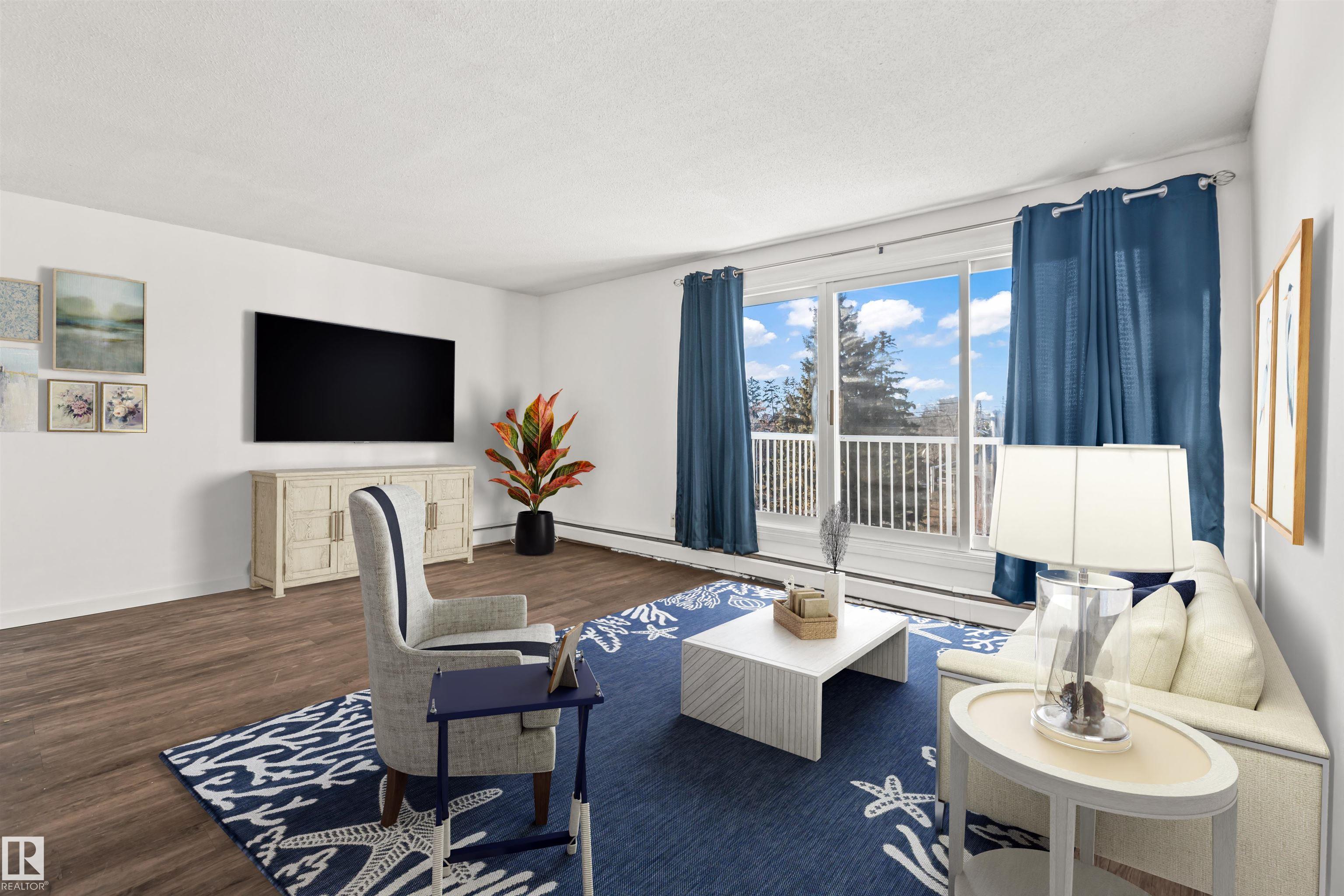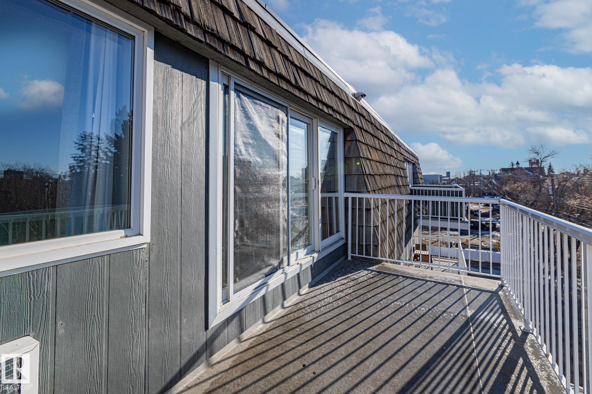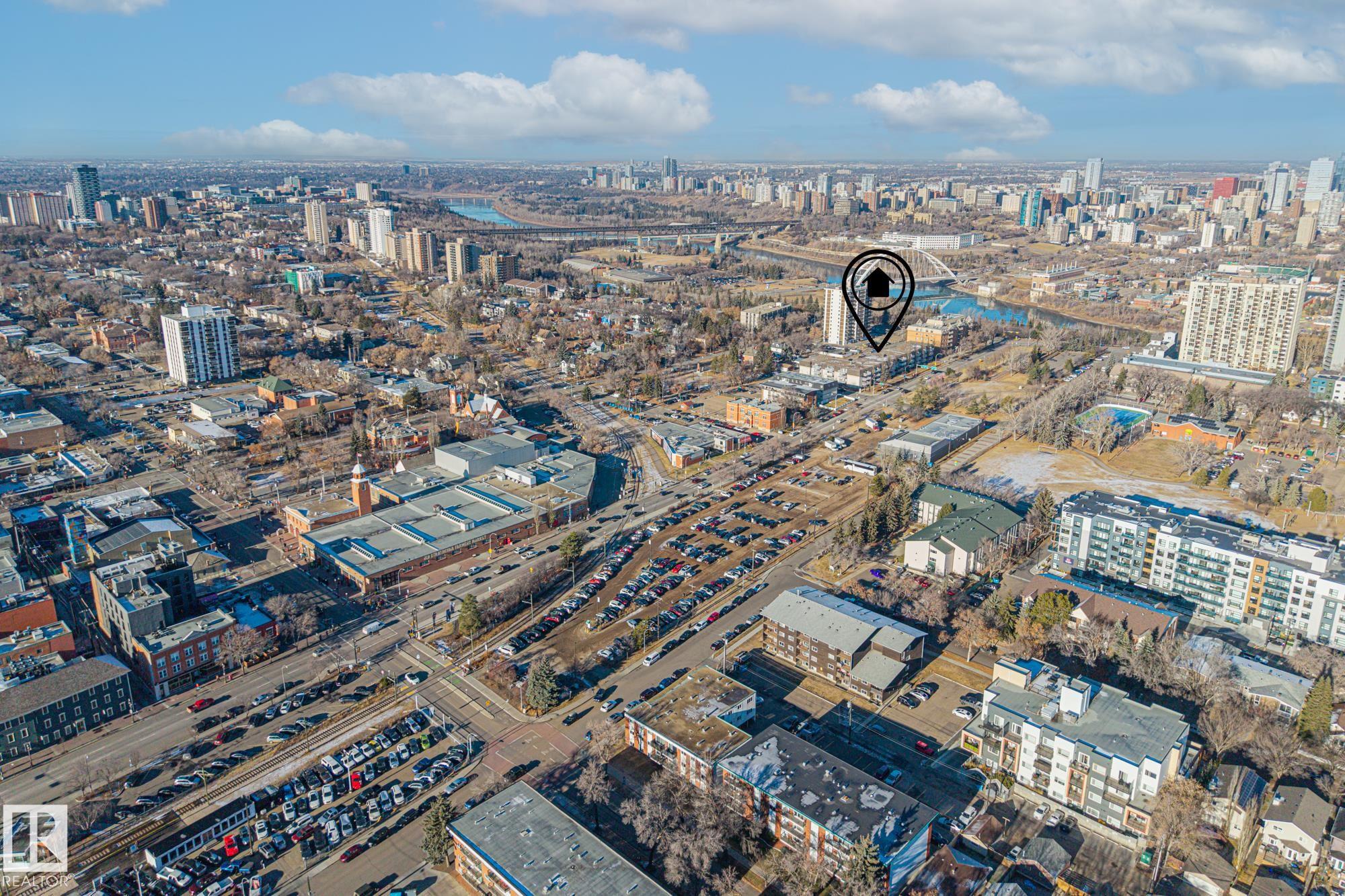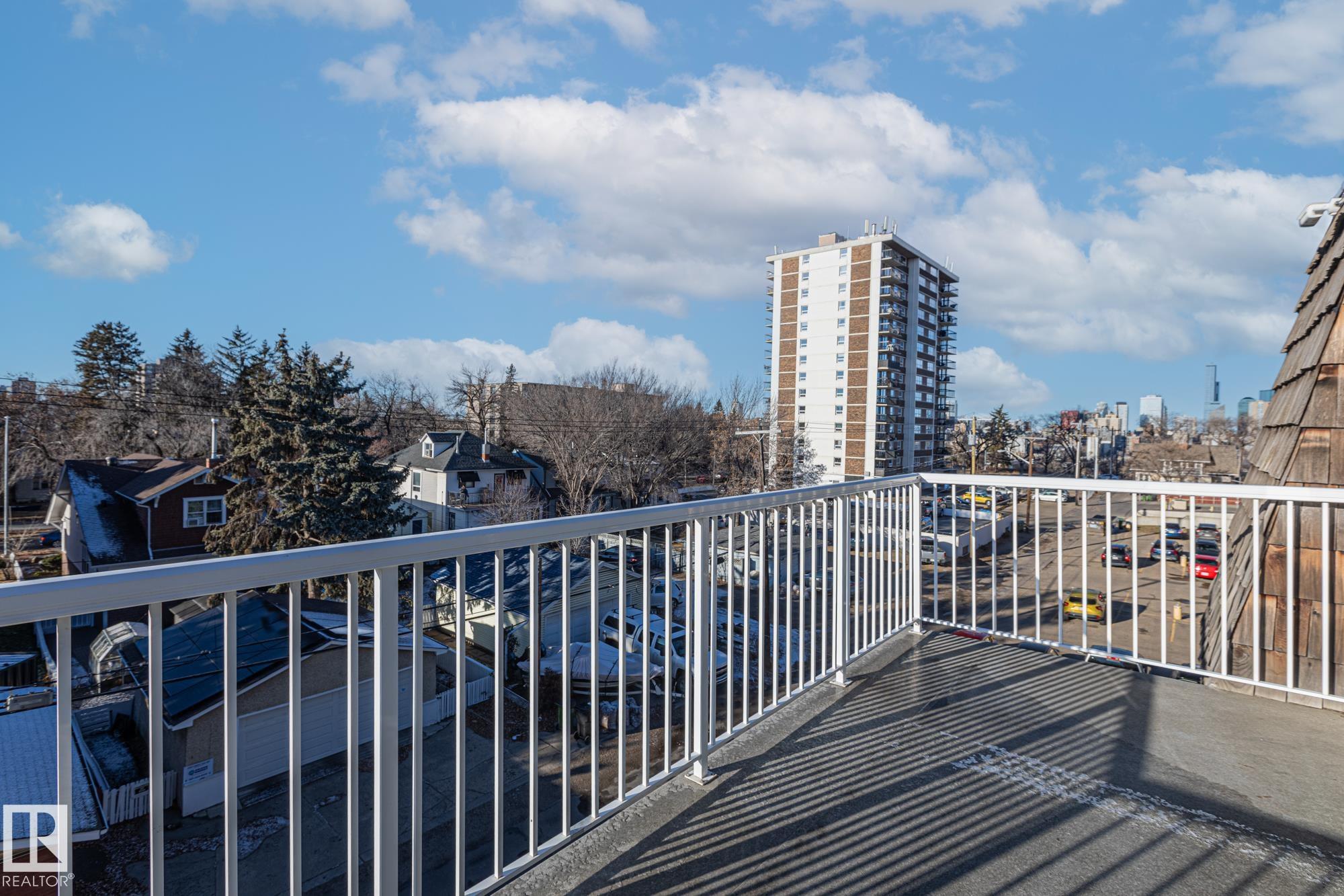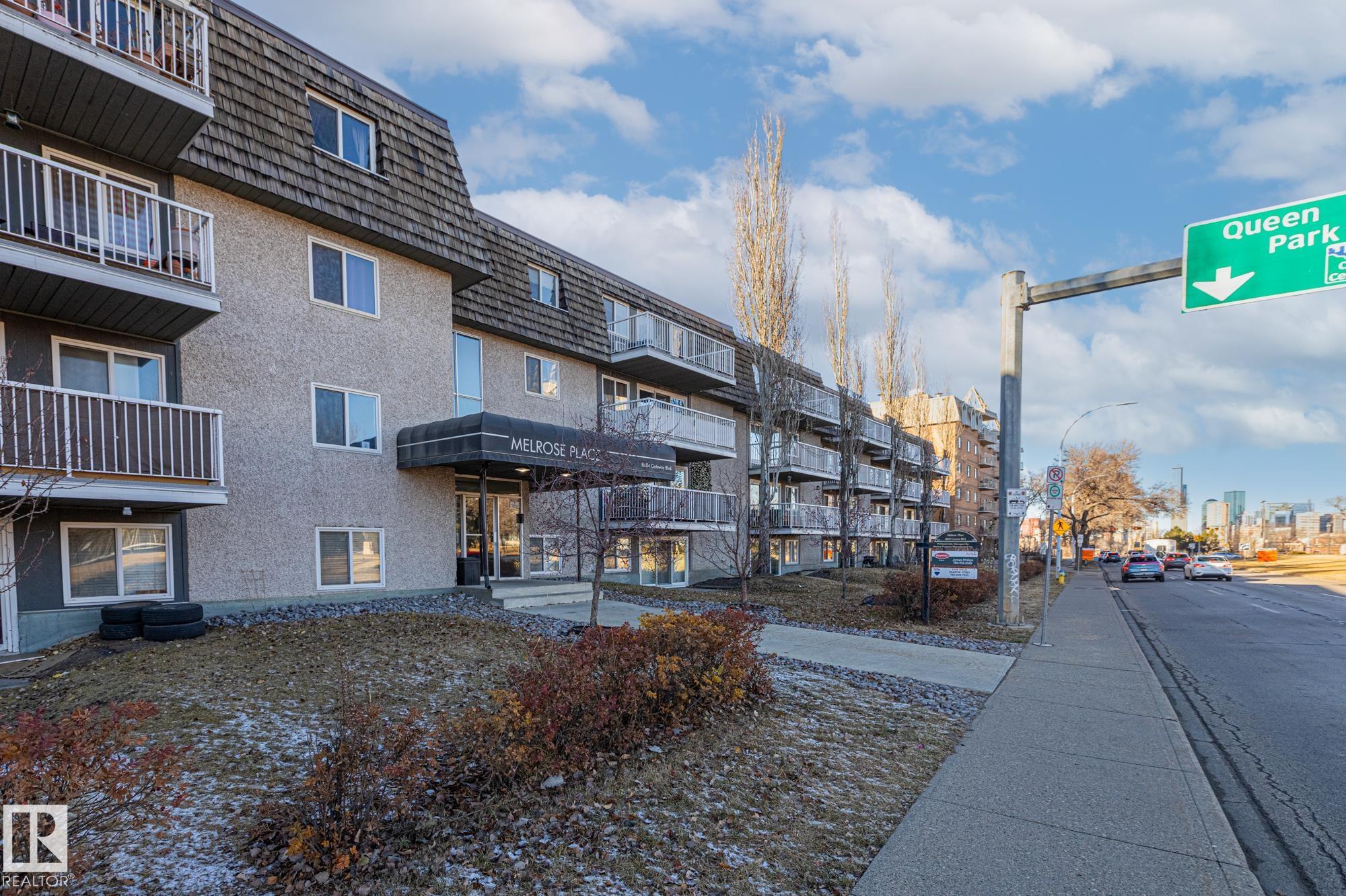 TOP floor unit with west facing windows and balcony. Right in the heart of Strathcona. Known for hot spots like Whyte Ave, River valley, Old Strathcona Farmers Market and much more. Whyte Ave host several annual festivals; Ice on Whyte, Art Walk, Fringe. etc. Love where you live. Explore amazing restaurants, cafes, pubs and shops all just steps away. This quiet TOP floor corner unit boast a bright living, dining and kitchen area. Recently painted in a neutral colour ready for your personal touches. Well sized master bedroom with full closet and 4pc bathroom. Large in-suite storage room. Pet friendly building. Laundry is located on floors 2&3. New elevator. Upgraded building fire alarm system. Unit is wired for Fibre optic wifi. 1 parking with additional street parking off 86ave. Take advantage of the bike lanes connecting Strathcona to UofA and downtown. Your best life awaits!