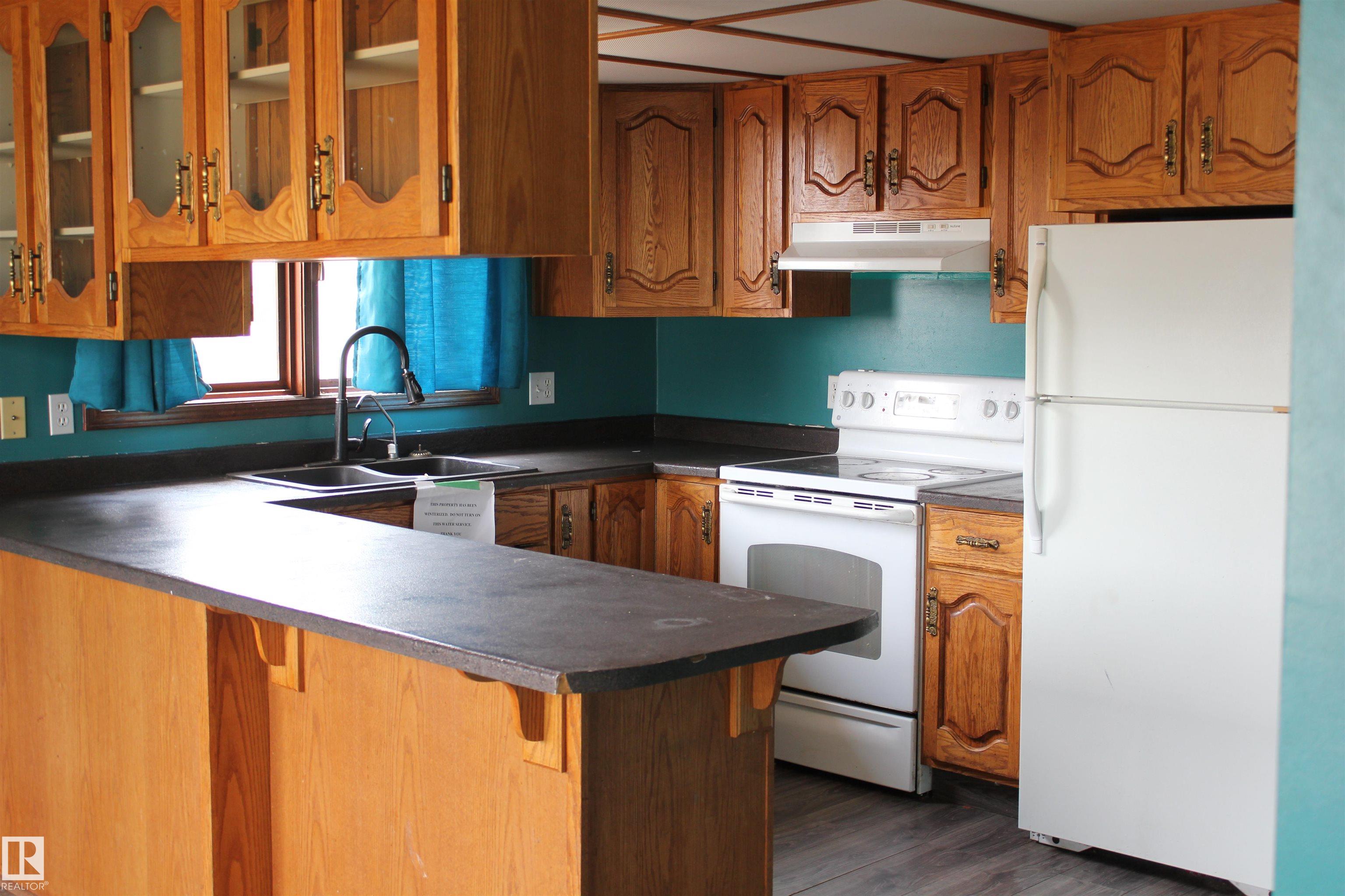 Check this out!! This home is 1143 sqft, built in 1977 and offers 5 bedrooms, 3 baths, bright main floor with large south facing windows, attached single garage and a detached double garage in the back yard. The basement is partially finished and offers a family room, 2 bedrooms, office space, 3pc bath, cold room and the laundry area. There is secure entry to the attached single garage. Off the back door is a large covered deck and the back yard is large - .34 acre, partially fenced and currently consists of a couple sheds and access to the back alley. Lots of potential here and with a little work you could have a very nice family home in a quiet area in Elk Point. This property is within walking distance to the schools, arena, spray park and Pickleball courts. Appliances are included but there's no guarantee that they work.