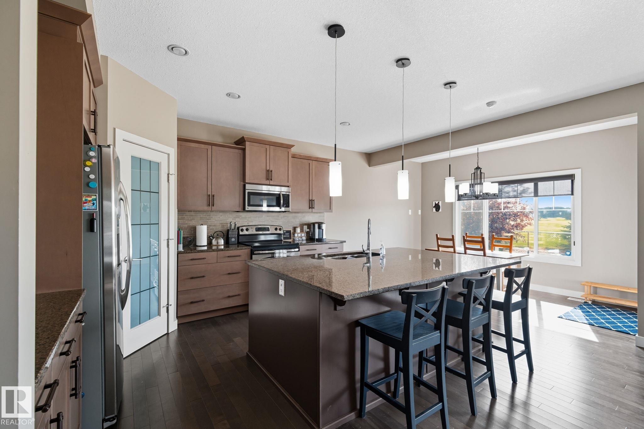 Welcome to this beautiful 5 BED, 4 FULL BATH home offering nearly 3,200 sq.ft. of living space. Located on a quiet CUL-DE-SAC backing onto GREEN SPACE with Summerside's amazing LAKE ACCESS. Built by LANDMARK HOMES in 2012, this home is designed for comfort & functionality with CENTRAL A/C, CENTRAL VAC, BUILT-IN SPEAKER SYSTEM, ON-DEMAND HOT WATER TANK & a DOUBLE ATTACHED (HEATED, OVERSIZED & INSULATED) GARAGE with a SIDE DOOR & an EXTENDED DRIVEWAY. The main floor boasts a BEDROOM, FULL BATH & a bright open layout, while the upper level features a spacious BONUS ROOM, LAUNDRY, & 3 well-sized bedrooms including a relaxing PRIMARY bedroom with 5-pc ENSUITE & WALK-IN-CLOSET. The FULLY FINISHED BASEMENT features a MEDIA ROOM, WET BAR (can be converted into second kitchen in future), additional LAUNDRY, 5th BEDROOM. A FULL BATH provides extra living space for family or guests. Gorgeous landscaped backyard with FIRE PIT & a DECK. Recent upgrades include: Furnace fan (2022), All house siding replaced (2022).