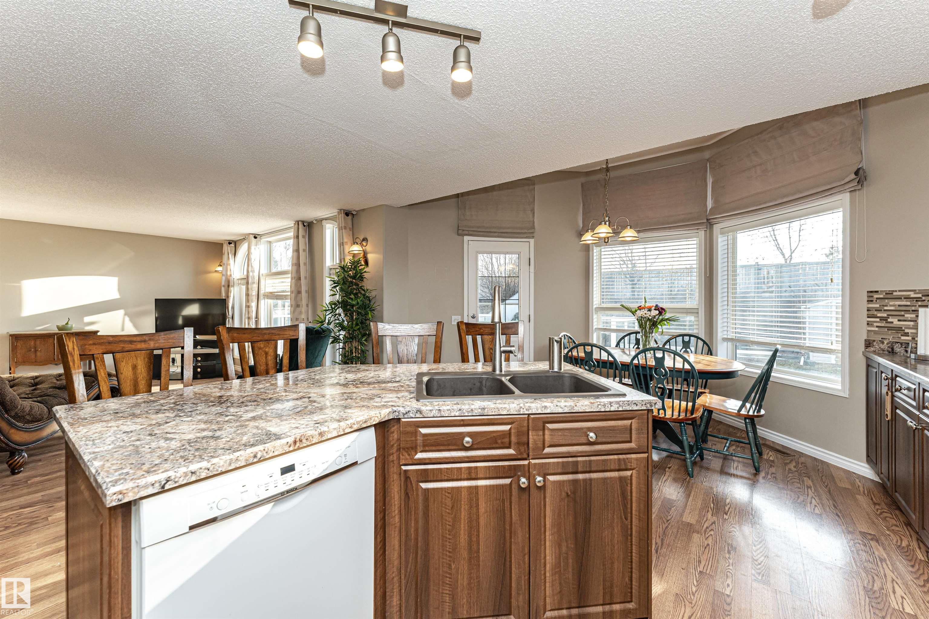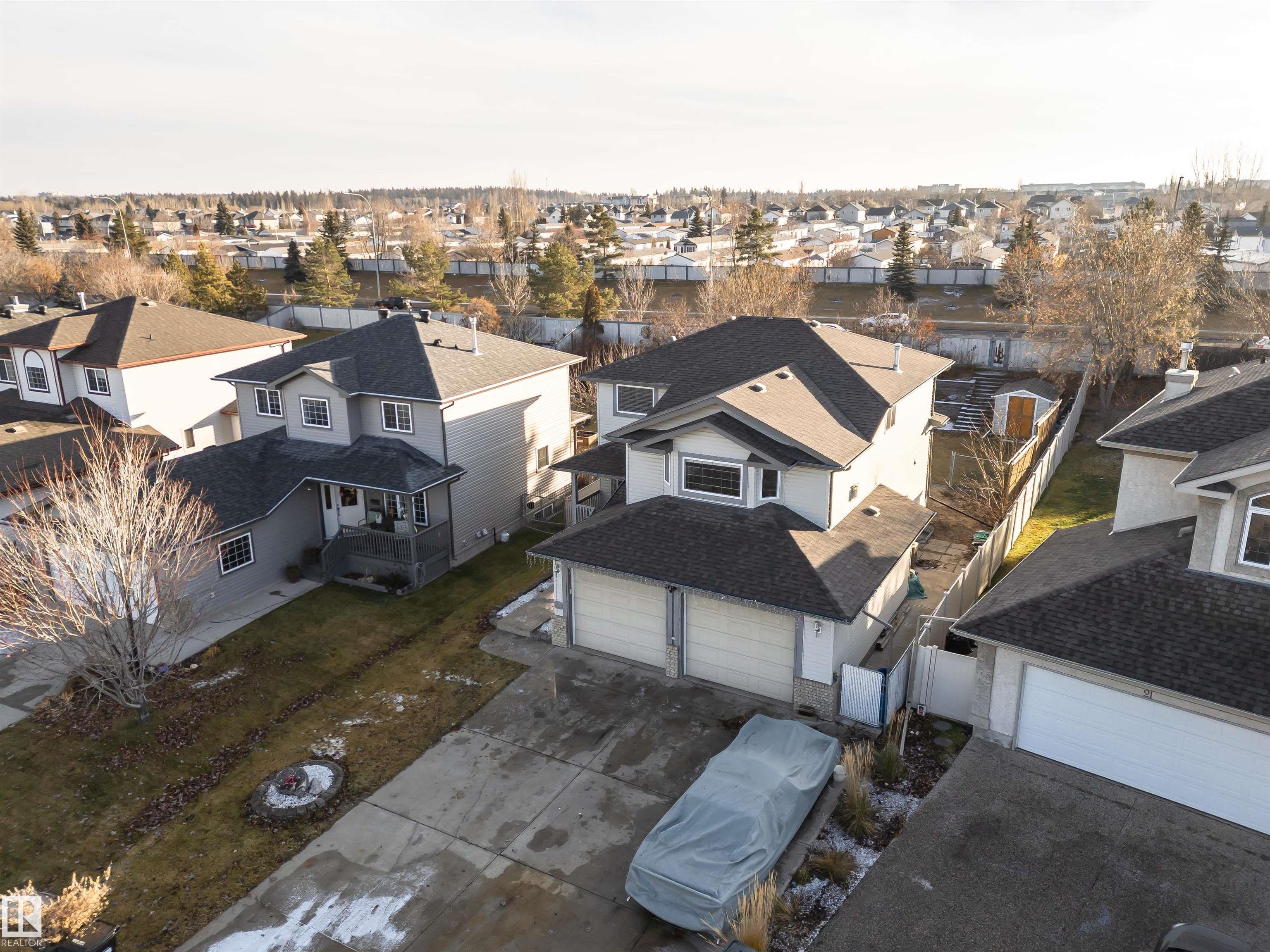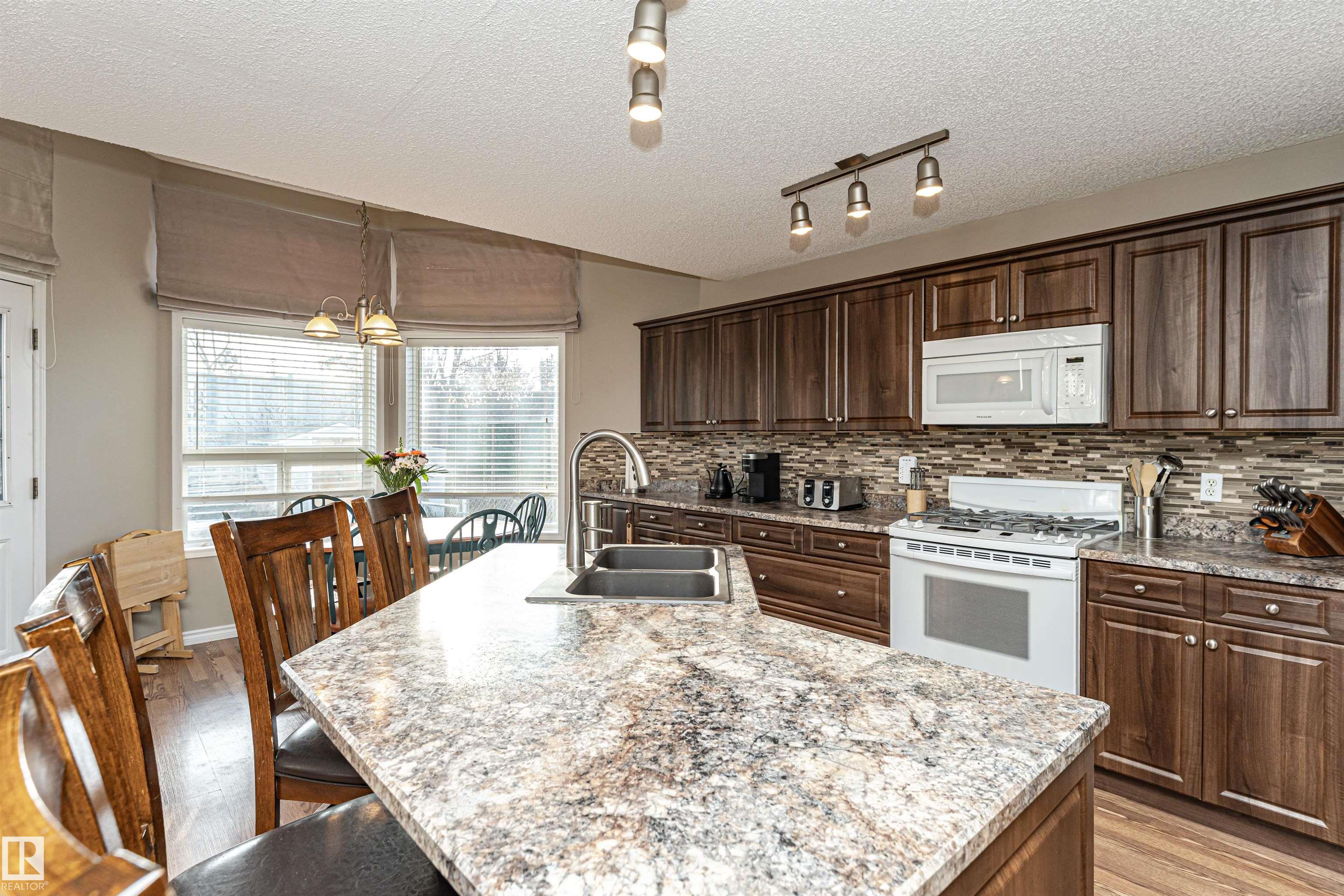 Stunning 2 story home with A/C & OVERSIZED, HEATED 24'x26' Garage on a huge SOUTH facing Pie lot (7,280 sq'). Extra RV/Boat parking at front. Over 2,600 sq' developed with laminate flooring thru-out, 3+1 Bedrooms, 3.5 Baths and a F/Fin Basement. Enjoy a huge deck with glass railing & gas BBQ hookup and a gorgeous landscaped flat back yard with Allan Block terracing at rear. Flowing, open main floor with high end laminate & large windows to yard. Gourmet extended kitchen features abundant cabinets, pot drawers, large island w breakfast bar & sink, walk in pantry, tiled backsplash, gas stove & new stainless steel fridge. The vaulted dinette has a garden door to deck. Upper floor features a vaulted Bonus room with window seat & gas FP. The primary Bedroom includes a walk in closet with room for a king-size bed plus a luxurious spa with jetted tub. The Finished Basement has a 4th Bedroom, 3pc Bath, Family Rm, & lots of Storage. New shingles 2020. Close to Tri Leisure Ctr, parks, schools, transit & shopping.