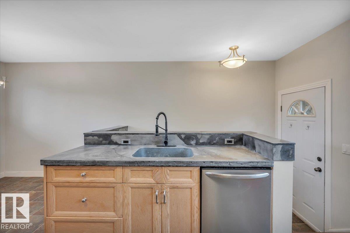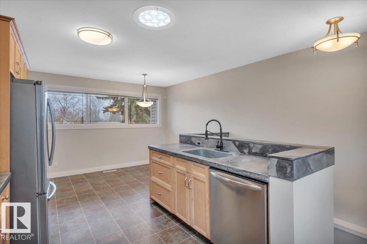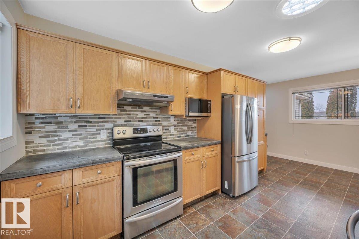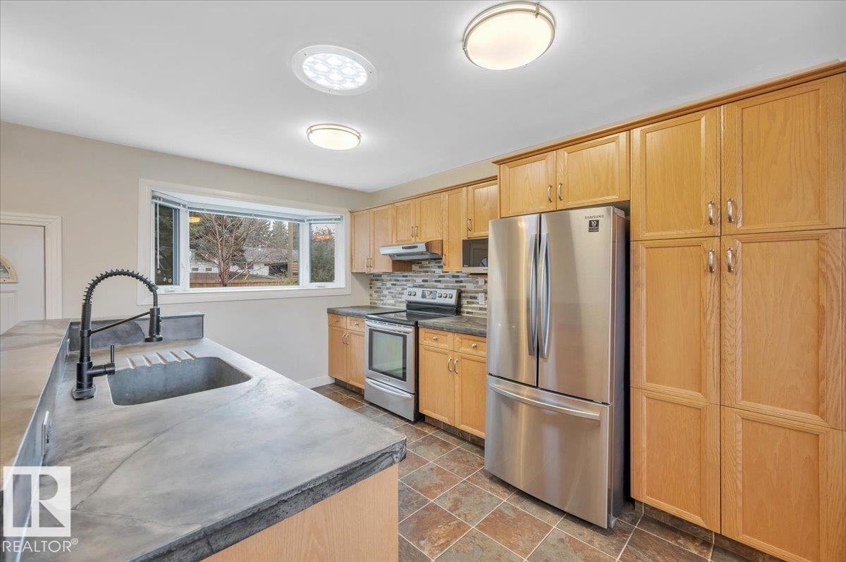 Beautifully maintained bungalow on a quiet Sherwood Heights cul-de-sac. Front patio leads to a bright entrance and hardwood floors in the living room with a large bay window. The kitchen offers custom concrete counters, oak cabinets, pantry, newer appliances, and a dining area. The large primary bedroom includes a 2-pc ensuite, plus a second spacious bedroom and an updated 4-pc main bath. NEW solar tubes add great natural light. The finished basement features a big rec room, 3rd bedroom, flex area, 3-pc bath and plenty of storage. The fenced, landscaped yard has mature trees and a stone patio. Major updates: new high-efficiency furnace (2020), new hot water tank (2020), roof shingles (2018), insulation upgrade (2018), electrical service upgrade (2018), newer windows, modern fixtures throughout. Close to parks, schools, shopping, Festival Place, Kinsmen Pool and Broadmoor Park. Move-in ready