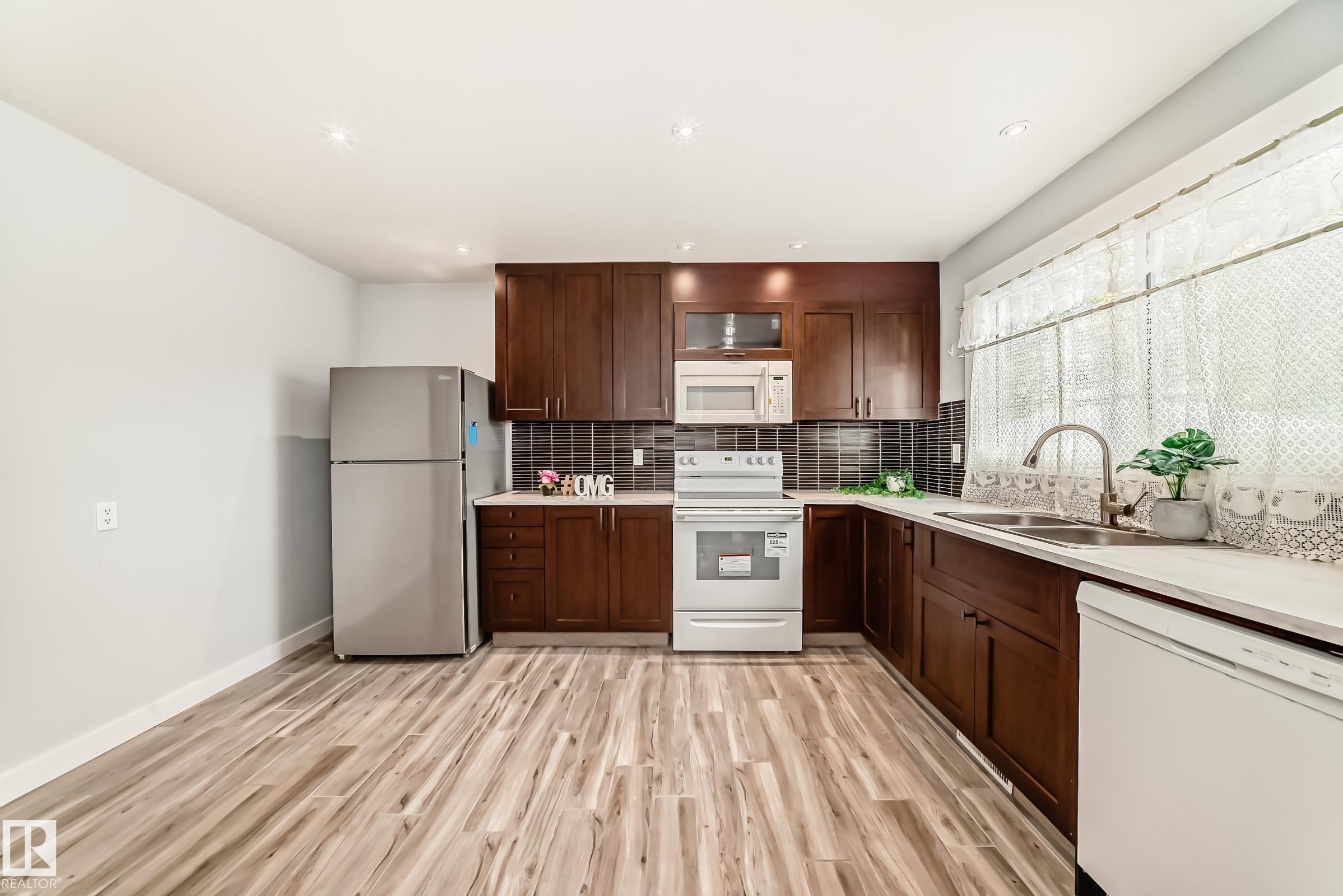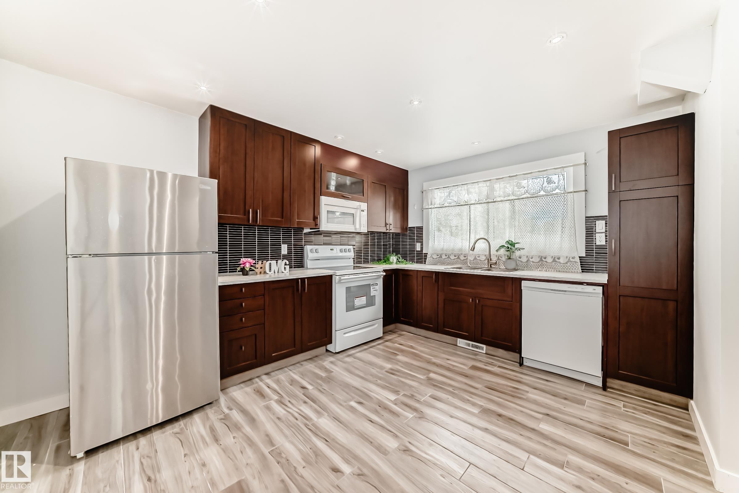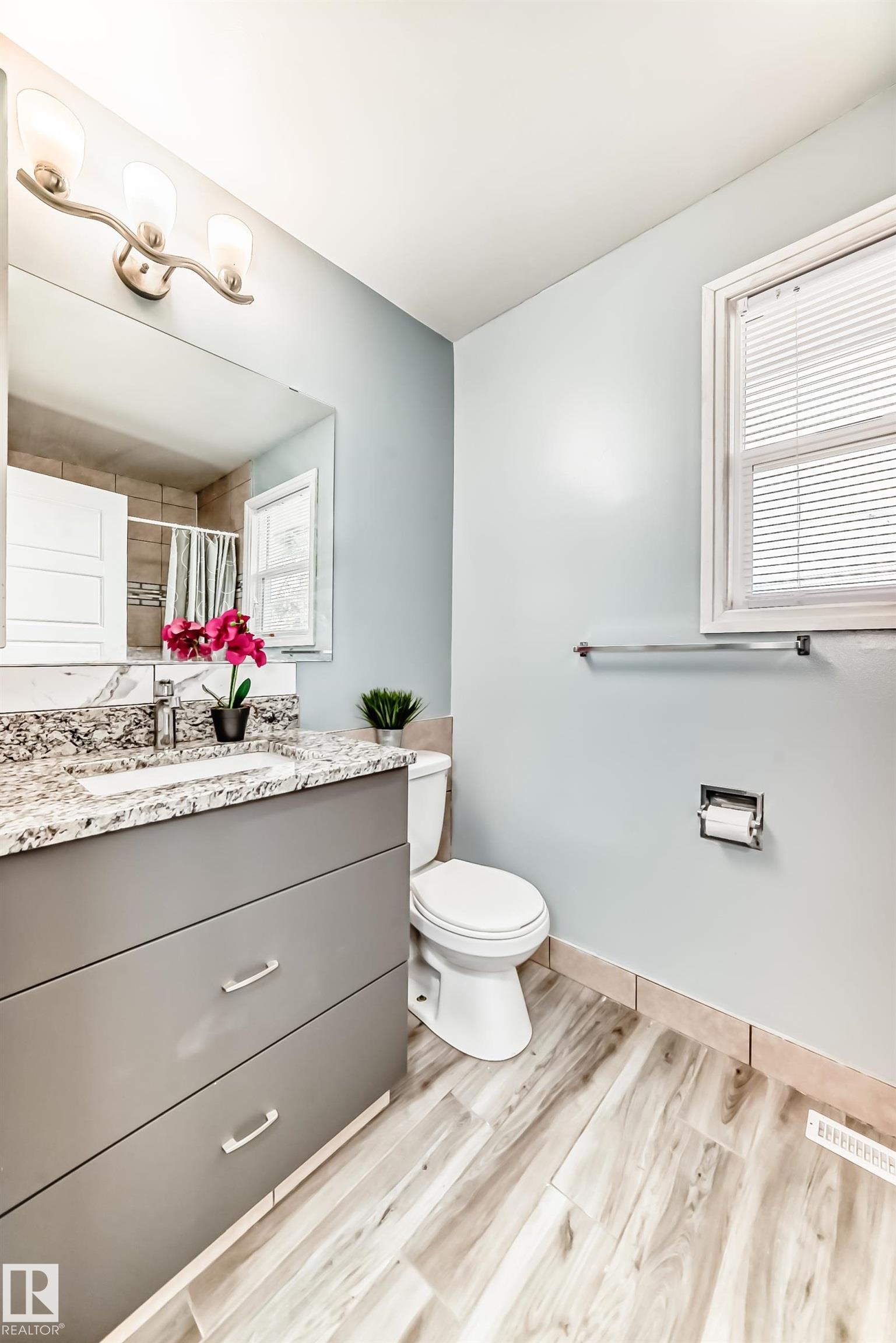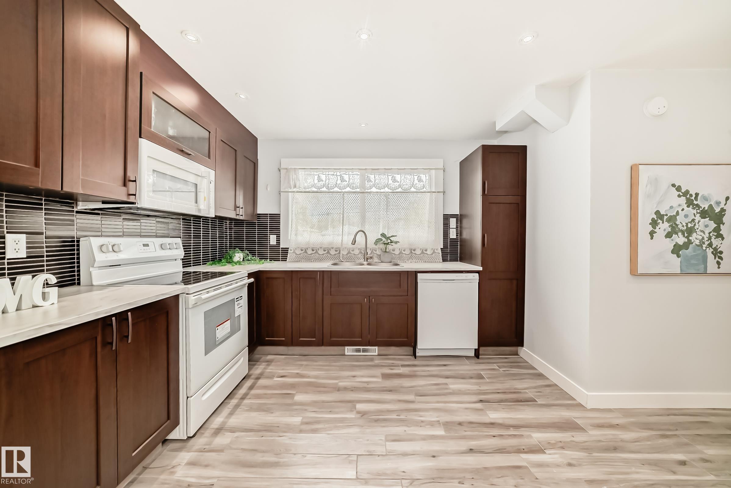 Welcome to this fantastic 2-storey home in the convenient community of Beacon Heights! Features 3 bedrooms, 1.5 bathrooms, a bright living room & a kitchen. Main floor boasts a sun-filled living rm w stunning laminate flooring throughout. Dining area adjacent to a spacious kitchen, offers modern cabinetry & tile flooring. A convenient 1/2 bath on main level. Upstairs you?ll find 3 generous bedrooms, all w newer tile flooring & a 4-pc bathroom. Back door entrance to basement c/w laundry/utility rm & lots of space for future dev. Landscaped & fenced yard, your private oasis for relaxation. Upgrades incl: brand new kitchen countertops/cabinets/dishwasher/microwave hood fan. Shingles (10 yrs). Fridge/painting/kitchen flooring (3 yrs). Newer windows/100 amp electrical panel. Bedrm flooring/upper bathrm/bathtub/granite counter/doors(2yrs). Entire house has LED LIGHTS. Carpet free home! Just steps to schools/playground/ bus routes/shopping & all amenities. Perfect for living in or as an investment. Don't miss!