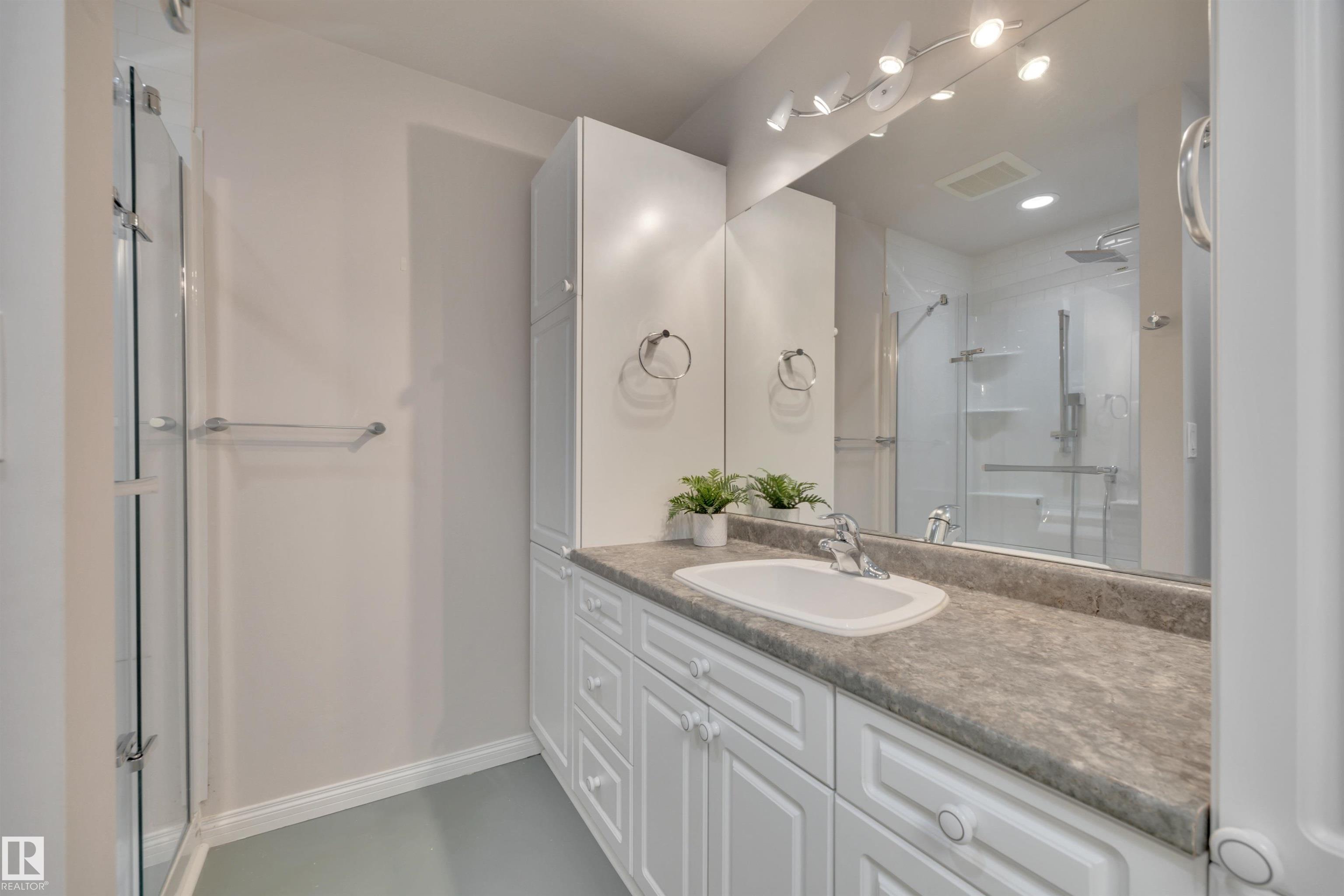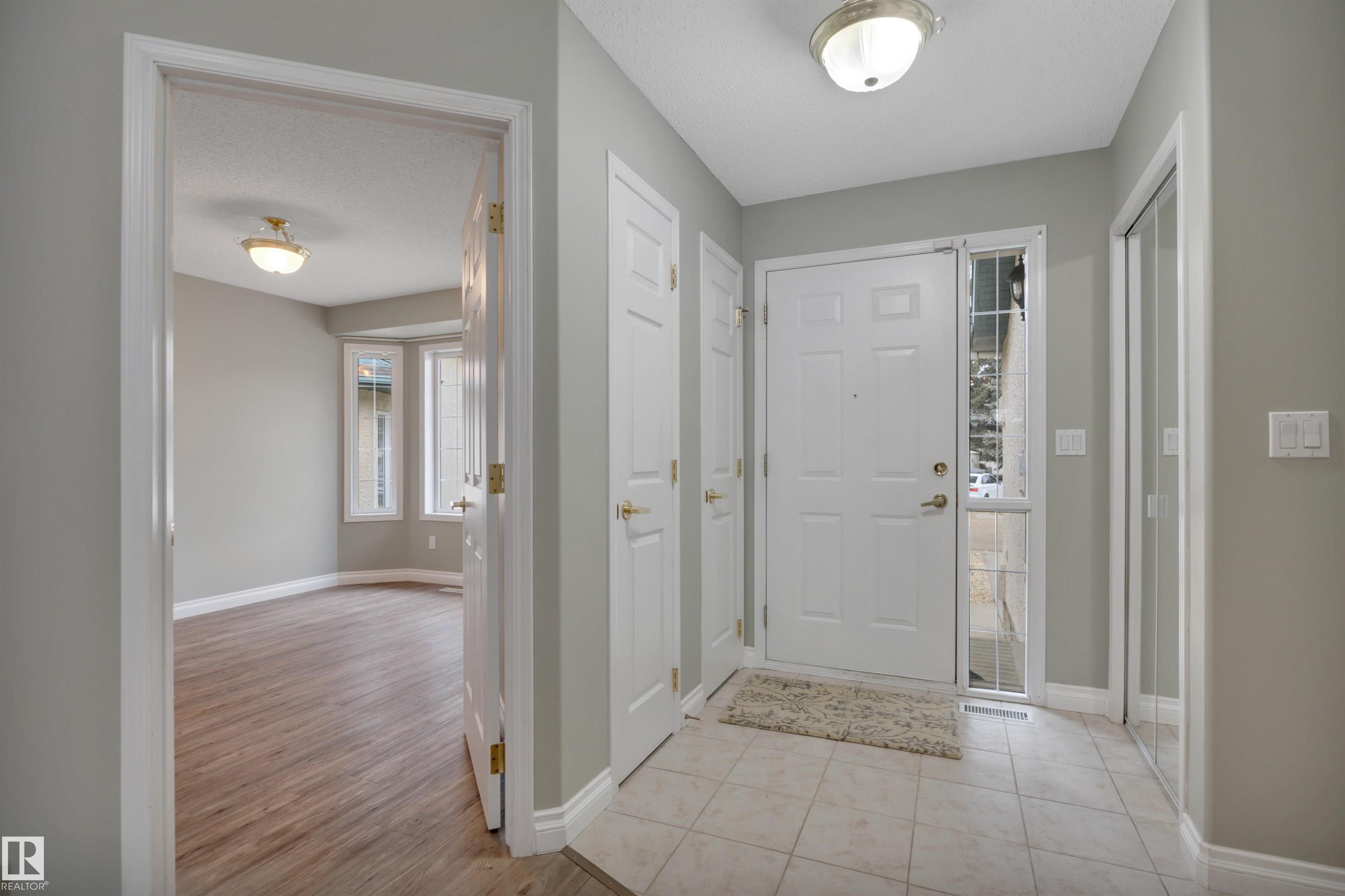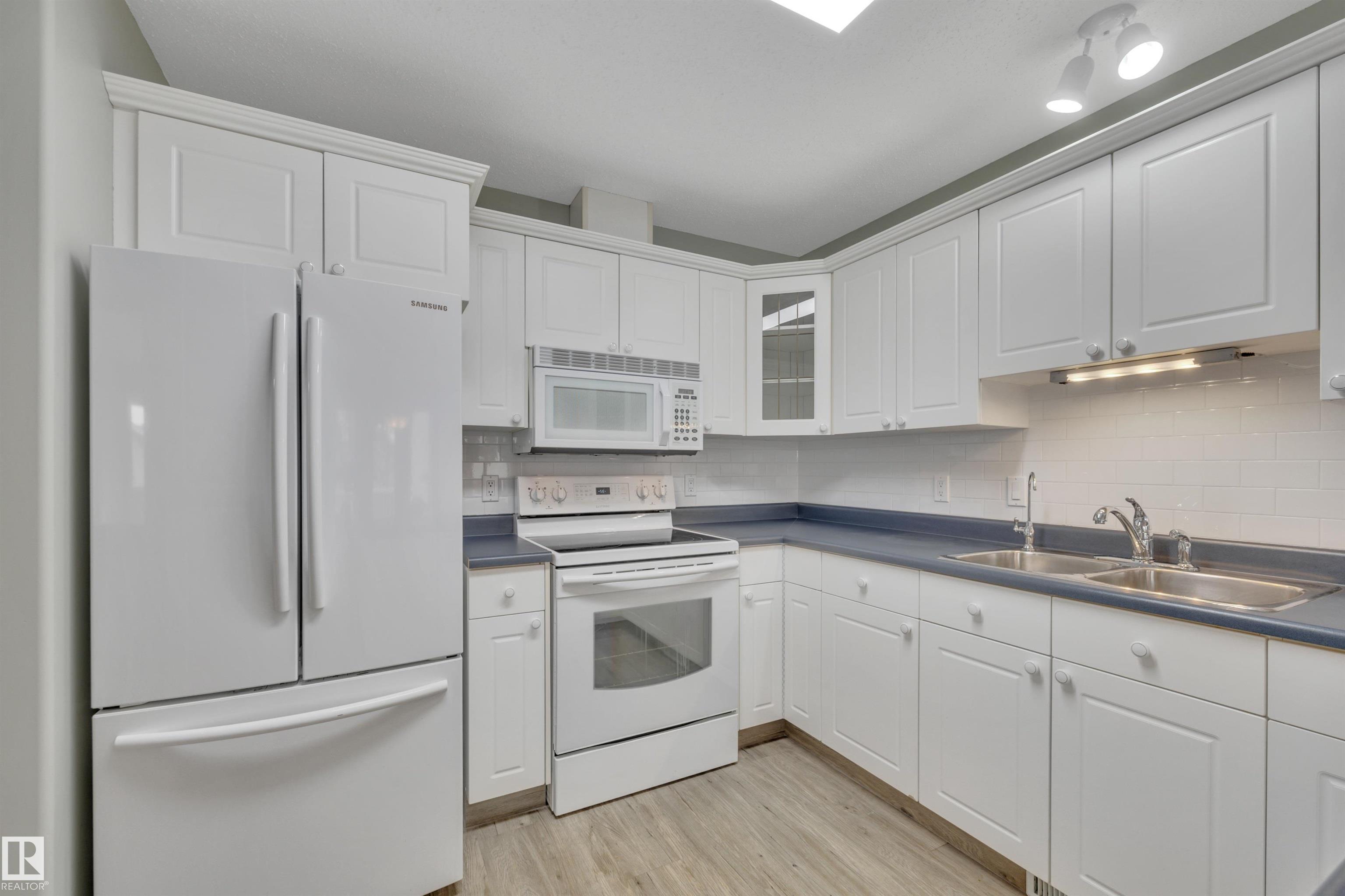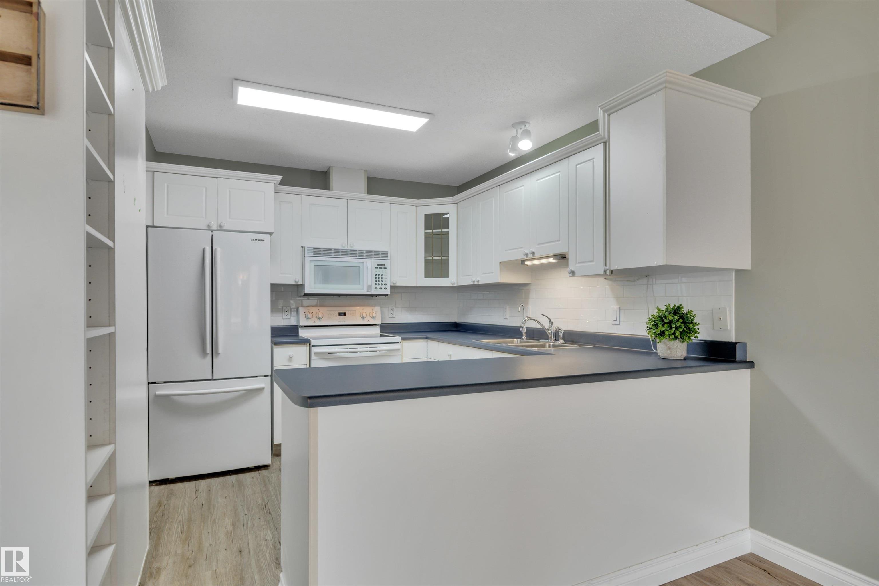 Step into a home where effortless 55+ living meets unparalleled comfort with 2+1 bedrooms, 3 baths, central A/C, single attached garage & premium air quality systems. Designed for comfort, the main floor features stylish vinyl plank flooring, throughout & an open-concept living area highlighted by a large windows. The primary suite is complete with 3pc ensuite & the main bath is smartly upgraded with accessible walk-in tub/shower plus custom closet organizers in all bedrooms. Convenient main-floor laundry with newer front-load w&d. Finished basement offers extra space with a large family room featuring wall of glass display shelves, a spacious 3rd bedroom & 3pc bath with glorious walk-in shower. The wall of built-in storage cabinets is a dream! For ultimate peace of mind, HEPA air filter system & UV virus filter ensure a consistently clean, healthy environment. This well-managed complex offers easy access to the best of West Edmonton; close to all essential services, premier dining & major retailers.