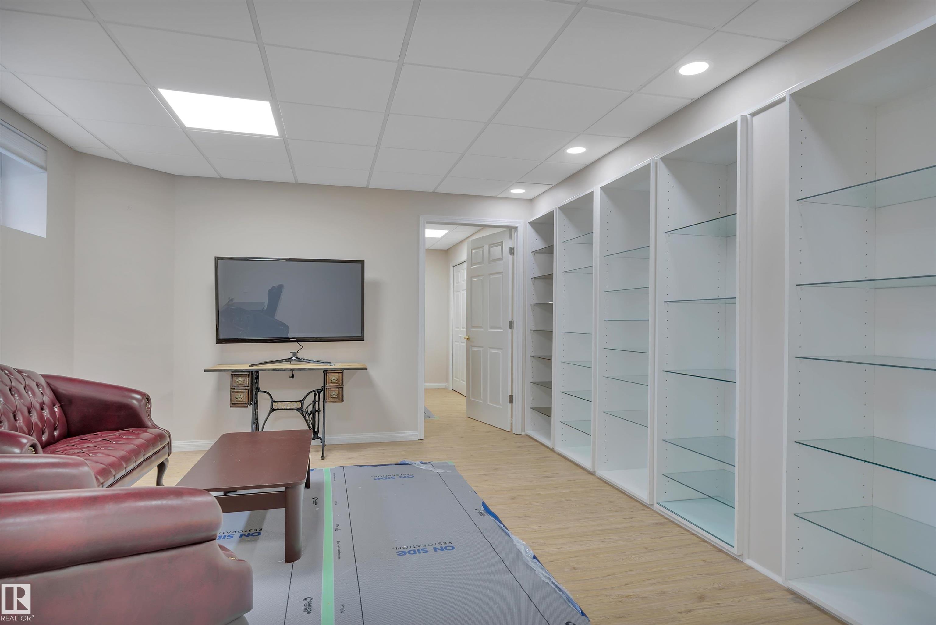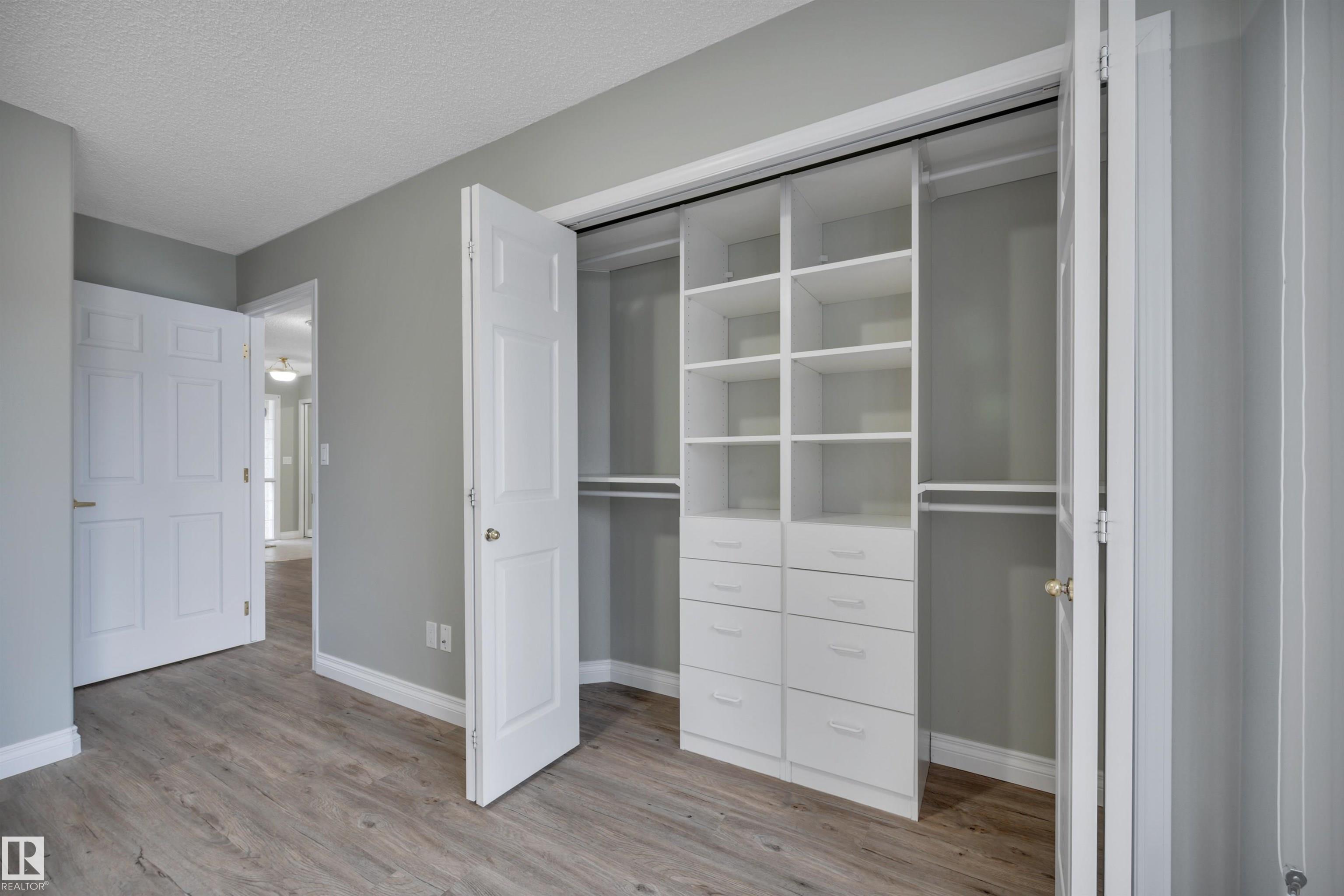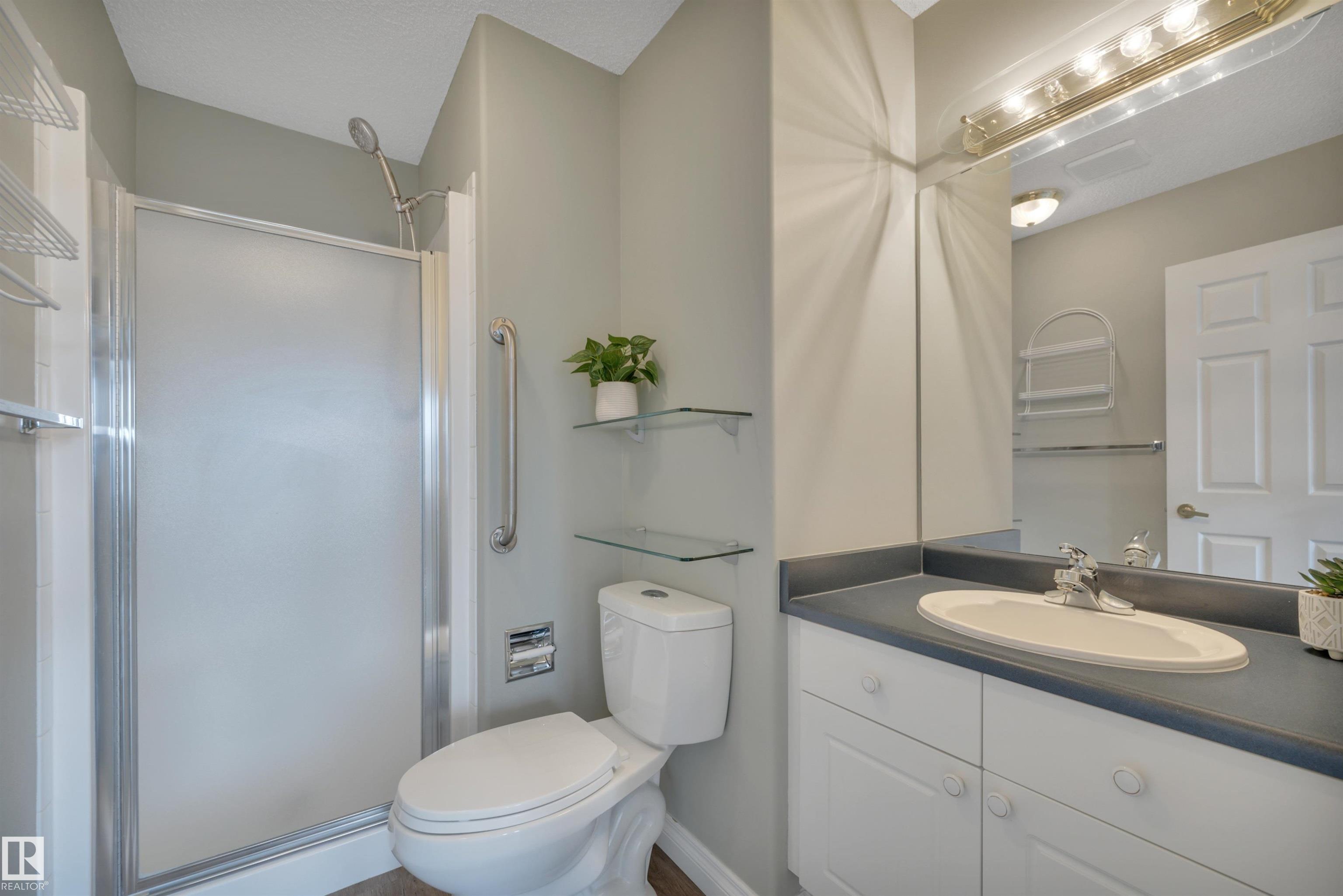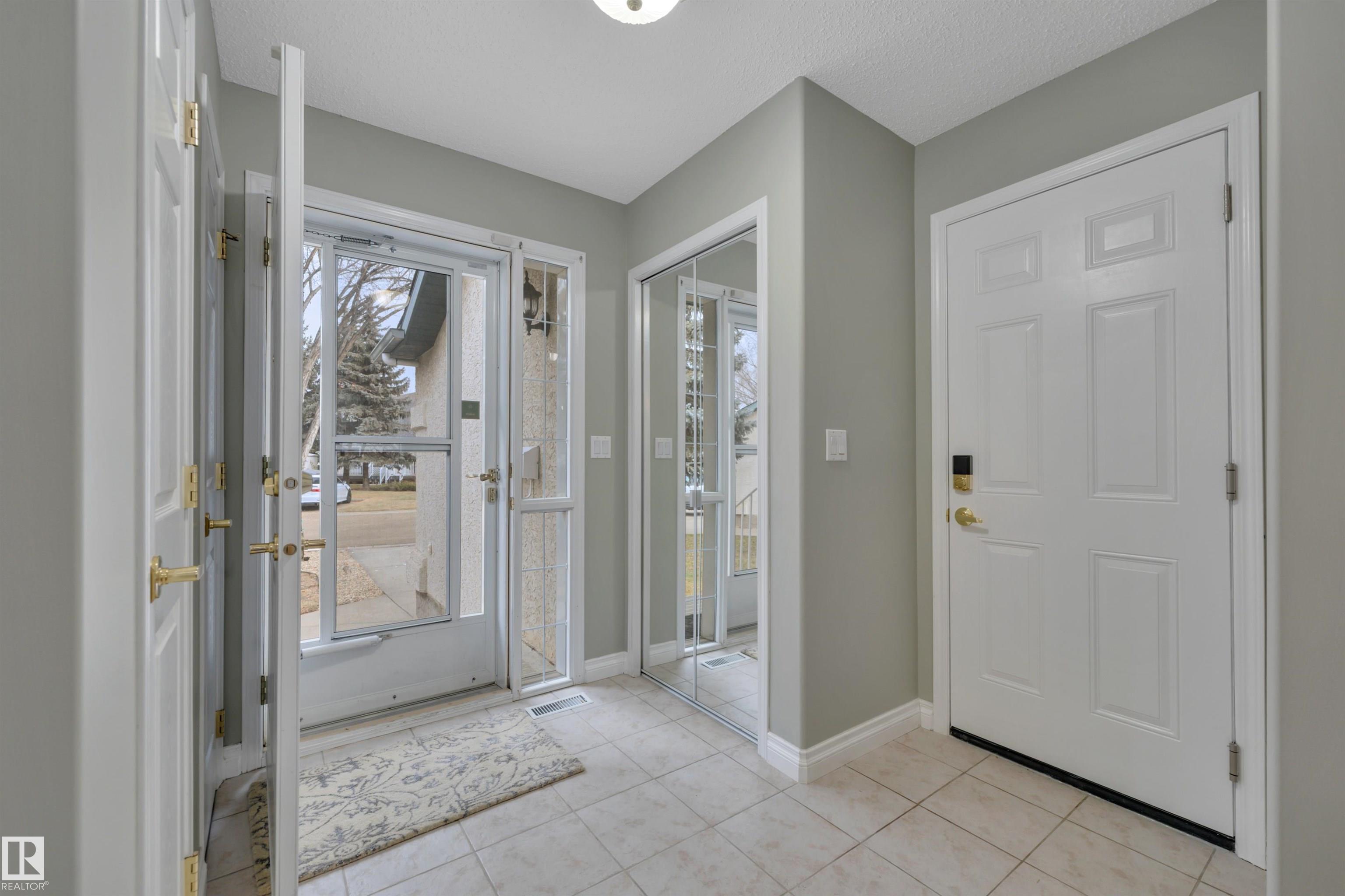 Step into a home where effortless 55+ living meets unparalleled comfort with 2+1 bedrooms, 3 baths, central A/C, single attached garage & premium air quality systems. Designed for comfort, the main floor features stylish vinyl plank flooring, throughout & an open-concept living area highlighted by a large windows. The primary suite is complete with 3pc ensuite & the main bath is smartly upgraded with accessible walk-in tub/shower plus custom closet organizers in all bedrooms. Convenient main-floor laundry with newer front-load w&d. Finished basement offers extra space with a large family room featuring wall of glass display shelves, a spacious 3rd bedroom & 3pc bath with glorious walk-in shower. The wall of built-in storage cabinets is a dream! For ultimate peace of mind, HEPA air filter system & UV virus filter ensure a consistently clean, healthy environment. This well-managed complex offers easy access to the best of West Edmonton; close to all essential services, premier dining & major retailers.