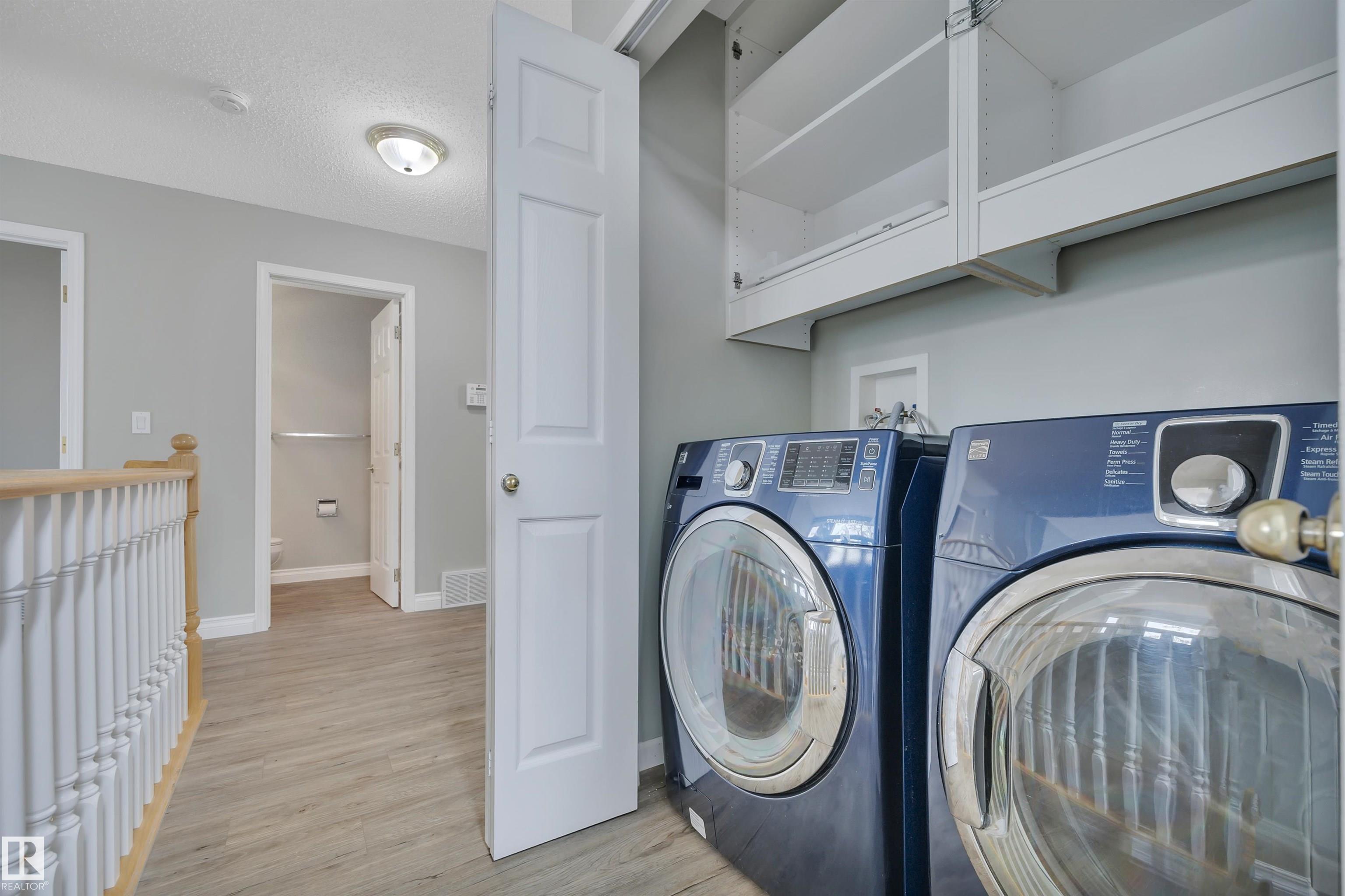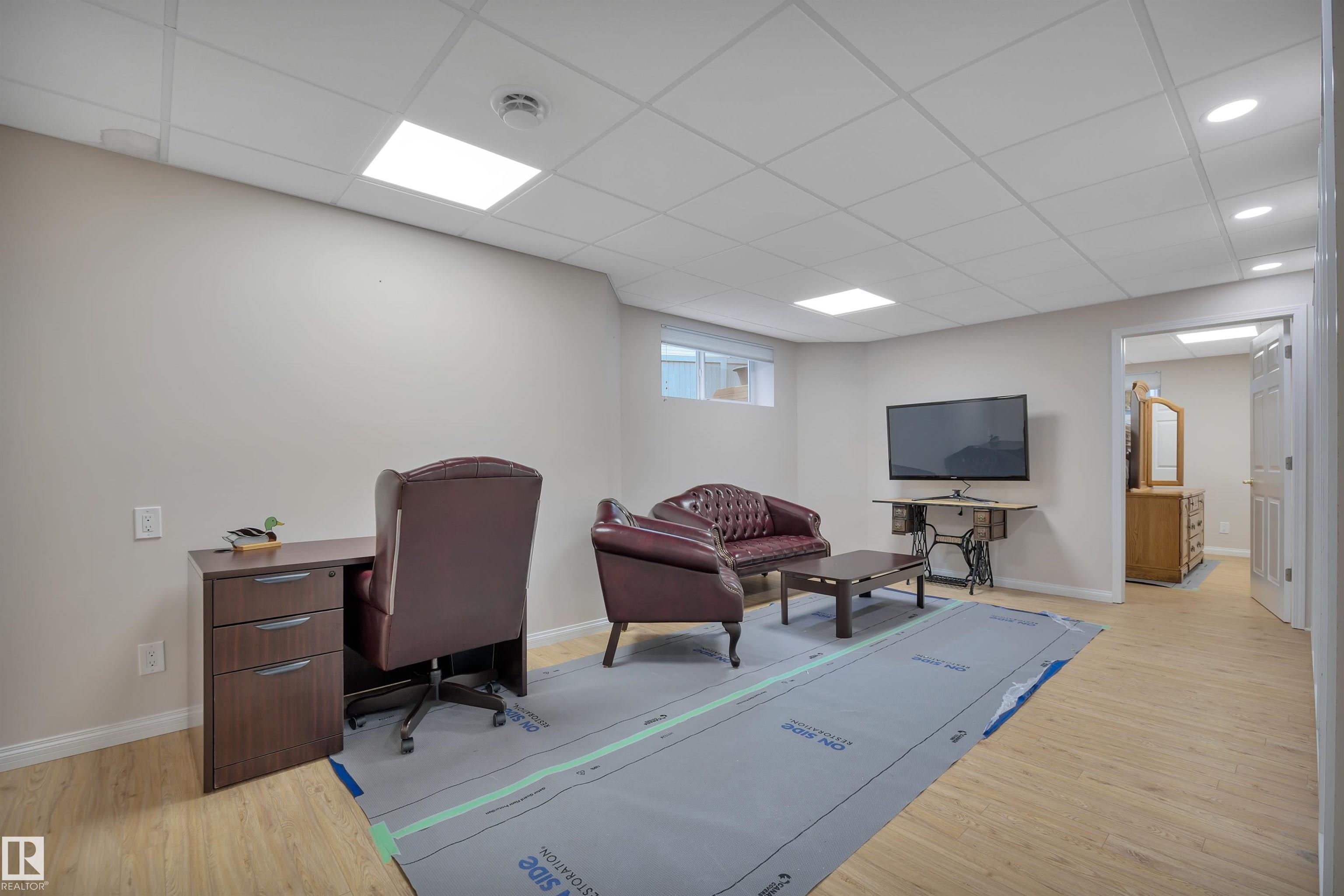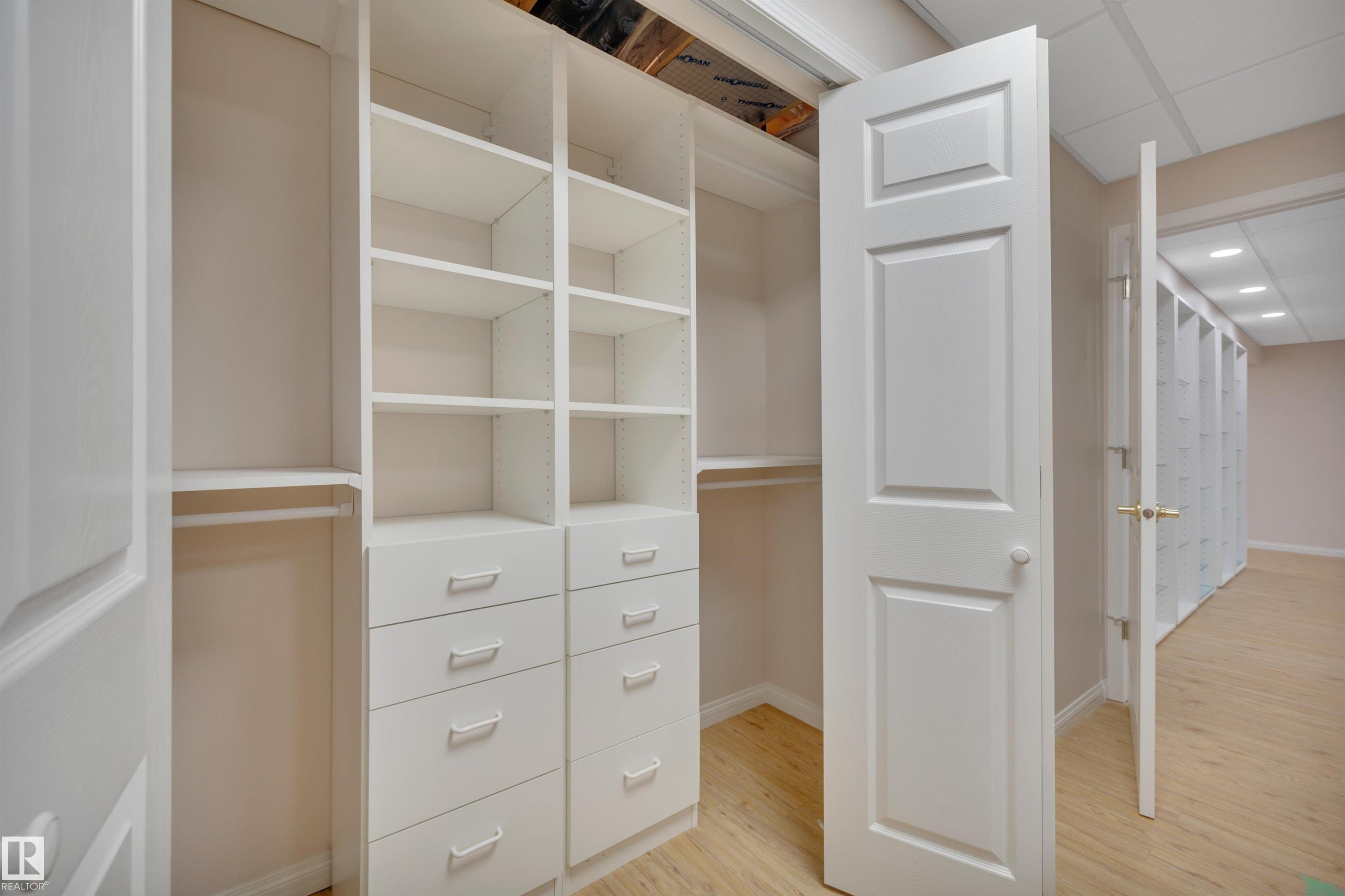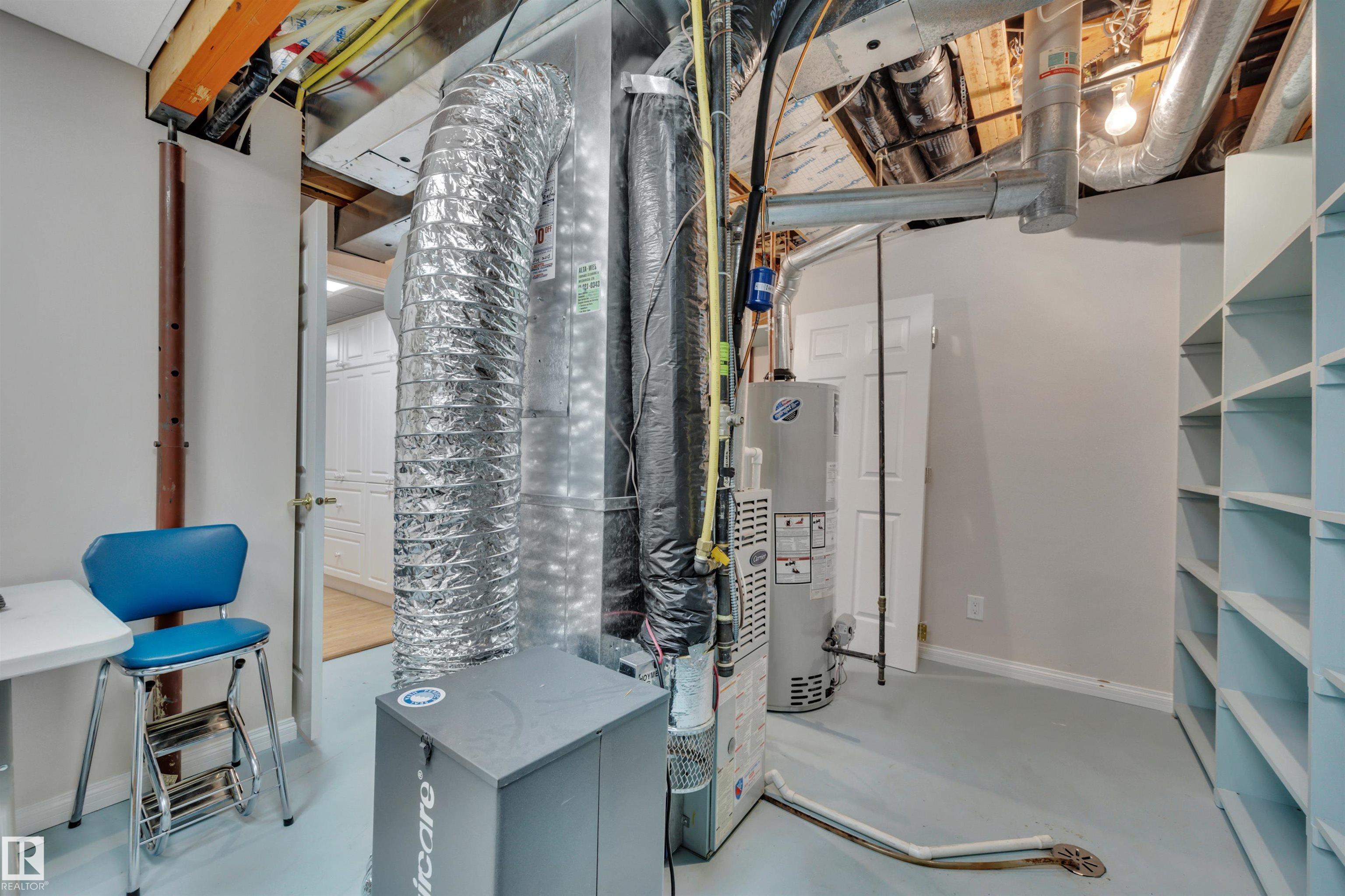 Step into a home where effortless 55+ living meets unparalleled comfort with 2+1 bedrooms, 3 baths, central A/C, single attached garage & premium air quality systems. Designed for comfort, the main floor features stylish vinyl plank flooring, throughout & an open-concept living area highlighted by a large windows. The primary suite is complete with 3pc ensuite & the main bath is smartly upgraded with accessible walk-in tub/shower plus custom closet organizers in all bedrooms. Convenient main-floor laundry with newer front-load w&d. Finished basement offers extra space with a large family room featuring wall of glass display shelves, a spacious 3rd bedroom & 3pc bath with glorious walk-in shower. The wall of built-in storage cabinets is a dream! For ultimate peace of mind, HEPA air filter system & UV virus filter ensure a consistently clean, healthy environment. This well-managed complex offers easy access to the best of West Edmonton; close to all essential services, premier dining & major retailers.