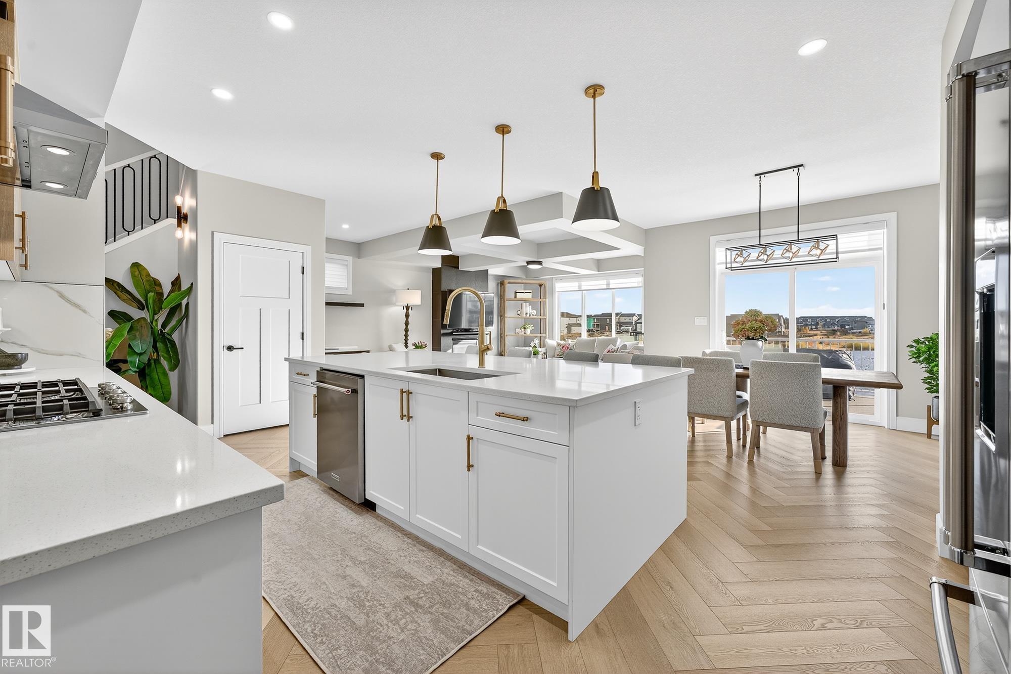 Every detail of this Erin Ridge North lake home feels intentional?crafted for those who love light, flow, and effortless elegance. From the sunlit herringbone floors to the designer kitchen with quartz surfaces and a walk-through pantry, every space invites you to linger and connect. The living room glows with warmth from a sleek fireplace and expansive windows framing tranquil water views. Upstairs, the primary suite feels like a private spa with a soaker tub, glass shower, and generous closet, while two additional bedrooms and a luminous bonus room add comfort for family or guests. The walkout basement extends your lifestyle with a wet bar, rec area, and access to the covered patio, where peaceful lake views set the tone for quiet mornings or sunset gatherings. With low-maintenance landscaping, a deck off the dining area, and a seamless blend of modern design and timeless warmth, this home also features a heated garage?an ideal space for hobbyists, projects, or year-round tinkering.