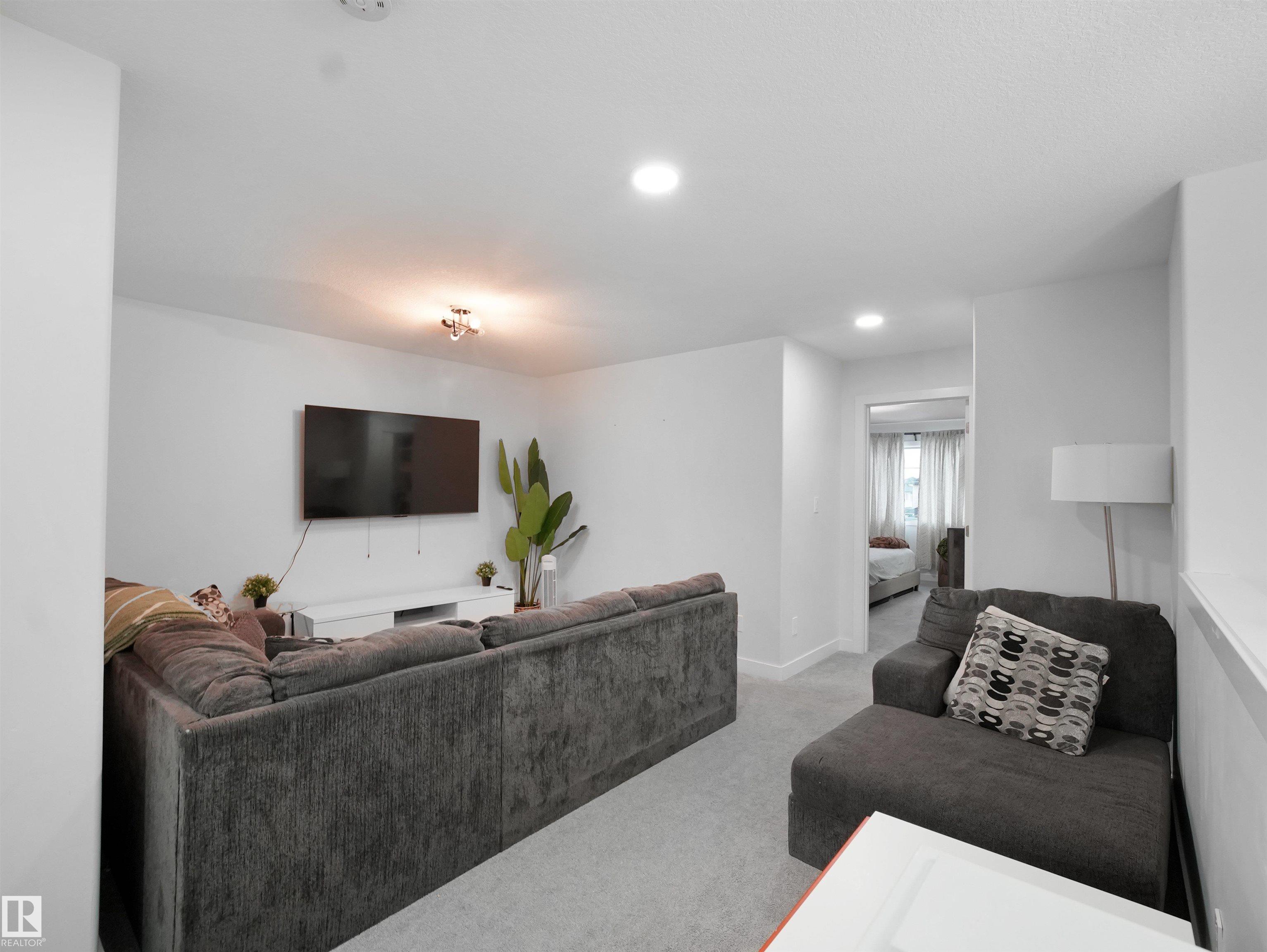 Discover this striking 2020-built duplex in the vibrant Chappelle community ? boasting 9-ft ceilings on the main floor and a two-car garage. The main level presents a bright living area with large windows and an electric fireplace with elegant mantel, flowing into a designer kitchen featuring quartz countertops, a striking tile backsplash, stainless-steel appliances, a corner pantry, centre island and built-in microwave. The adjoining dining area looks out to the backyard, creating a seamless indoor-outdoor feel. A convenient powder room completes the main floor. Upstairs you?ll find the master retreat with a luxurious 5-piece ensuite and walk-in closet, plus two additional nicely sized bedrooms, a 4-piece bath, laundry room and a bonus room that strategically separates the master from the other bedrooms. The fully finished basement with separate entrance adds flexibility ? offering a large bedroom, a 4-piece bath and a rec room ideal for family or multi-gen use. Located in a community rich in amenities.