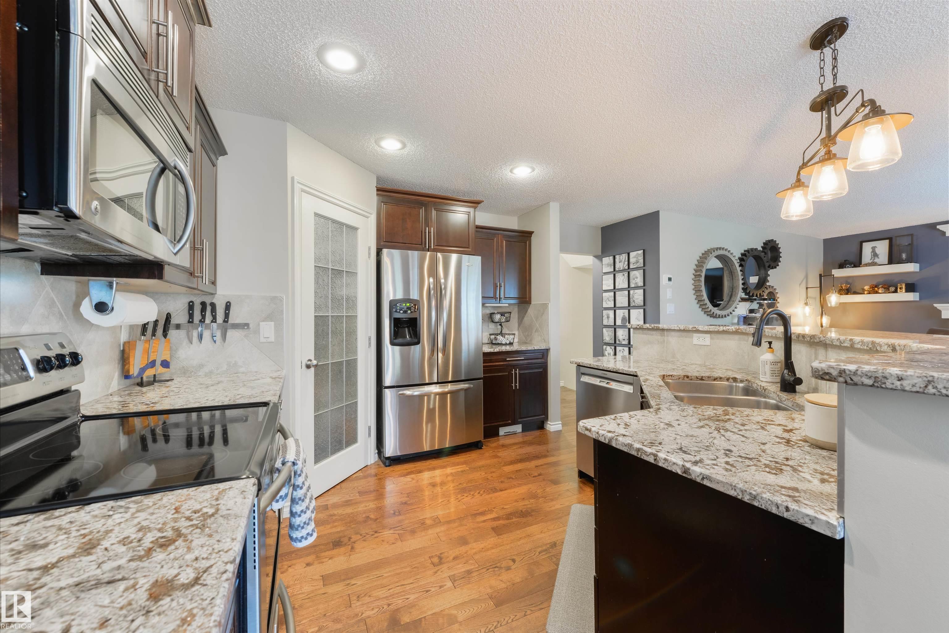 1,862 sq ft fully finished 2 story home which backs onto the park and school field in sought after Summerside! Extensive upgrades throughout featuring exposed aggregate driveway & sidewalk. Main level has engineered hardwood floors, kitchen w/ granite counter tops & stainless steel appliances, large living room and dining room. Main level laundry room and 2 piece bath finish the main level. Upper level w/ huge bonus room w/ 2 additional bedrooms & 4-piece bathroom. Primary bedroom w/ 4-piece ensuite & walk-in closet overlooking the park space finishes the upper level. Lower level is fully finished w/ large family room/fitness area & 3-piece bath. Backyard backs the park so you can watch your kids walk to the K-9 school! Oversized maintenance free deck, custom built exterior shed and heated water feature with fish! Located on a quiet cul-de-sac, a short walk from Summerside beach & clubhouse - enjoy the year-round lake amenities including skating, boating, fishing & tennis. Must be seen to be appreciated.