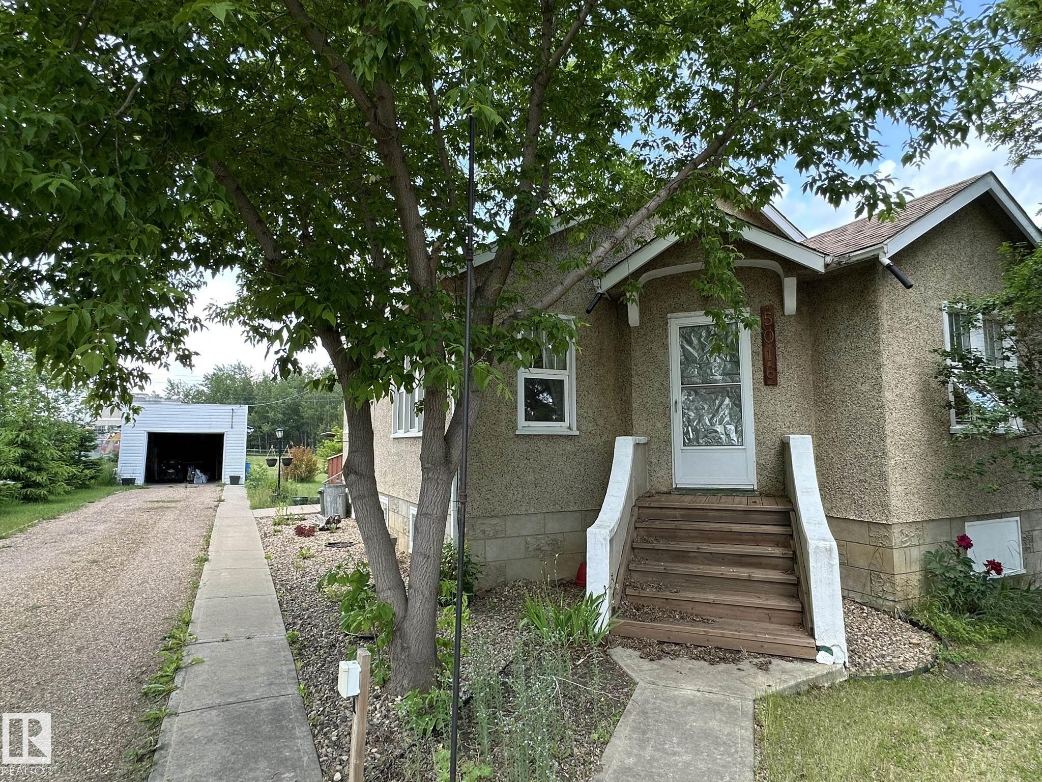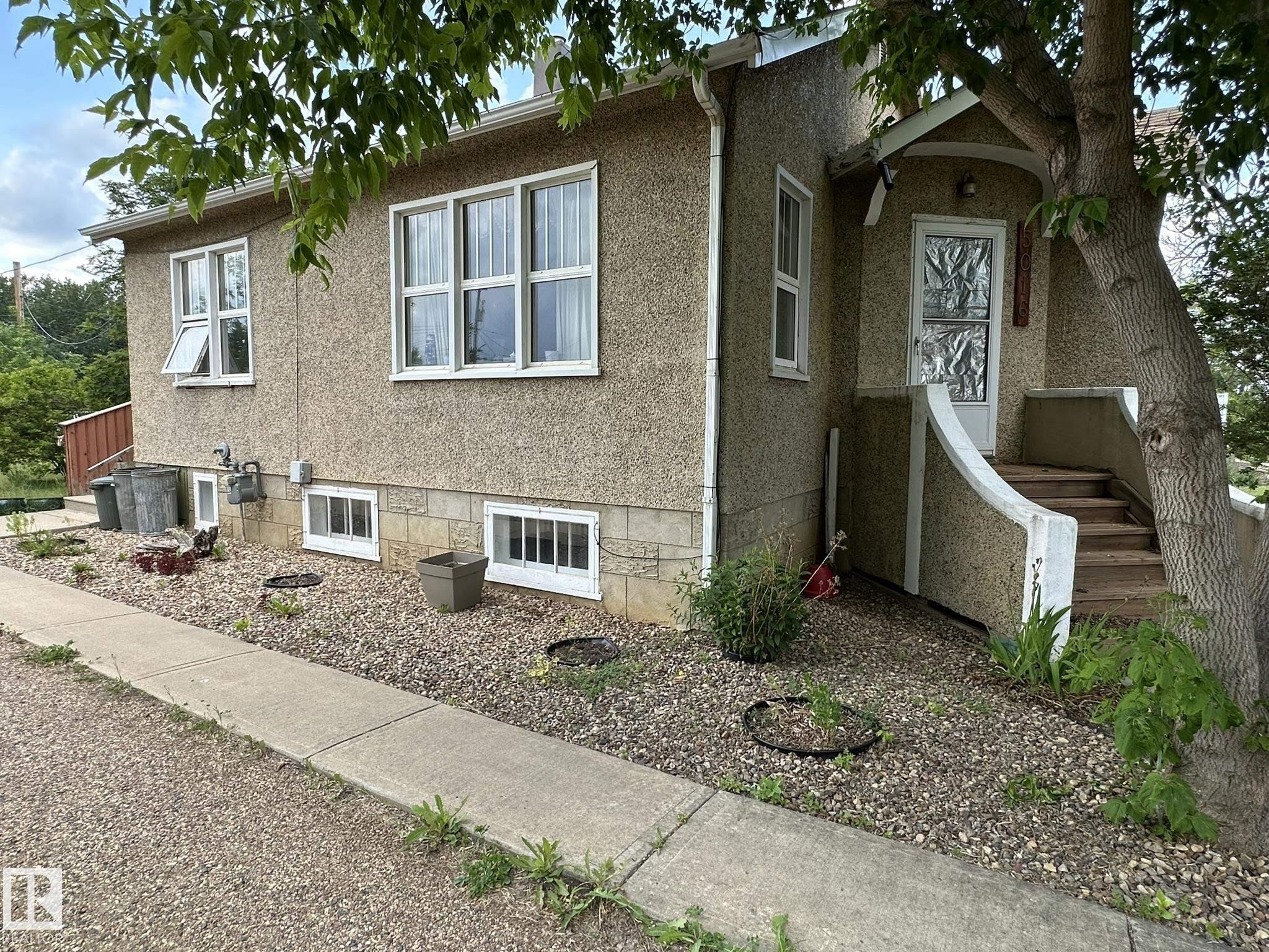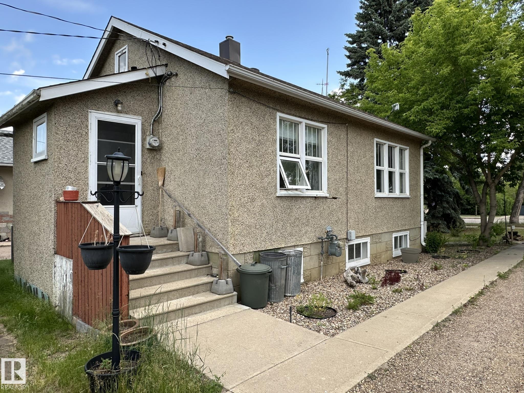 Newly renovated home on a huge lot near everything in Smoky Lake. This charmer has had several updates of late, such as flooring, paint, windows and roof. You'll appreciate the large eat-in kitchen with access to the backyard, the living room is roomy and comfortable, there are also 2 bedrooms on the main floor as well as an updated bathroom and pantry. The basement boasts full height ceiling and large windows as well as another bedroom, shower, bathroom, laundry facilities and tons of storage. The land is private and well landscaped, the long driveway can accommodate several vehicles and the garage has power. The half acre yard boasts tons of opportunities for the outdoor enthusiasts.