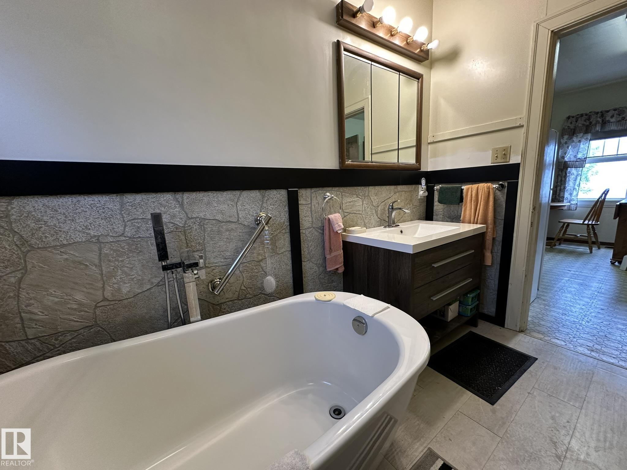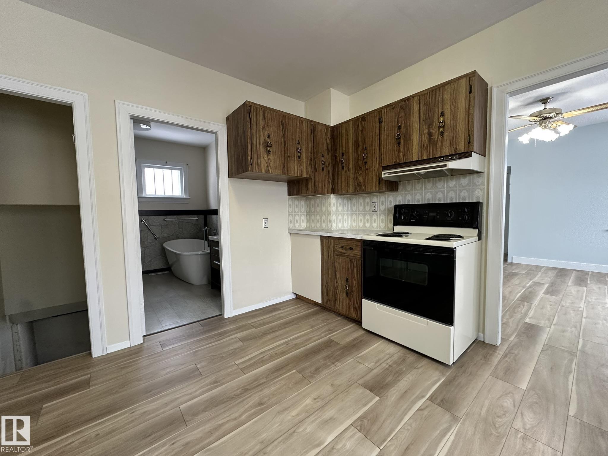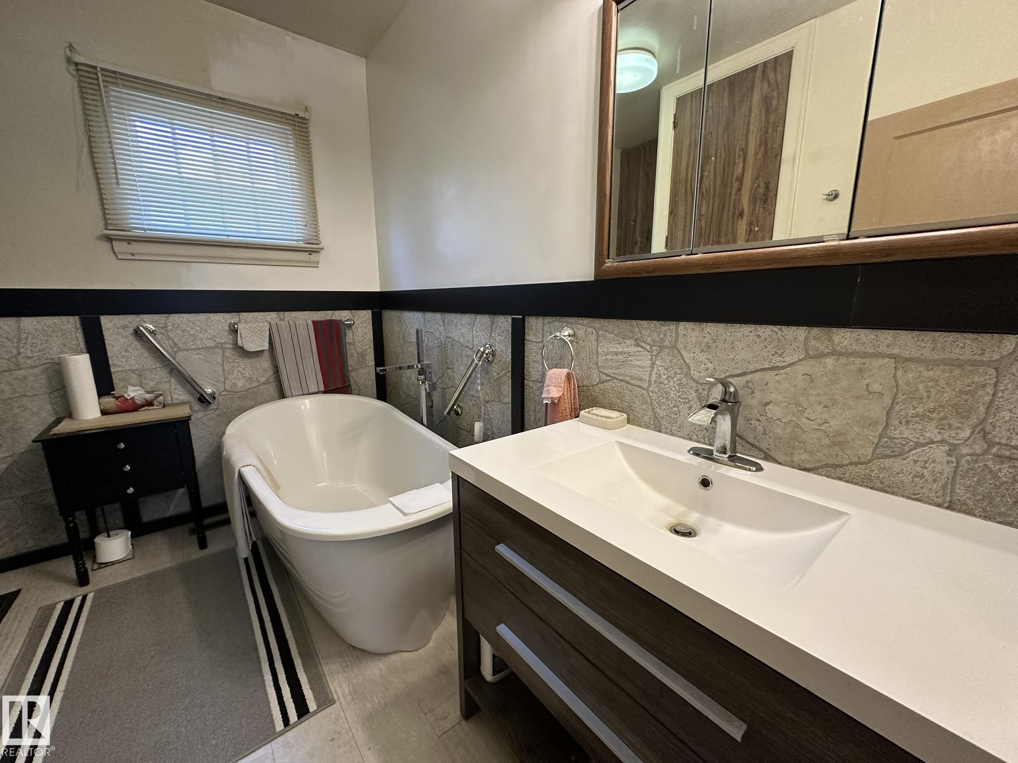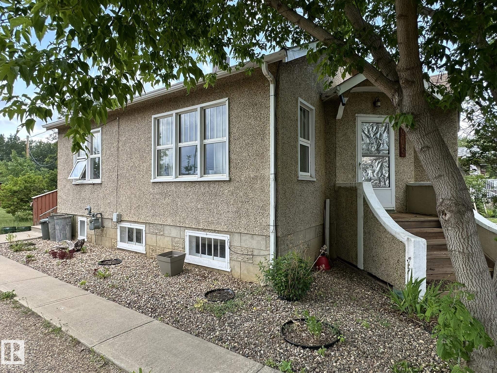 Newly renovated home on a huge lot near everything in Smoky Lake. This charmer has had several updates of late, such as flooring, paint, windows and roof. You'll appreciate the large eat-in kitchen with access to the backyard, the living room is roomy and comfortable, there are also 2 bedrooms on the main floor as well as an updated bathroom and pantry. The basement boasts full height ceiling and large windows as well as another bedroom, shower, bathroom, laundry facilities and tons of storage. The land is private and well landscaped, the long driveway can accommodate several vehicles and the garage has power. The half acre yard boasts tons of opportunities for the outdoor enthusiasts.
