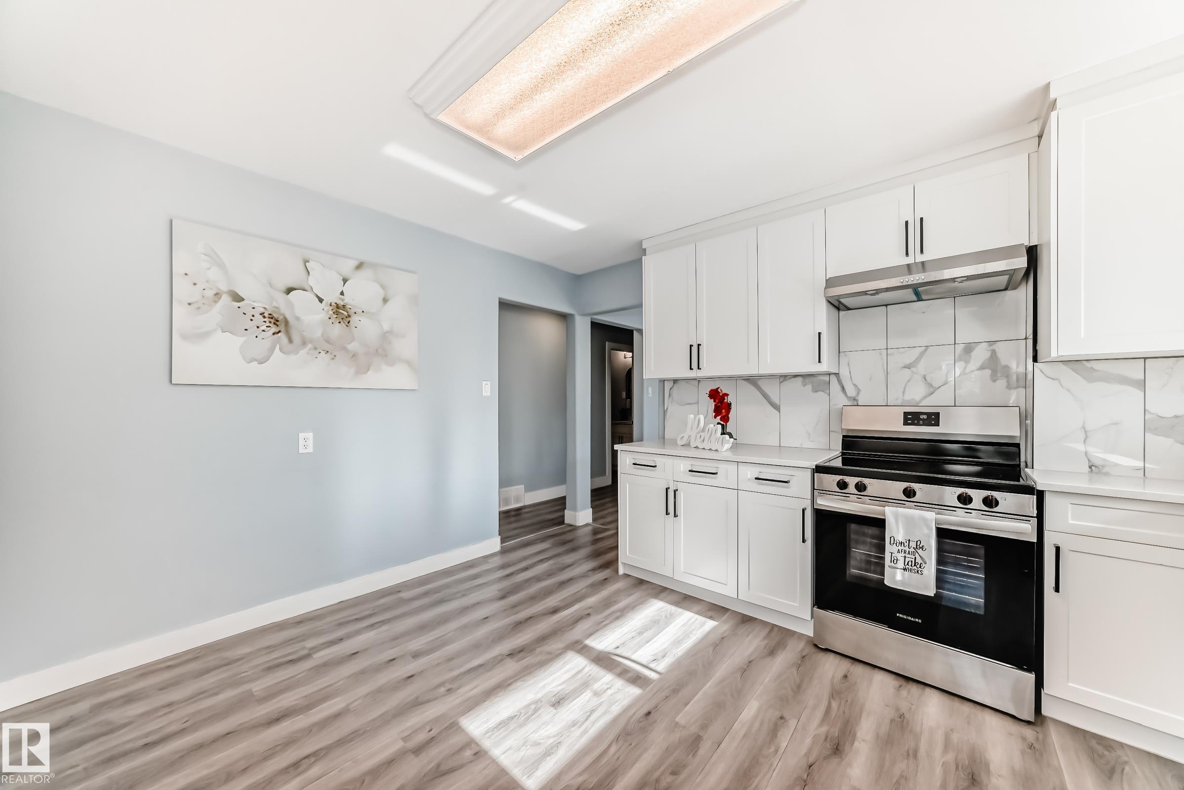 Welcome to this stunning bungalow with over 2,000 sq ft of living space! Features 5 bedrooms, 2 living areas, 2 kitchens, and 2 bathrooms. Renovated within the last 1.5 years with new vinyl plank flooring, fresh paint, updated kitchens, countertops, backsplash, bathrooms, doors, and light fixtures. Other updates include shingles (6 yrs), furnace (16 yrs), newer windows, and 100 amp electrical panel. Main floor offers a bright living room, modern kitchen & 3 bedrooms w a newer 4pc bathroom. Back entrance leads to a fully finished basement c/w 2 bedrooms, large family room, 2nd kitchen, 3pc bath & laundry/utility room. Carpet-free home. Great-sized, landscaped yard w RV parking and a concrete pad for double parking. Close to schools, Downtown, NAIT, Kingsway Mall, and all amenities. Quick possession available. Perfect for investors or first-time buyers! Don't miss!