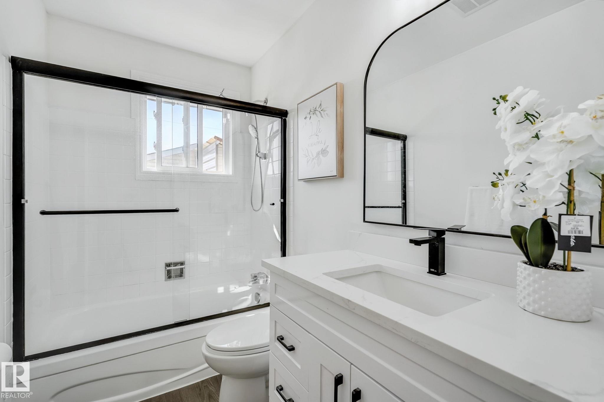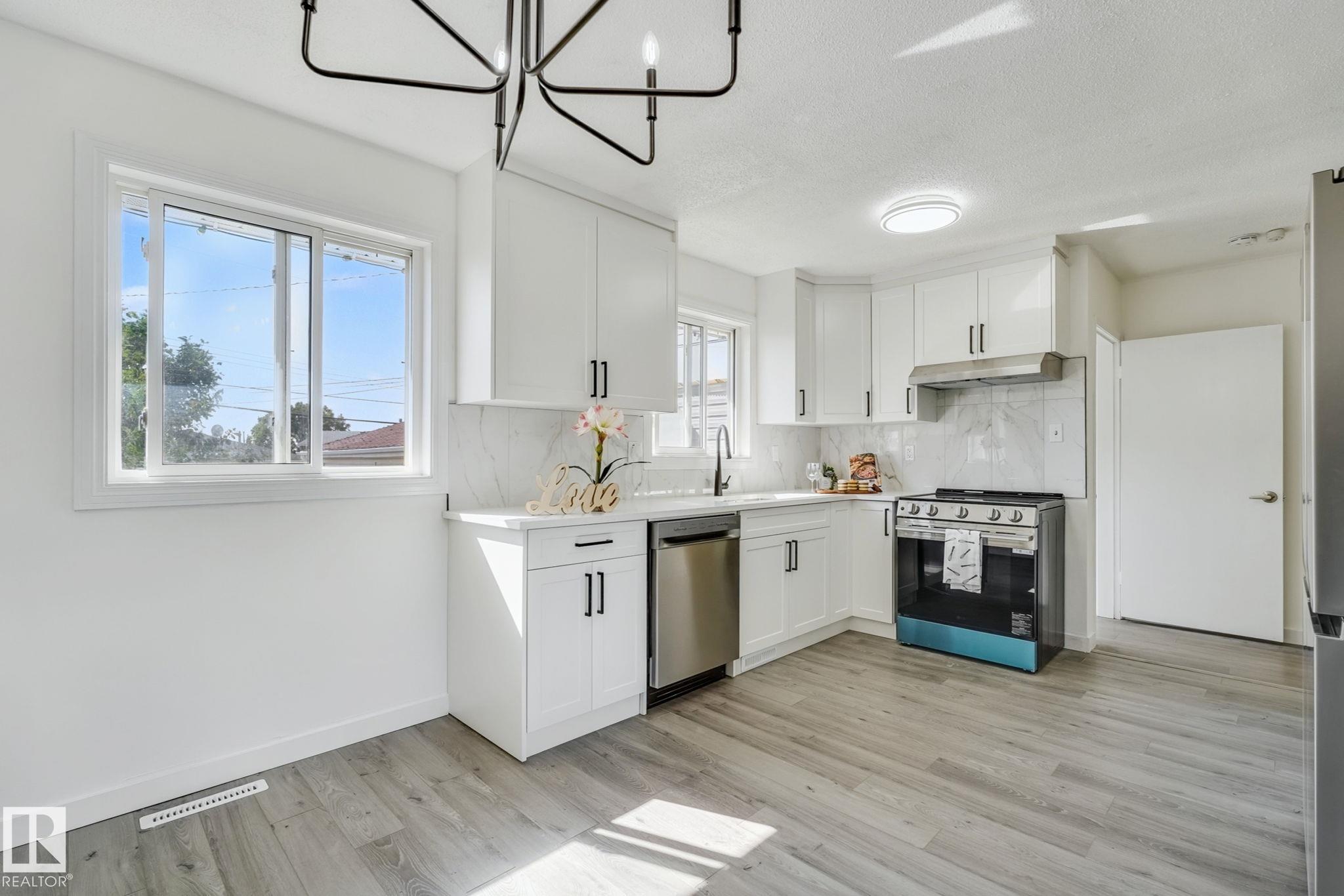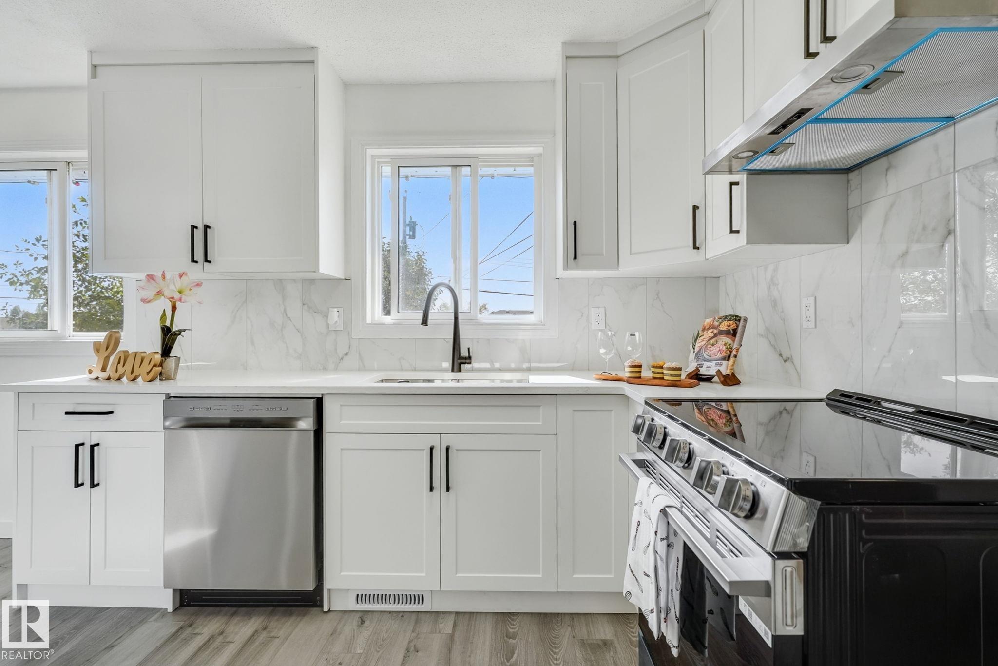 Stunning bungalow offering over 2,200 sq ft of total living space! Featuring 5 bedrooms/2 living rooms/2 full bathrooms & a double oversized garage. This home has been substantially renovated with: brand new shingles/vinyl plank flooring/kitchen cabinets/quartz countertops/backsplash tiles/pot lights/SS appliances/fresh paint/new bathroom/siding (2015)/HWT/(2021)/windows (2009). Main floor greets you w an open-concept, bright living rm w gorgeous vinyl plank flooring, adjacent to the dining area. Spacious kitchen features brand-new upgrades. 3 generous bedrooms & a 4pc bathrm. Back entrance leads to fully finished basement, c/w 2 bedrooms/1 full bathroom/a huge family rm w an egress window (great potential to add a 3rd bedroom & 2nd kitchen), laundry & utility rm. Enjoy the large, landscaped & fenced yard w back-lane access to the double garage (built 2001). Carpet-free home! Easy access to public transit/schools/parks/shopping & all amenities. Quick poss avail. perfect for living in or investments!