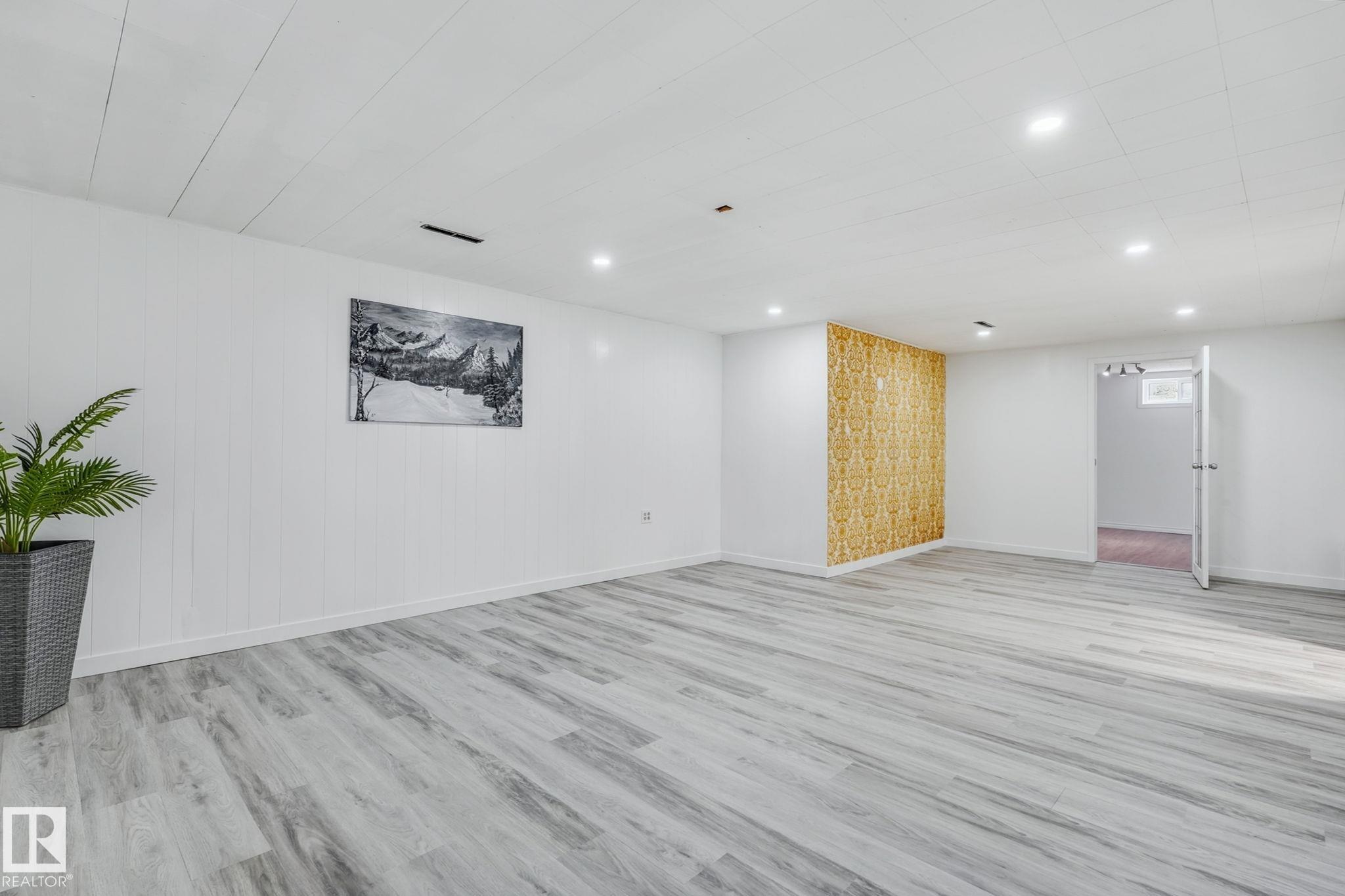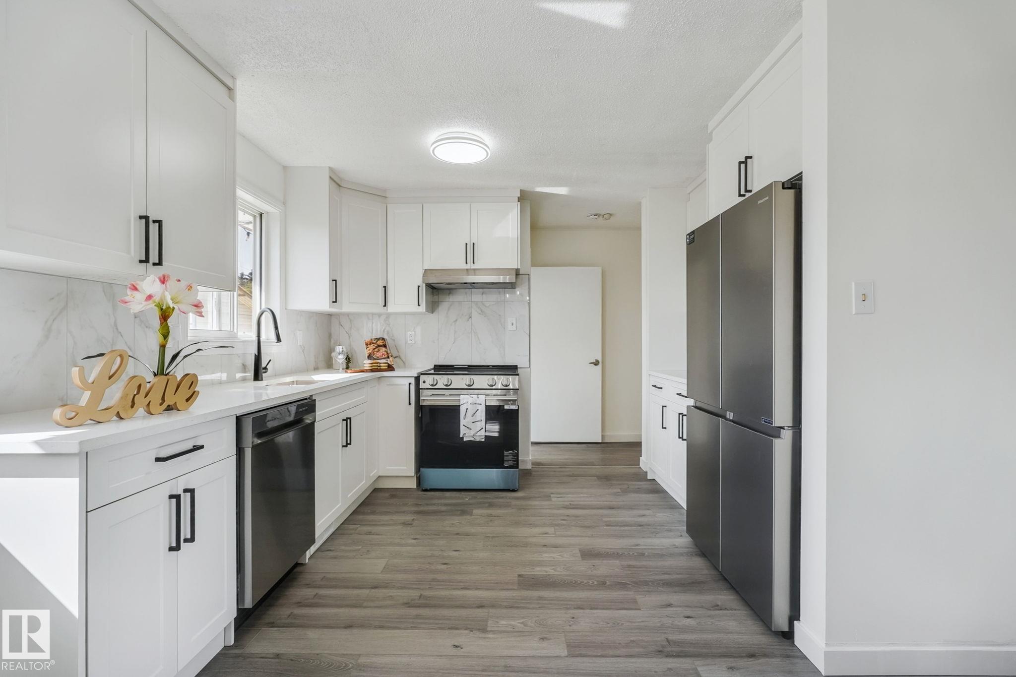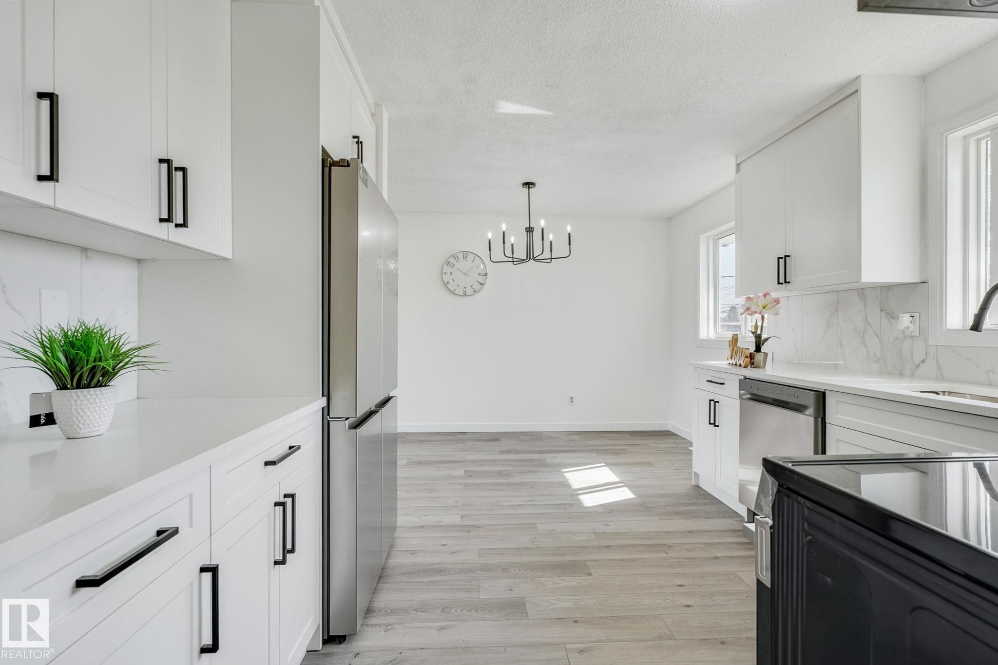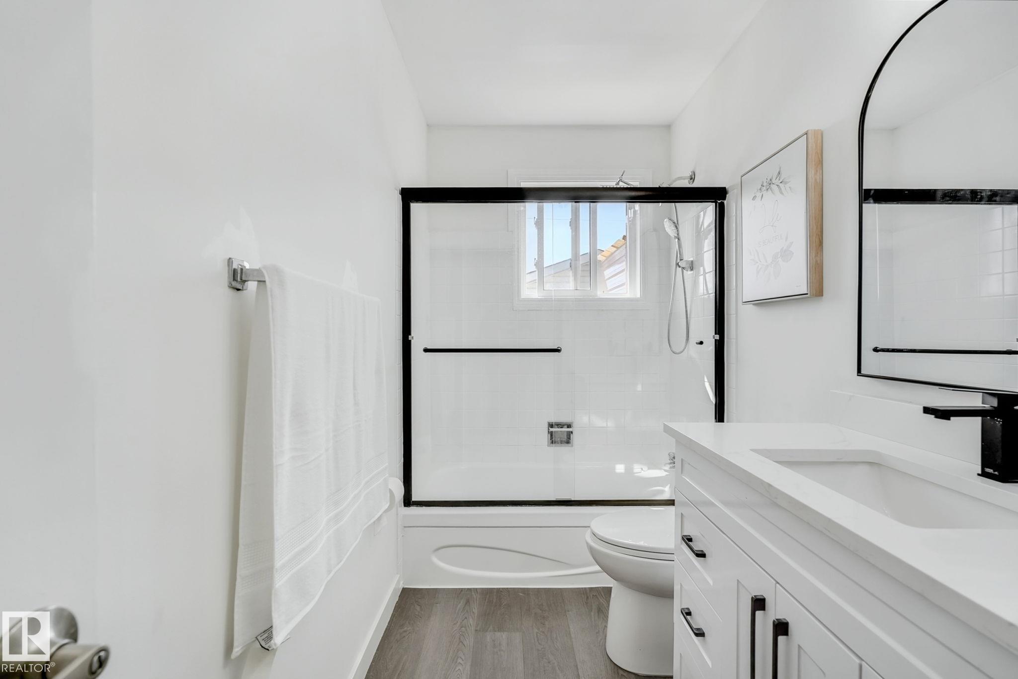 Stunning bungalow offering over 2,200 sq ft of total living space! Featuring 5 bedrooms/2 living rooms/2 full bathrooms & a double oversized garage. This home has been substantially renovated with: brand new shingles/vinyl plank flooring/kitchen cabinets/quartz countertops/backsplash tiles/pot lights/SS appliances/fresh paint/new bathroom/siding (2015)/HWT/(2021)/windows (2009). Main floor greets you w an open-concept, bright living rm w gorgeous vinyl plank flooring, adjacent to the dining area. Spacious kitchen features brand-new upgrades. 3 generous bedrooms & a 4pc bathrm. Back entrance leads to fully finished basement, c/w 2 bedrooms/1 full bathroom/a huge family rm w an egress window (great potential to add a 3rd bedroom & 2nd kitchen), laundry & utility rm. Enjoy the large, landscaped & fenced yard w back-lane access to the double garage (built 2001). Carpet-free home! Easy access to public transit/schools/parks/shopping & all amenities. Quick poss avail. perfect for living in or investments!