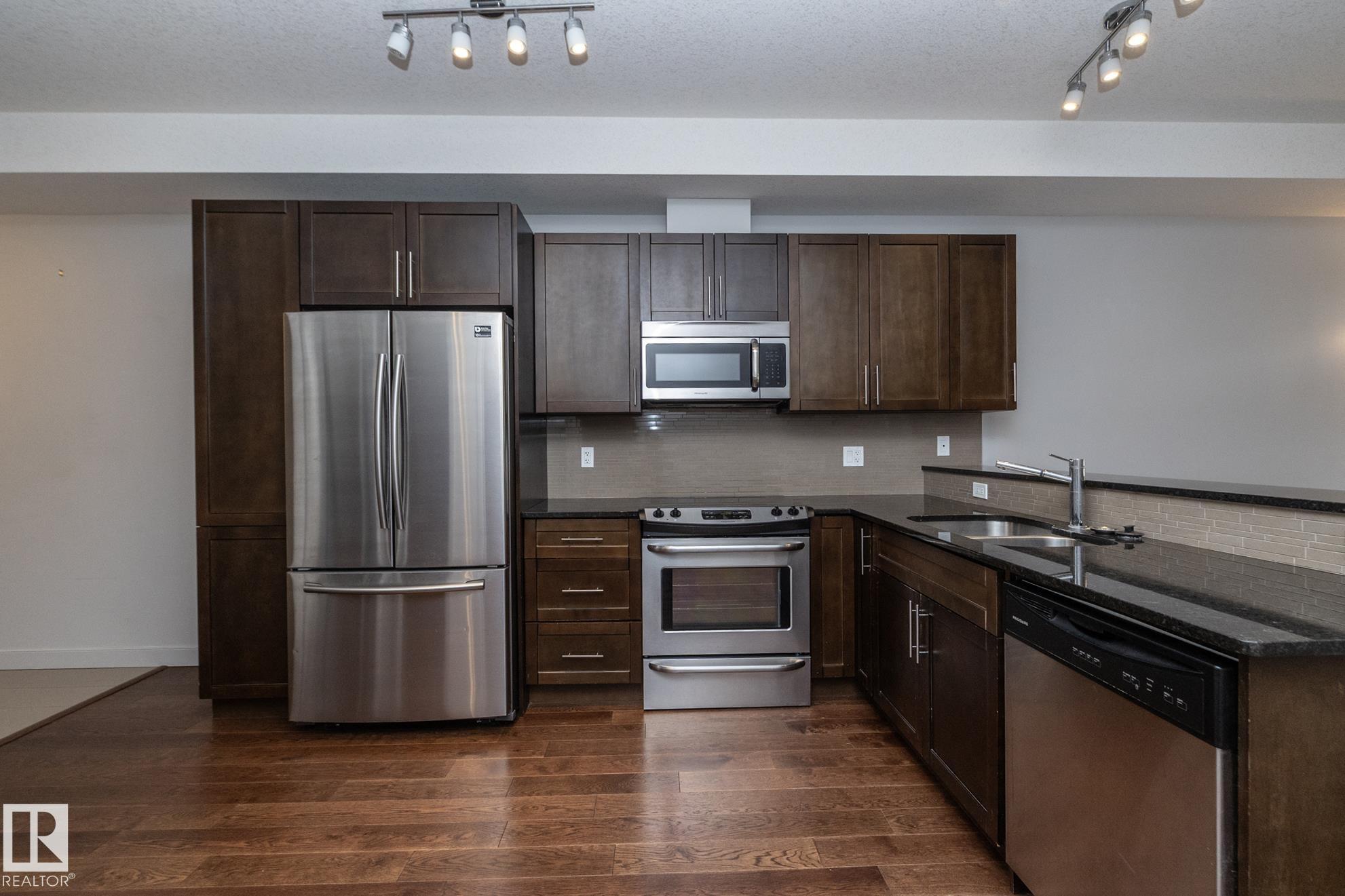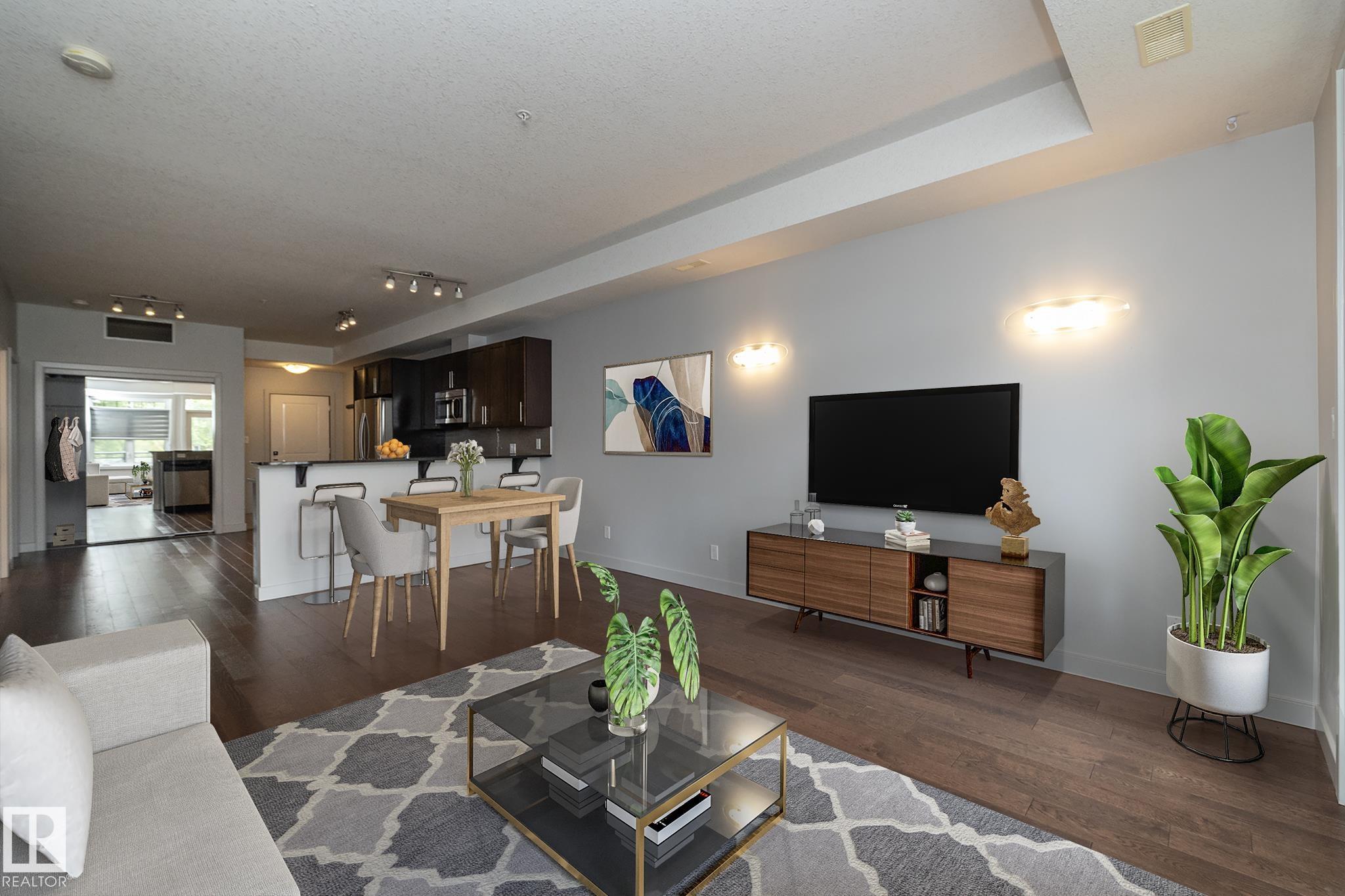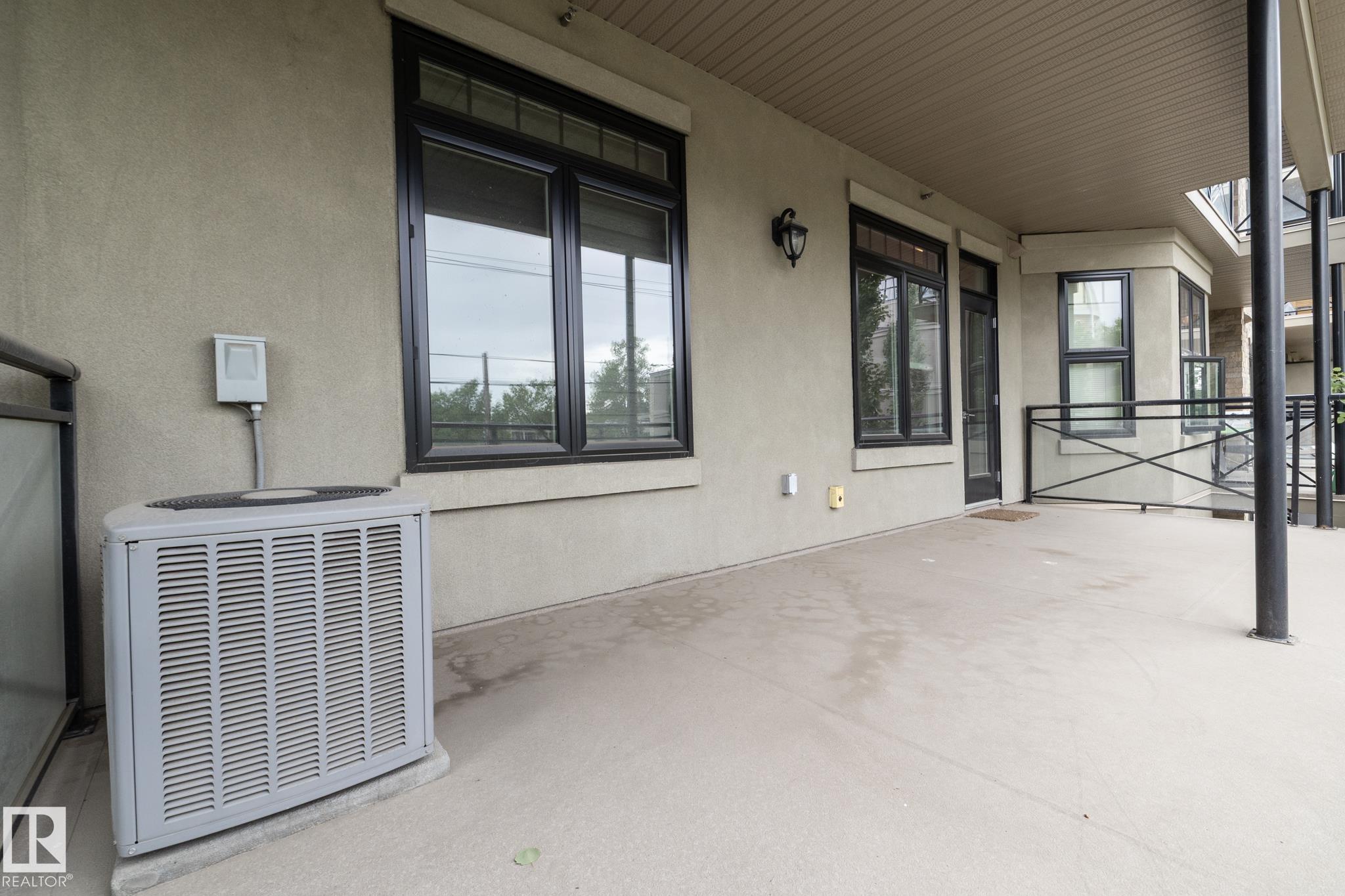 RARE FIND: 2 TITLED HEATED STALLS + ALL UTILITIES INCLUDED! Live in the heart of one of Edmonton?s most walkable neighbourhoods?steps to cafés, shops, transit & the U of A. This bright 2 bed, 2 bath unit features an open layout w/9? ceilings, granite counters, s/s appliances, engineered flooring, upgraded blinds, CENTRAL A/C & on-demand hot water. Bedrooms sit on opposite sides for privacy, & in-suite laundry adds convenience.The star of the show is the huge south-facing patio?one of the largest in the building?complete w/glass railing, gas BBQ hookup & open views, perfect for relaxing or entertaining. 2 titled heated underground stalls offer rare value in this location, & w/ALL utilities included in the low $399 condo fee, living here is easy & budget friendly. Perfect for professionals, students, or anyone wanting low-maintenance living in a premium central community. Move in & enjoy the lifestyle!