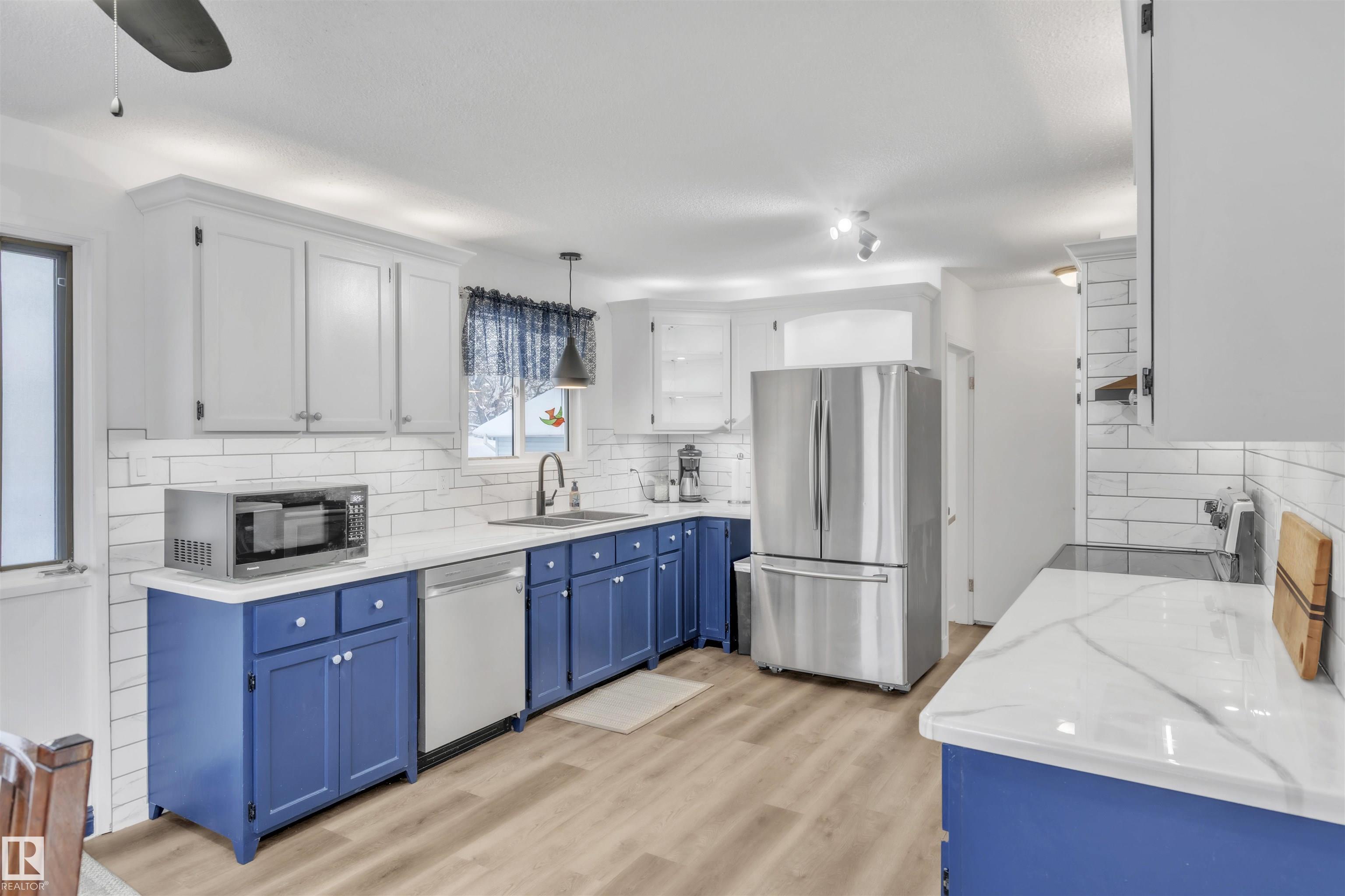 Perfectly located within walking distance to downtown shopping, schools, and parks, this charming 1,134 sq. ft. bungalow offers exceptional convenience and everyday comfort. Set on a large, fully fenced lot with mature landscaping, the property also features a 16? × 24? detached garage?ideal for vehicles, storage, or a workshop. Inside, the main floor offers three comfortable bedrooms, a full bathroom, a spacious living room, and a bright walk-through kitchen that opens to the dining area. The fully finished basement adds valuable living space with an additional bedroom, a generous open family area, a 3-piece bathroom, and a large laundry room. Recent improvements include new shingles, new windows, new appliances, updated flooring, fresh paint throughout, fully renovated bathrooms, and a redesigned, refreshed kitchen?making this home truly move-in ready.