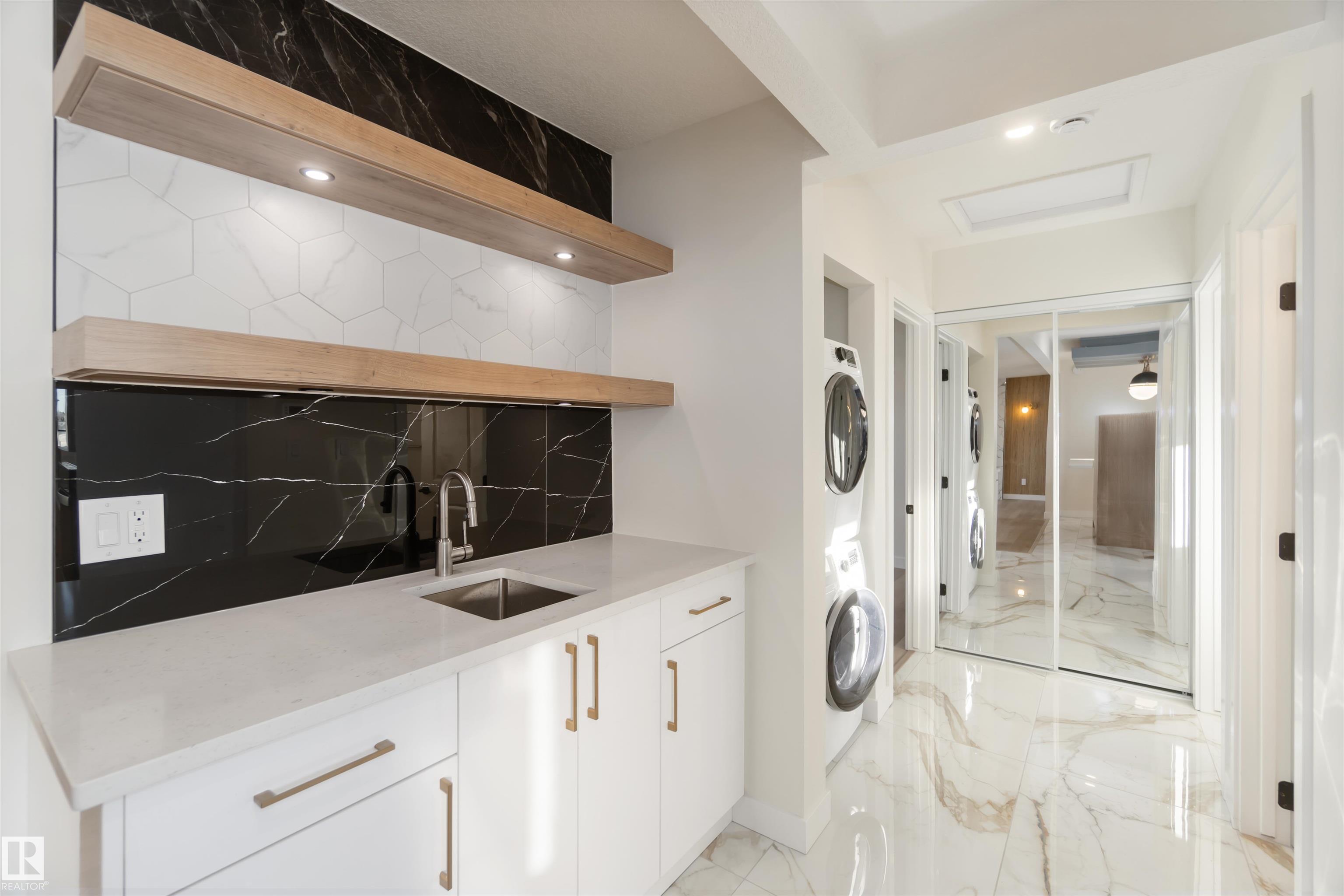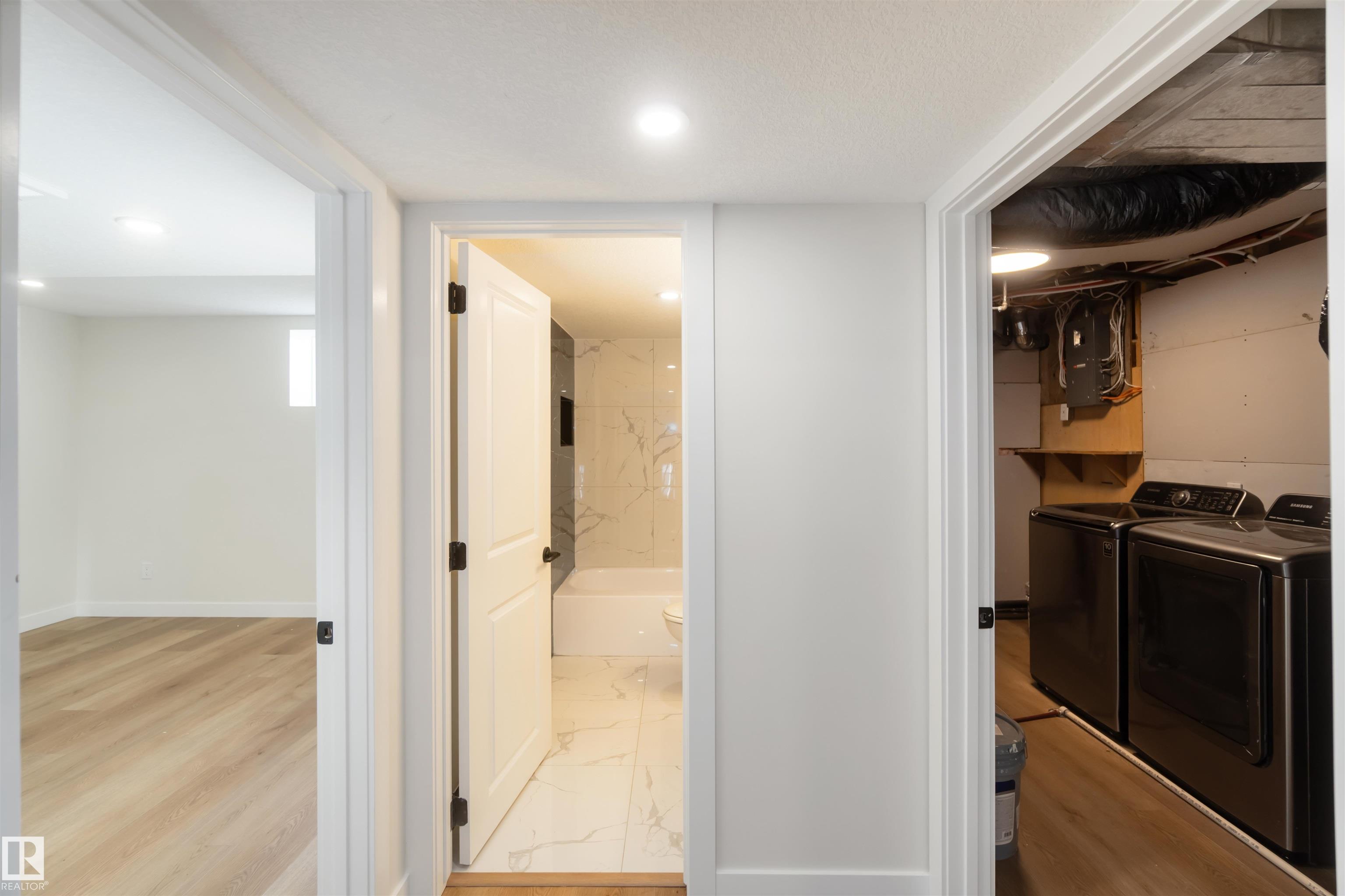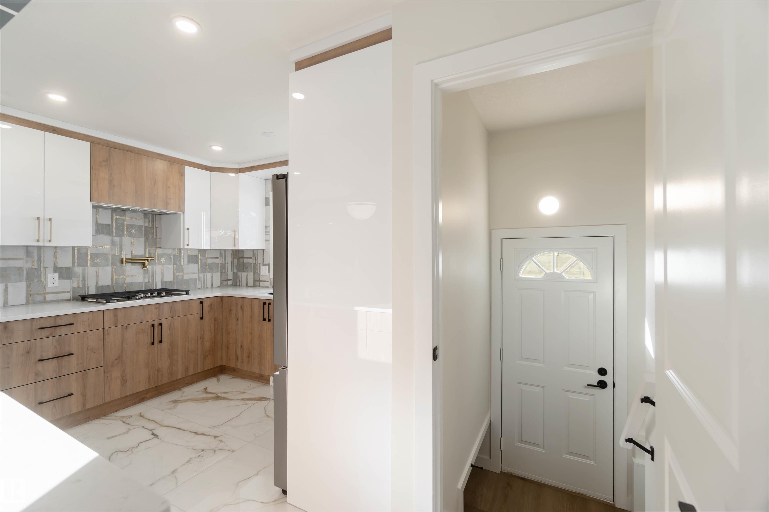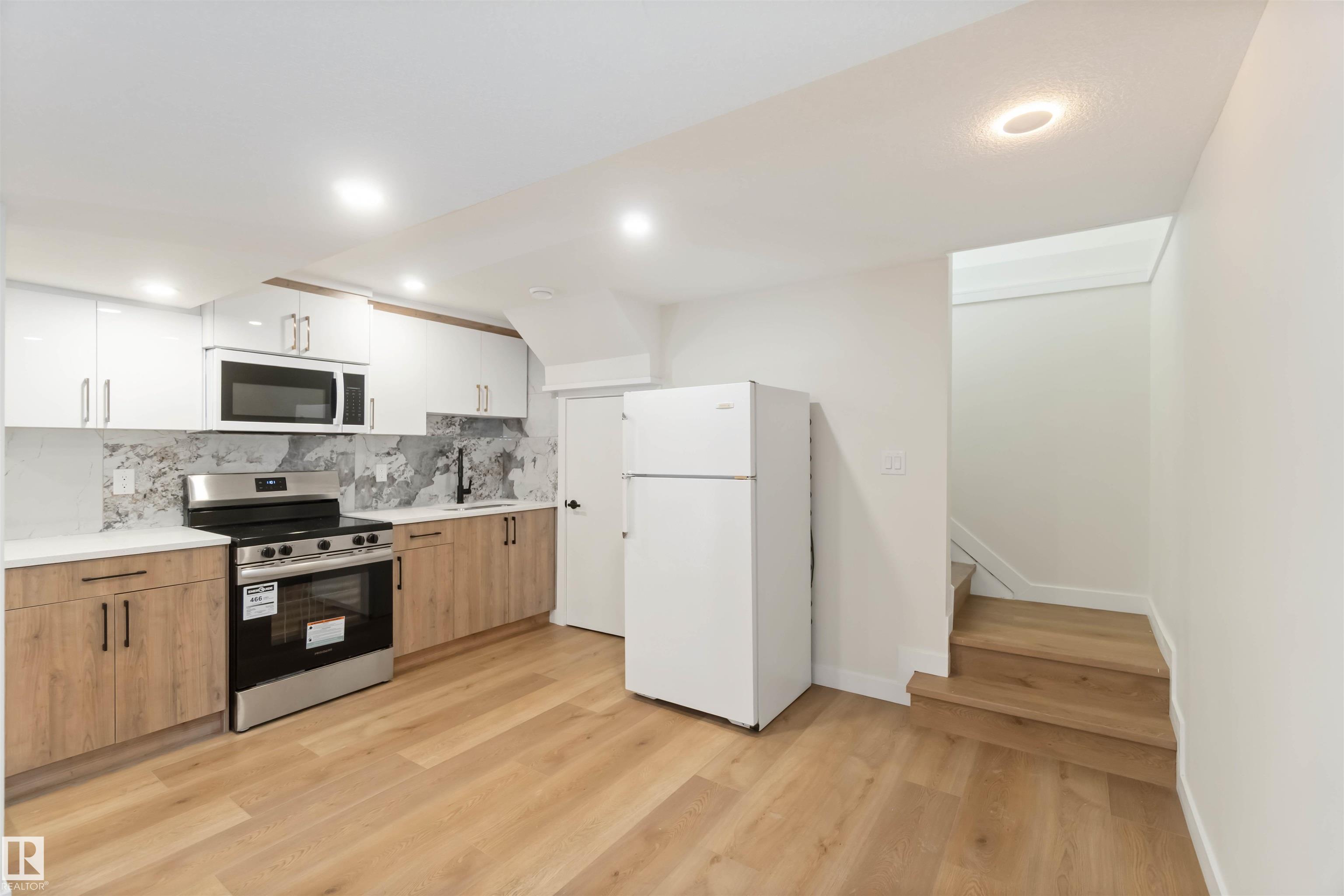 Discover this beautiful 5-bedroom bungalow in Belvedere, perfectly situated on a huge lot and close to Londonderry Mall, Costco, the LRT, and the Anthony Henday. This FULLY RENOVATED, turn key home offers exceptional convenience with NEW ROOF, NEW WINDOWS, NEW FURNACE, NEW ON DEMAND HOT WATER and a separate entrance with basement access. The main floor features an inviting open-concept design with brand NEW APPLIANCES, a kitchen island, cozy fireplace, laundry, wet bar, and three bedrooms. The primary bedroom comes complete with a walk-in closet and 4-piece ensuite. The fully finished basement adds incredible versatility with two additional bedrooms, a SECOND KITCHEN, laundry, and a large living/family room area. Outside, enjoy a FULLY FENCED, landscaped yard with an OVERSIZED, HEATED double detached garage that comfortably accommodates two vehicles with extra storage space. Close to amenities, shopping, schools, and major roadways, this property combines comfort, functionality, and a prime location.