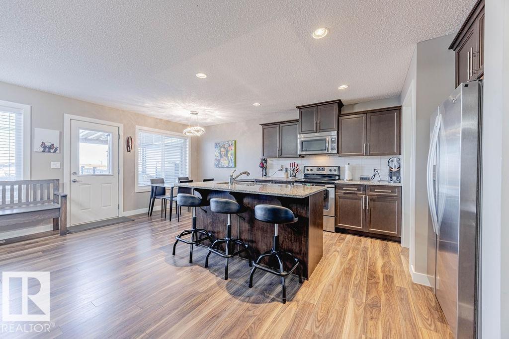 You won?t find another half duplex in Beaumont quite like this one. Immaculately maintained and sitting on a huge west-facing backyard, this property delivers a true outdoor paradise with artificial turf, large entertaining deck, heated pool, and a hot tub?all with no neighbors directly behind. Inside, the bright open-concept main floor offers vinyl plank flooring, Quartz countertops, soft-close cabinetry, stainless steel appliances, large walk-through pantry, and a spacious island overlooking the cozy living room with its gas fireplace. Upstairs, the primary bedroom offers plenty of space with a walk-in closet and 4-piece ensuite, alongside additional bedrooms, bathroom and spacious laundry room. AC for your comfort and the oversized heated double attached garage is perfect for Alberta winters. With ponds, green space, and the Beaumont Rec Centre just steps away, you?re surrounded by everything that makes Beaumont living feel so welcoming and complete.