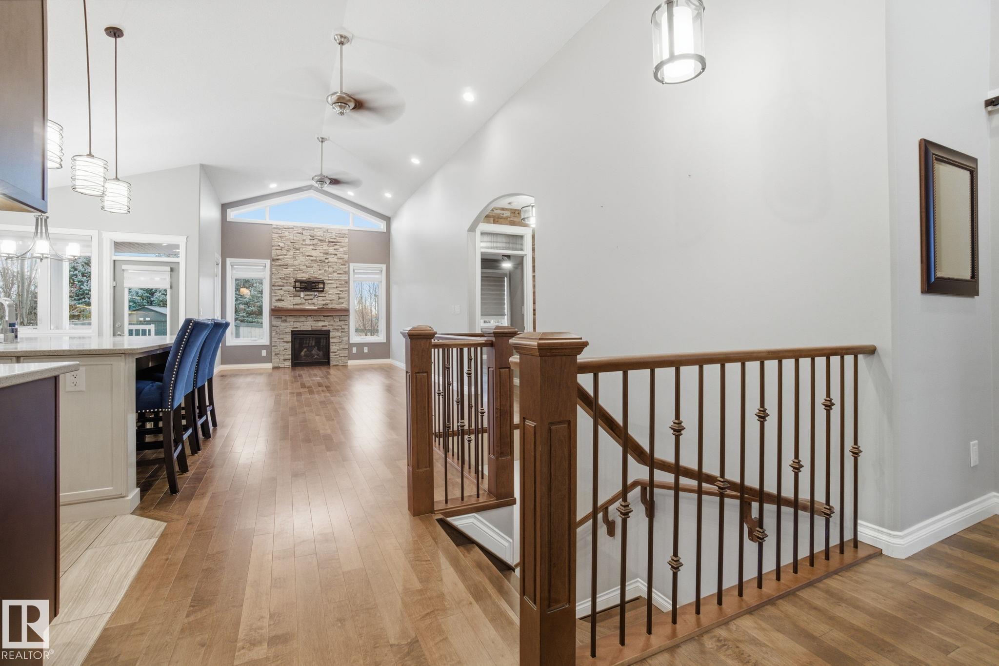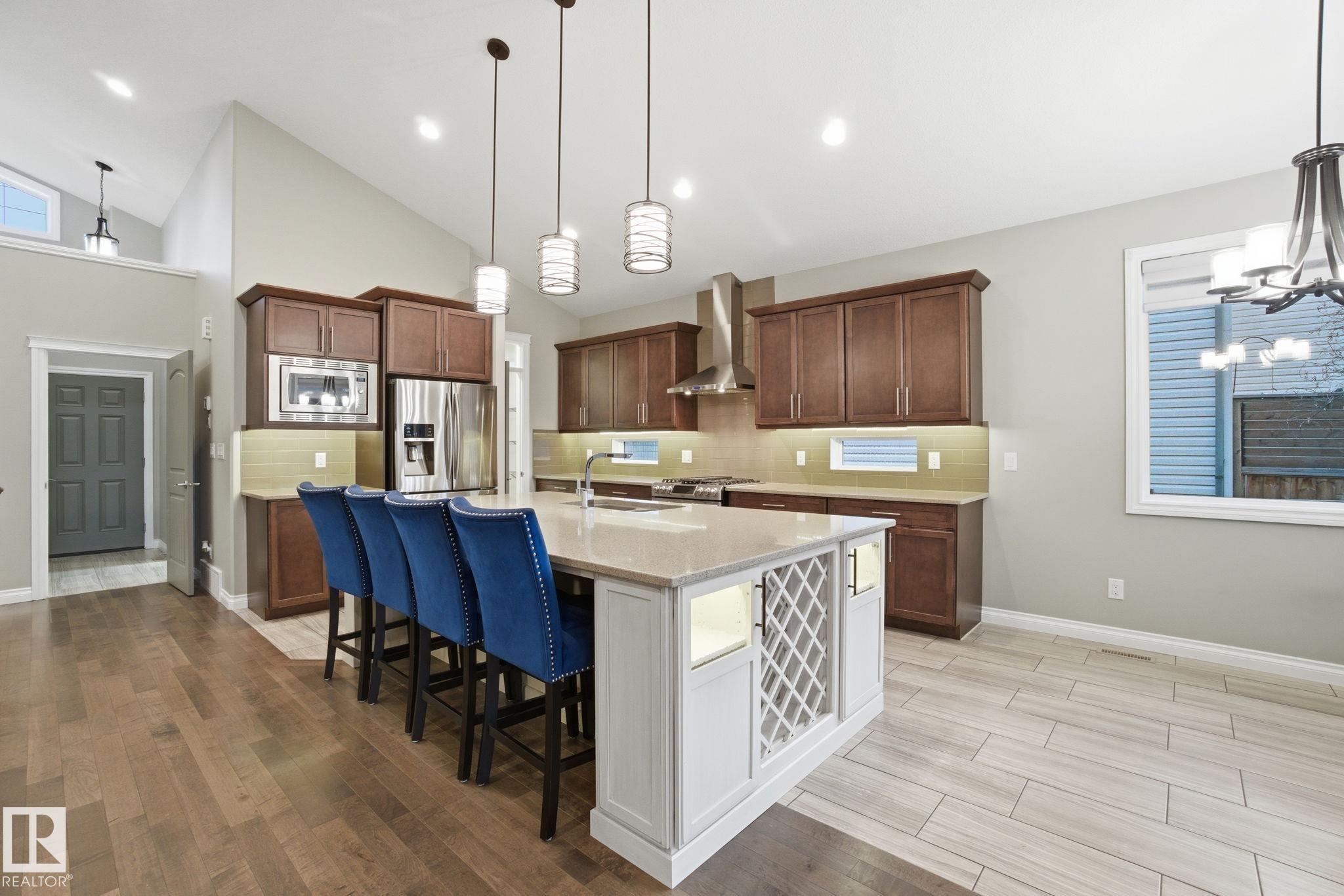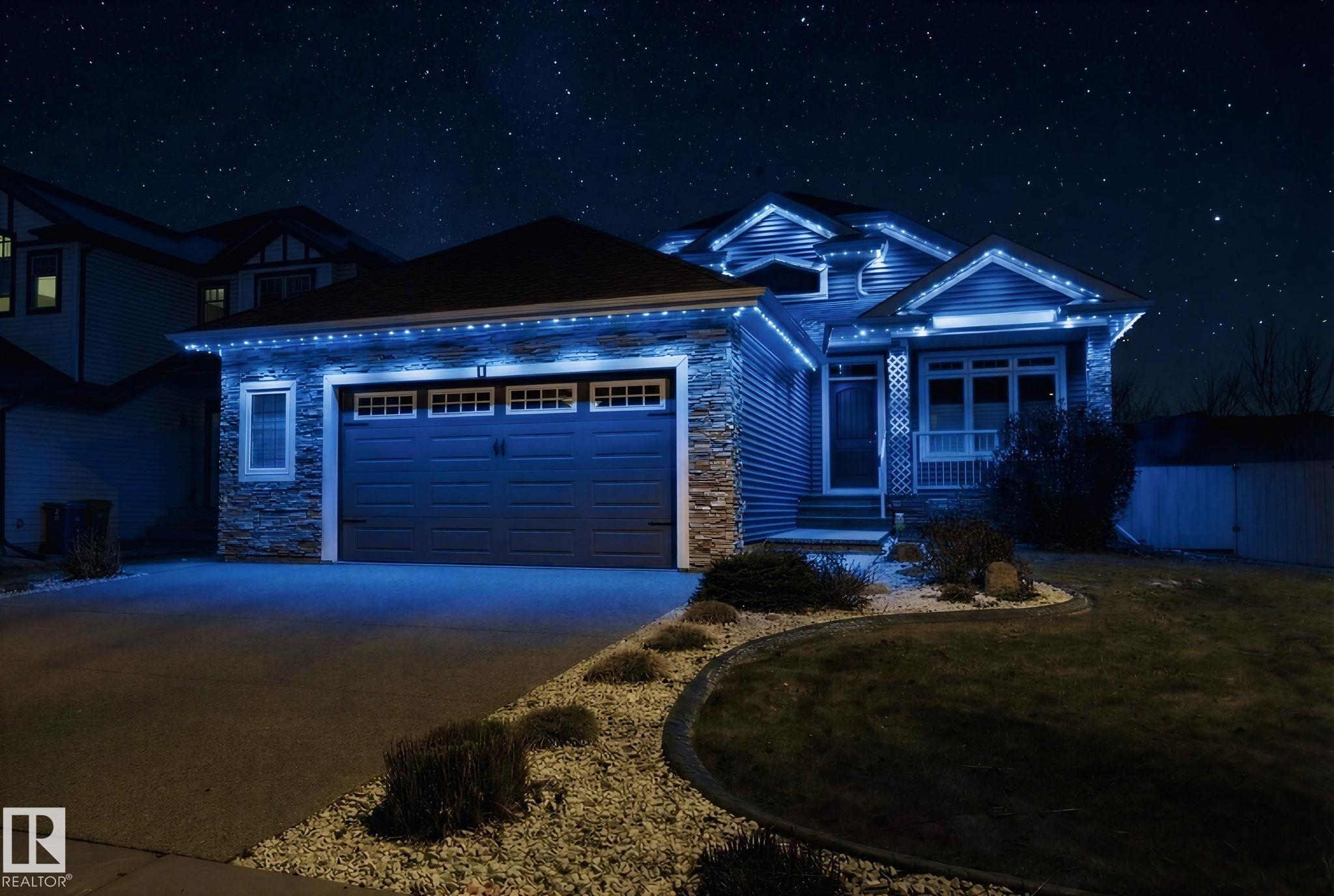 Welcome home to this rare executive-style bungalow in Spruce Grove?meticulously maintained, fully loaded, and stunning inside and out. Beautiful corner-lot landscaping and permanent exterior lighting create incredible curb appeal from the moment you arrive. Inside, you?ll find an open-concept main floor with hardwood floors, a chef?s kitchen with stainless steel appliances and a gas stove, a cozy living room with a gas fireplace and vaulted ceilings, plus a front den. A walkthrough pantry leads to the laundry/mud room and the oversized heated double attached garage with a man door to the backyard. The spacious primary suite offers a 5-piece ensuite and walk-in closet. The professionally finished basement adds three large bedrooms, a full bath, a family room with a wet bar, and in-floor heating for year-round comfort. With a private backyard, permanent lighting, and a prime location, this home is truly hard to beat!