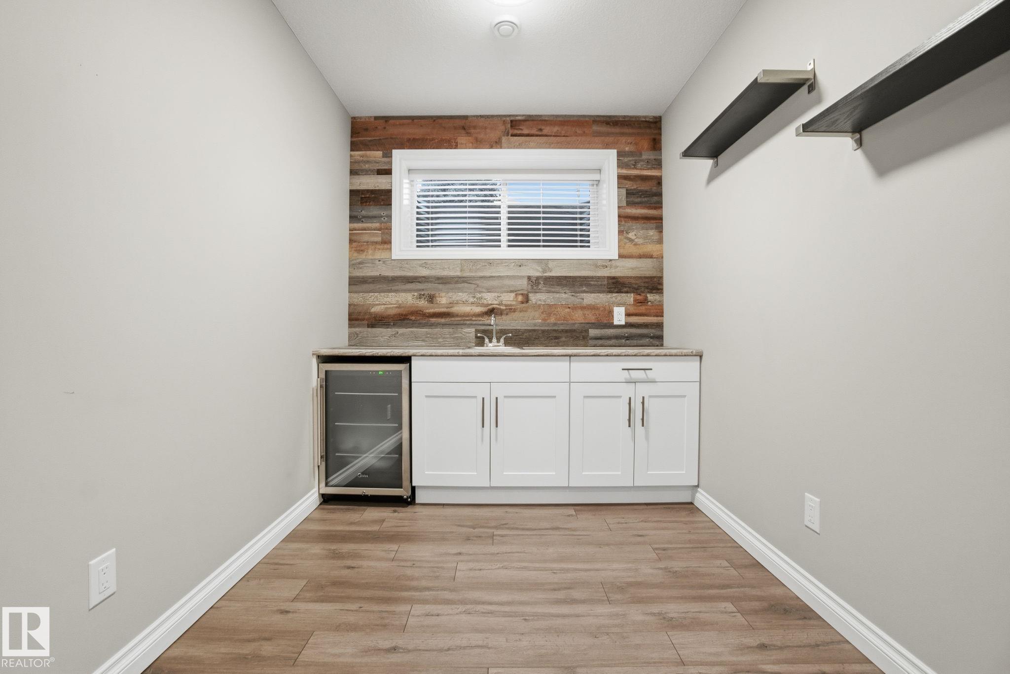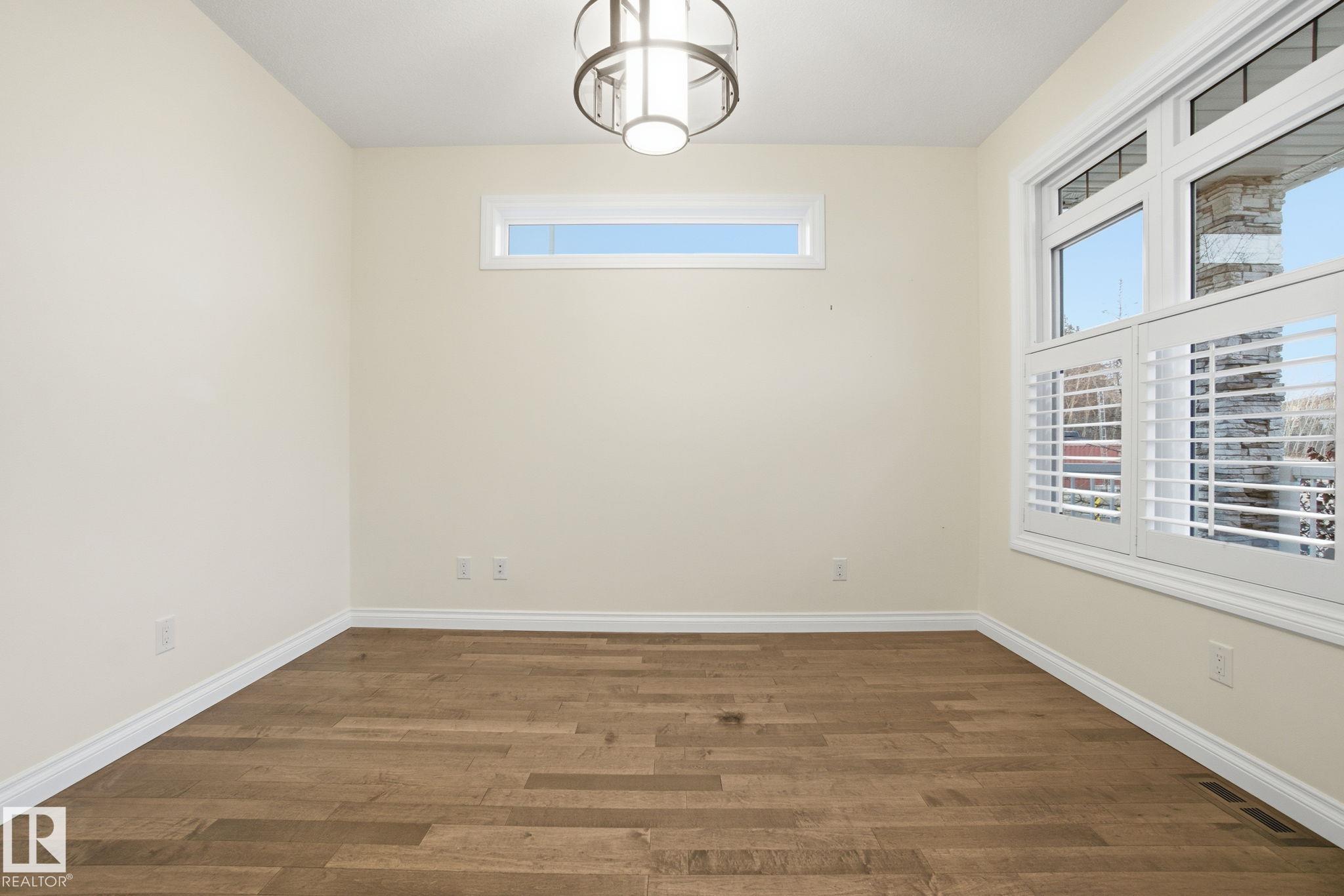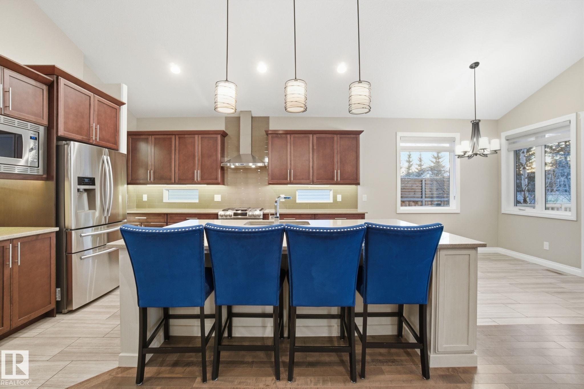 Welcome home to this rare executive-style bungalow in Spruce Grove?meticulously maintained, fully loaded, and stunning inside and out. Beautiful corner-lot landscaping and permanent exterior lighting create incredible curb appeal from the moment you arrive. Inside, you?ll find an open-concept main floor with hardwood floors, a chef?s kitchen with stainless steel appliances and a gas stove, a cozy living room with a gas fireplace and vaulted ceilings, plus a front den. A walkthrough pantry leads to the laundry/mud room and the oversized heated double attached garage with a man door to the backyard. The spacious primary suite offers a 5-piece ensuite and walk-in closet. The professionally finished basement adds three large bedrooms, a full bath, a family room with a wet bar, and in-floor heating for year-round comfort. With a private backyard, permanent lighting, and a prime location, this home is truly hard to beat!
