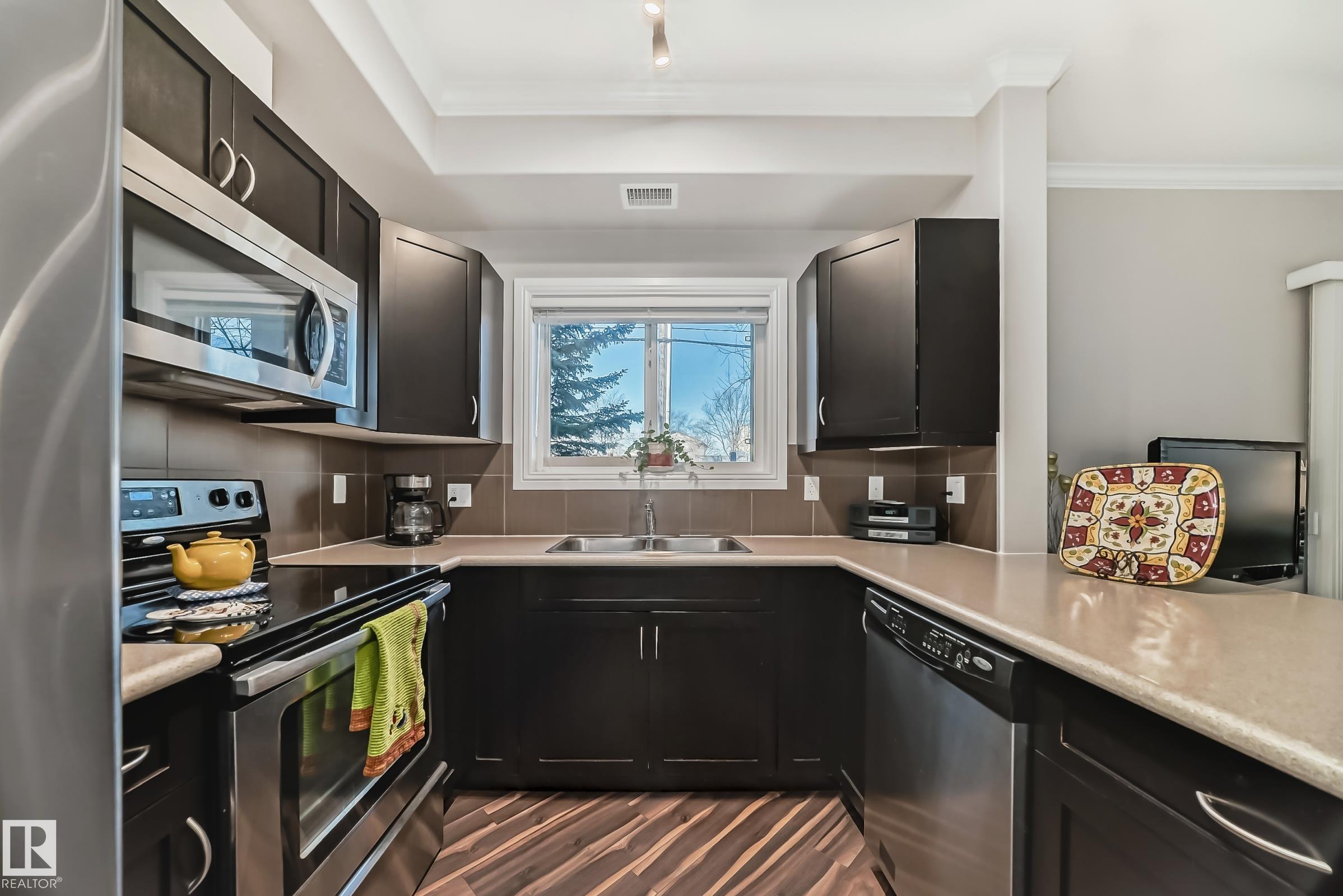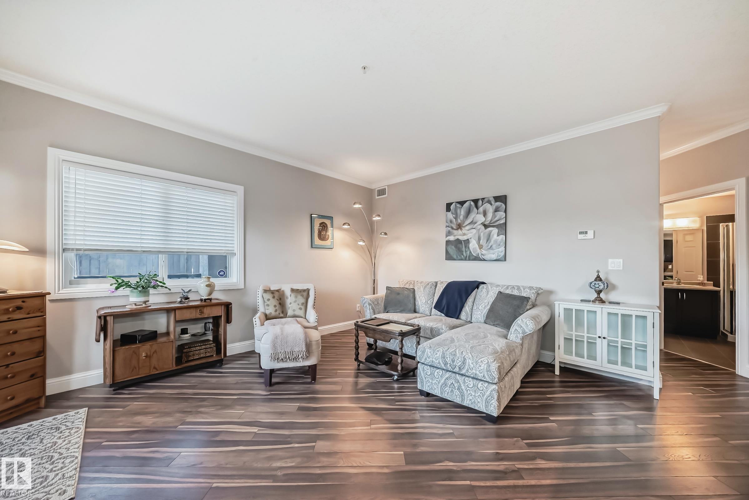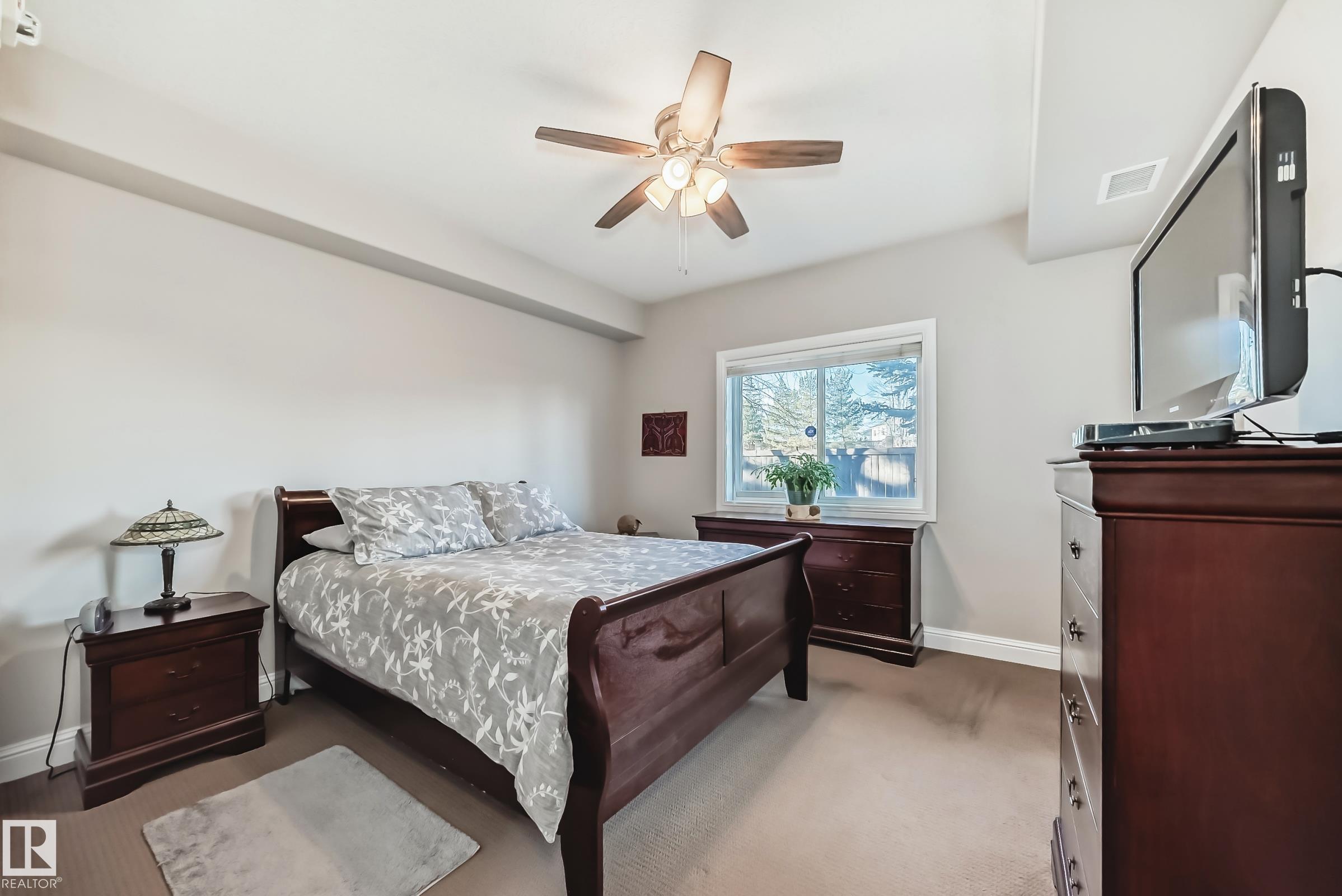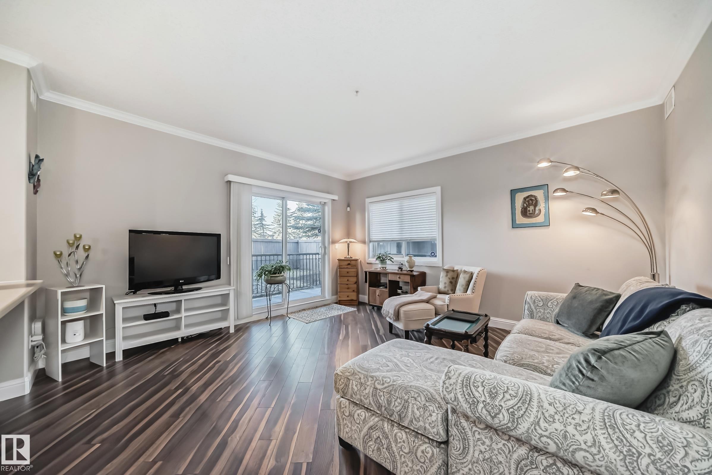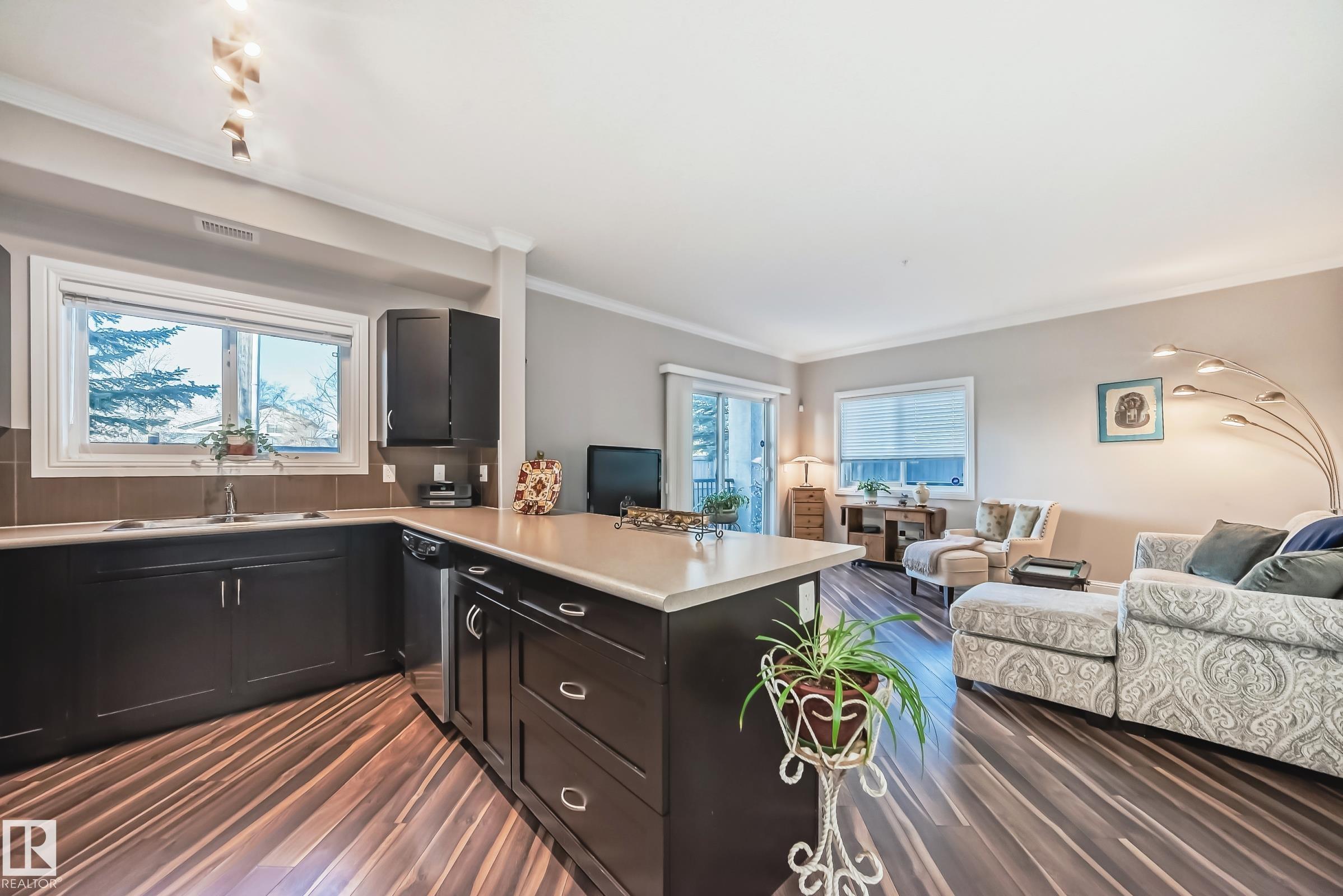 Condo living at its finest ! This beautiful, well-maintained corner unit is located in the heart of Baranow featuring , air conditioning, over 1000 sq. ft. with 2 bedrooms and 2 bathrooms. Open concept living with plenty of natural sunlight. Spacious living area with laminate flooring, large windows and a west facing patio. Kitchen is designed for convenience, offering abundant cabinetry and a fantastic island-perfect for entertaining. The primary bedroom features a spacious walk in closet and a private 4 piece ensuite. A generous second bedroom sits adjacent to the shared 3 piece guest bathroom. This unit also includes in-suite laundry with additional storage. Large wrap around private patio is complete with a gas line- for those special barbecue evenings with family and friends. This unit includes titled parking, underground as well a storage cage. Ideally located close to Anthony Henday, dining, shopping, schools and much more. This home truly offers comfort, convenience and exceptional value !!